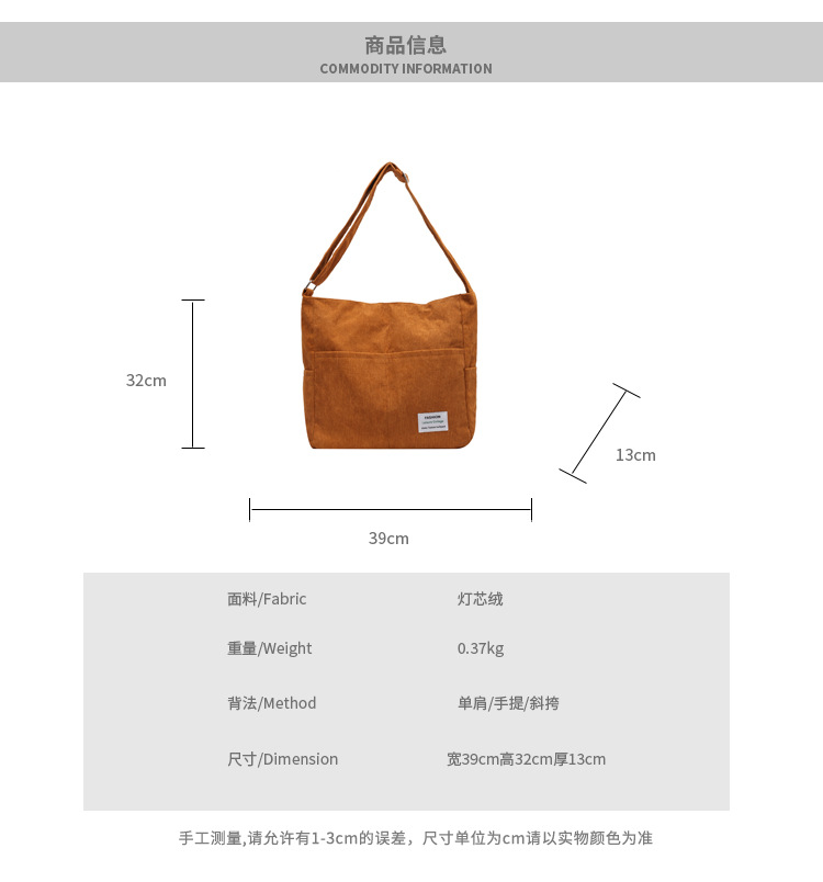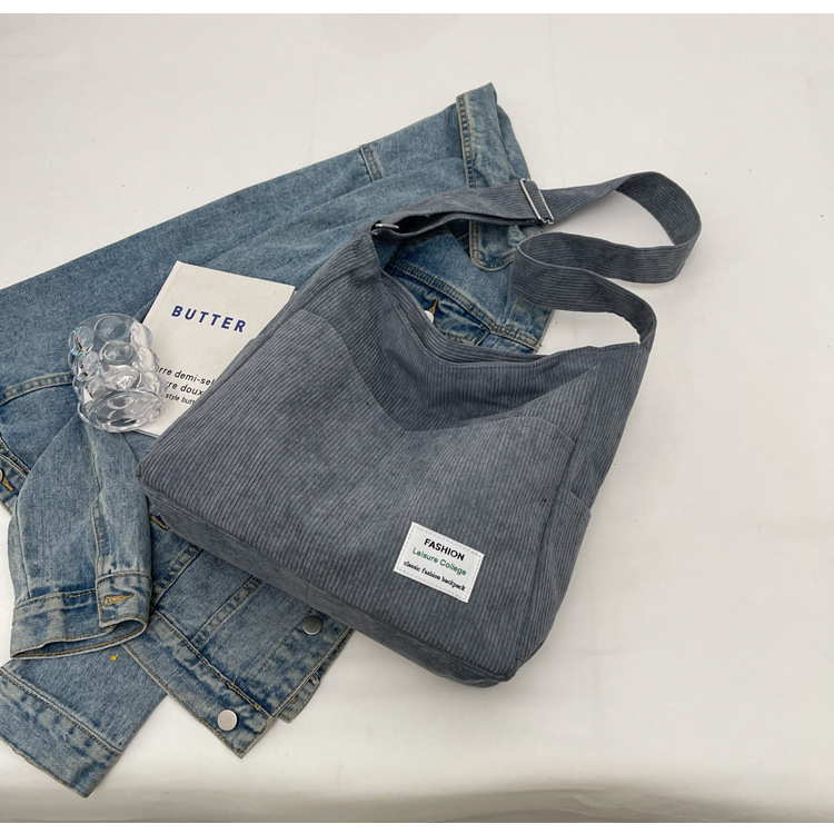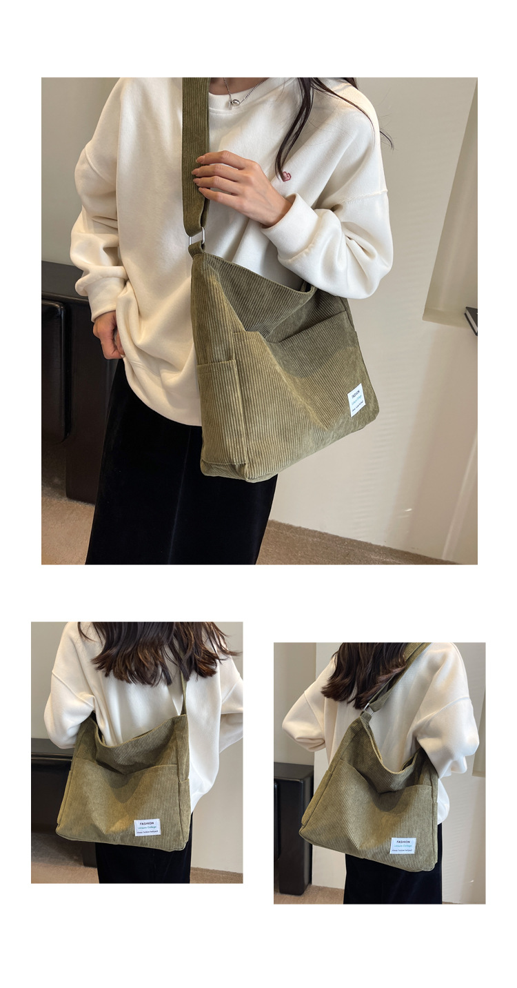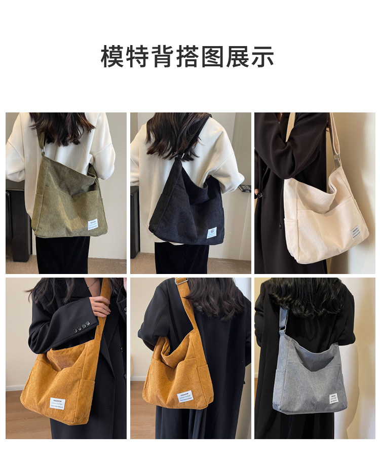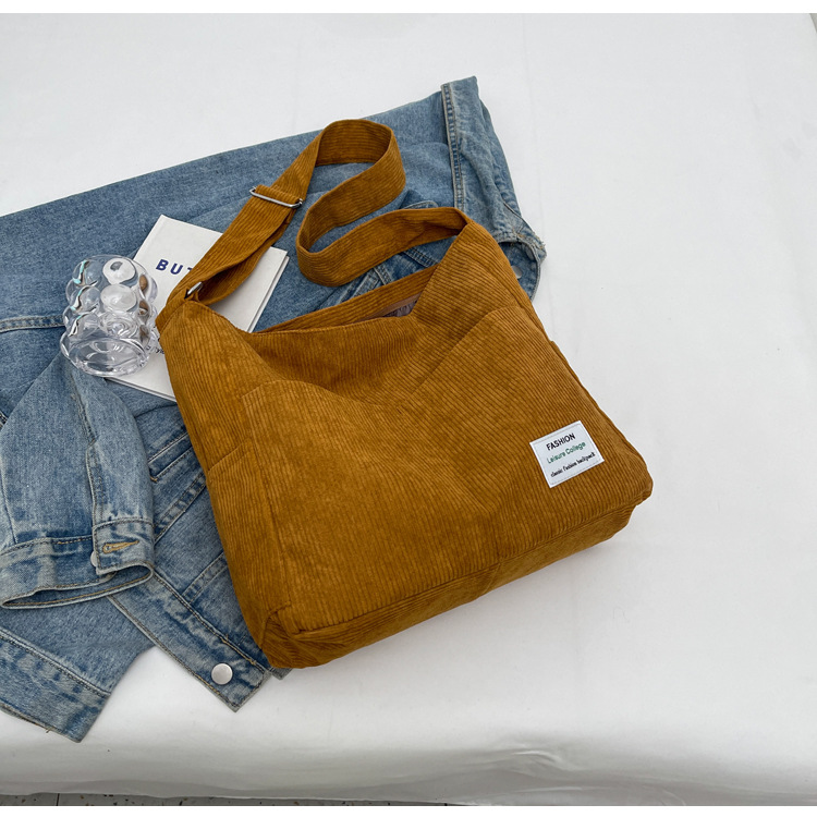 灯芯绒女包2024秋冬新款 大容量包包 手提包韩国简约单肩斜挎包 上课通勤托特包