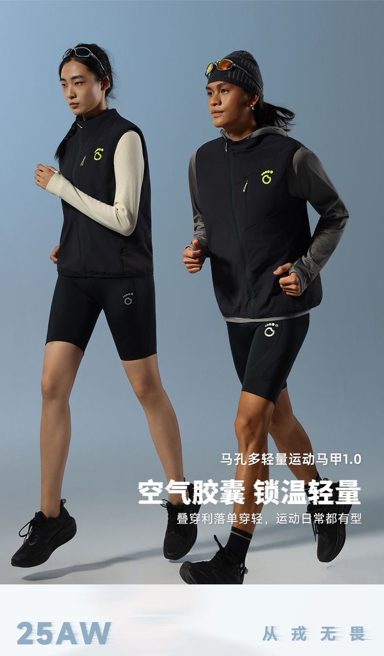 原创单品丨男女同款轻量运动马甲 空气胶囊锁温 吸湿速干 防风保暖立领 前胸储物兜 运动日常