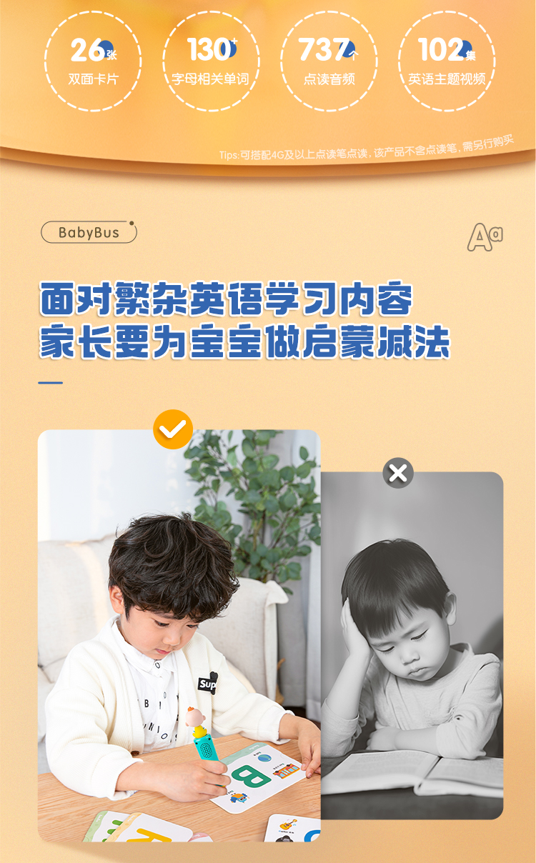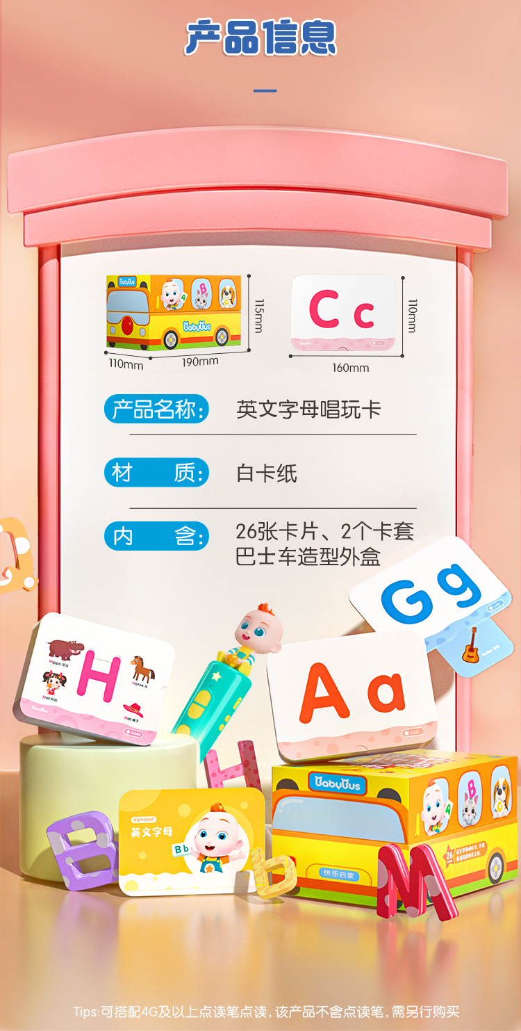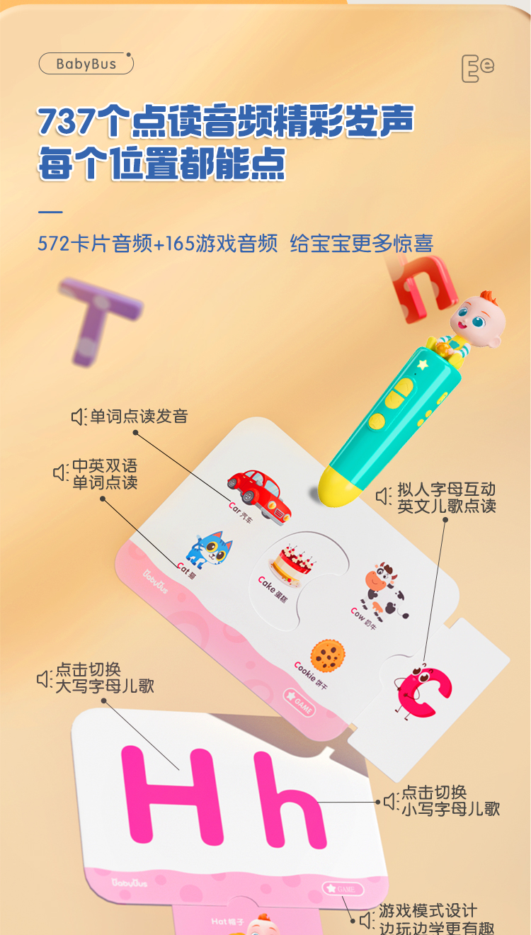 【点读版】宝宝巴士英语启蒙2岁+ 英文字母唱玩卡(不含笔)