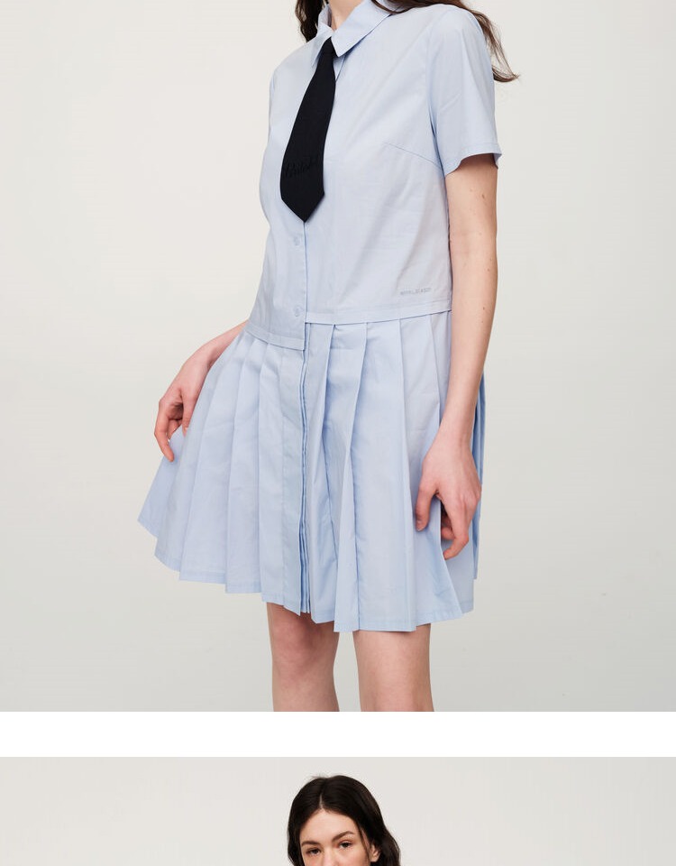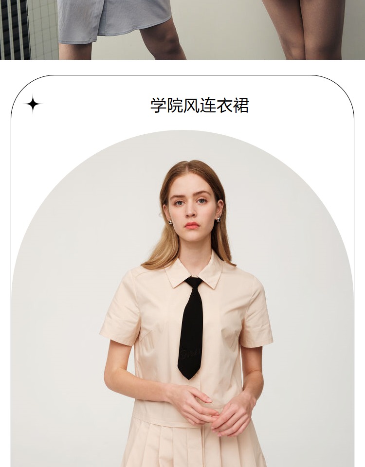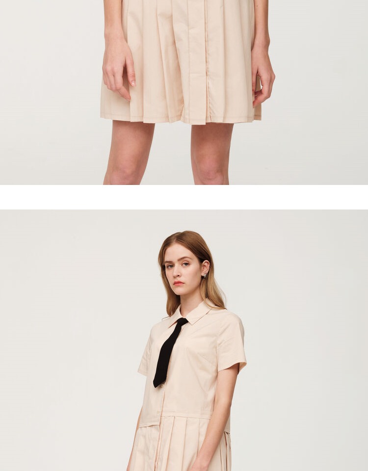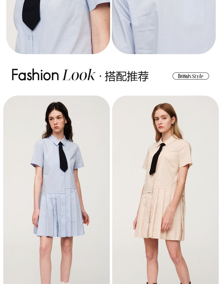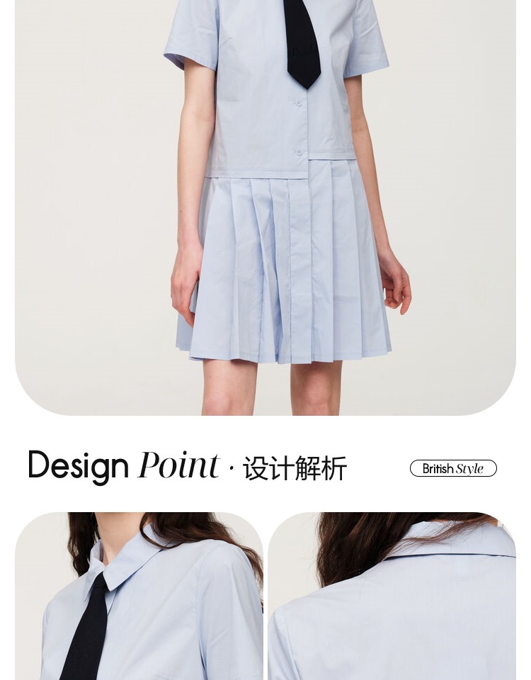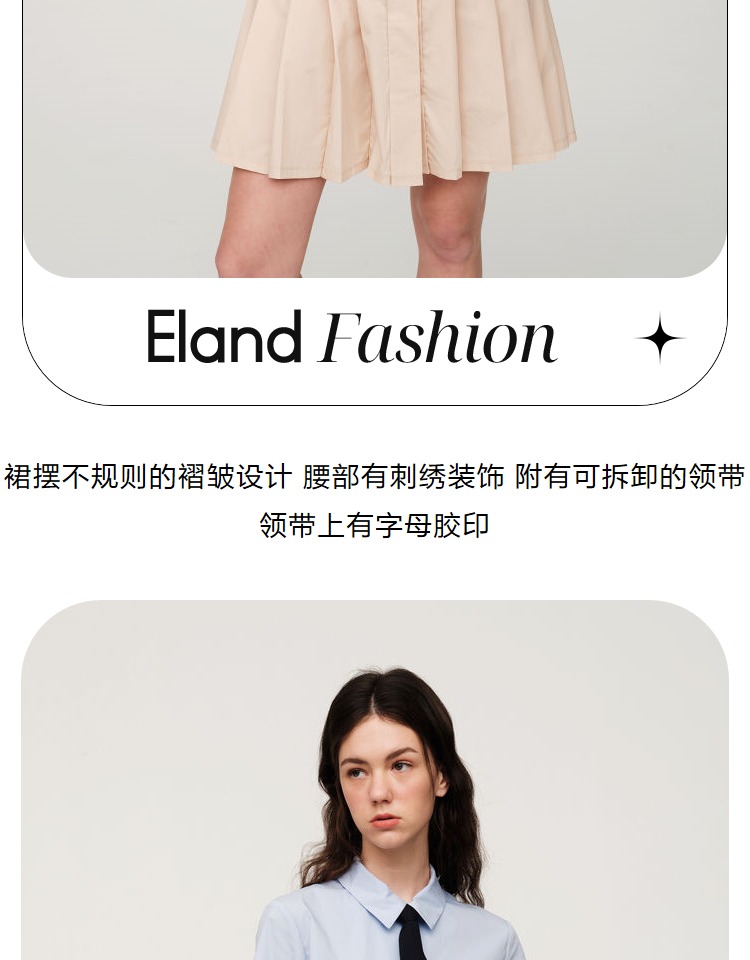 ELAND衣恋褶皱设计衬衣型连衣裙EEOWC25H1C