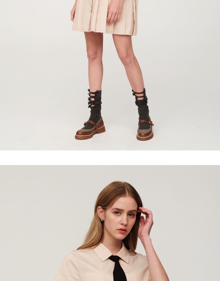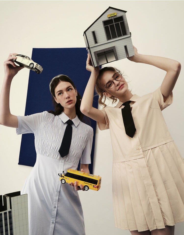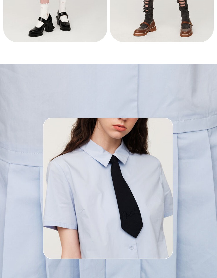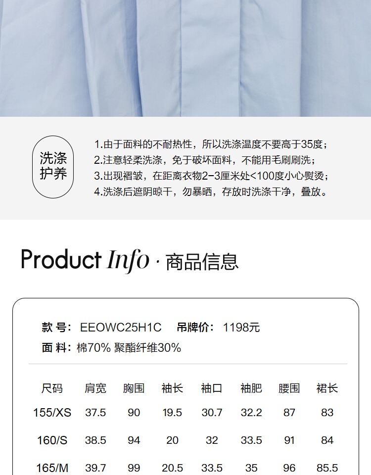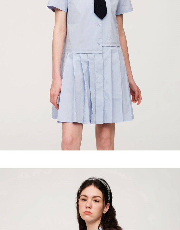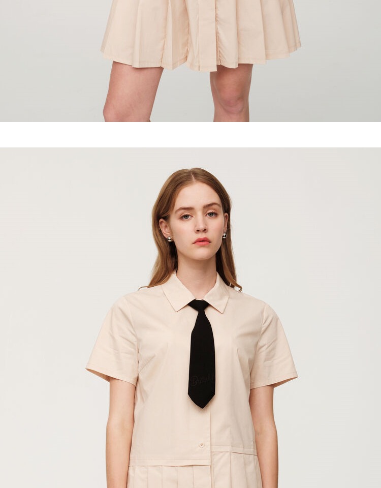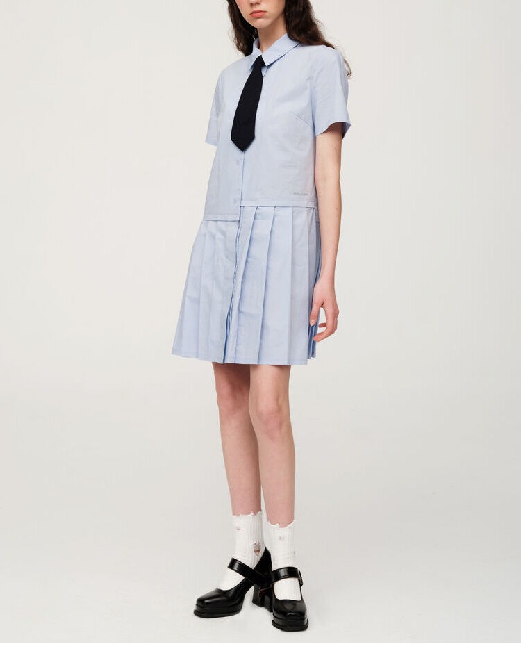 ELAND衣恋褶皱设计衬衣型连衣裙EEOWC25H1C