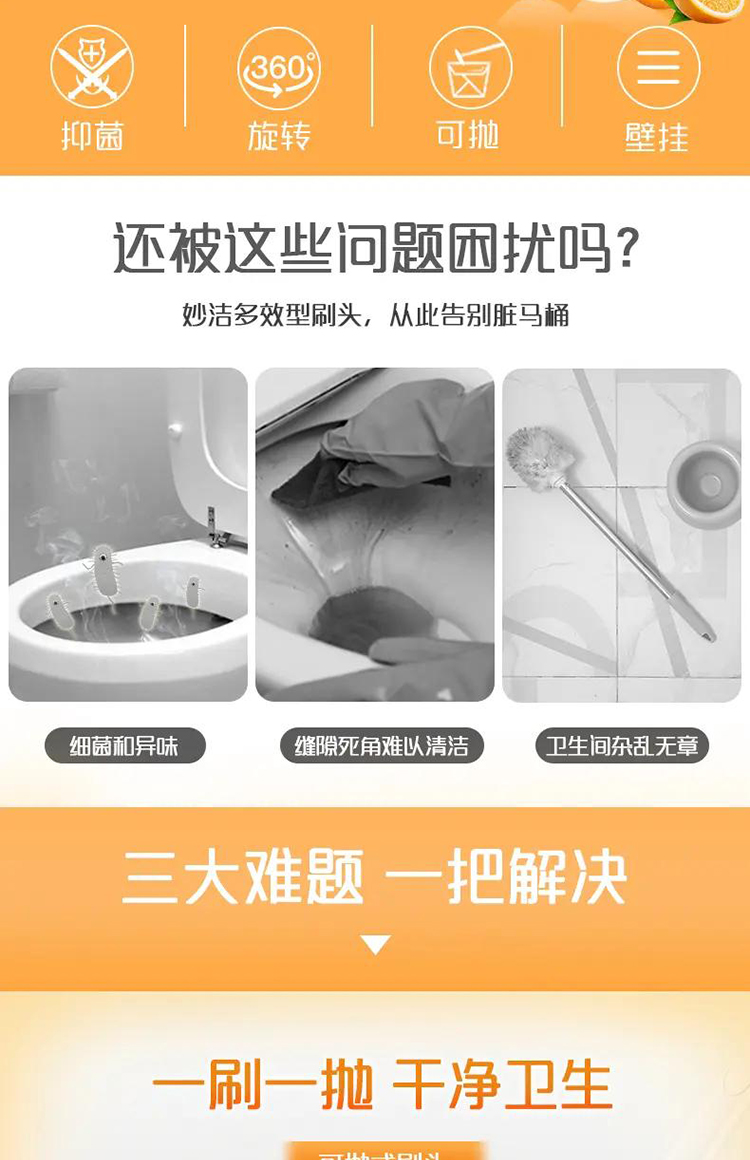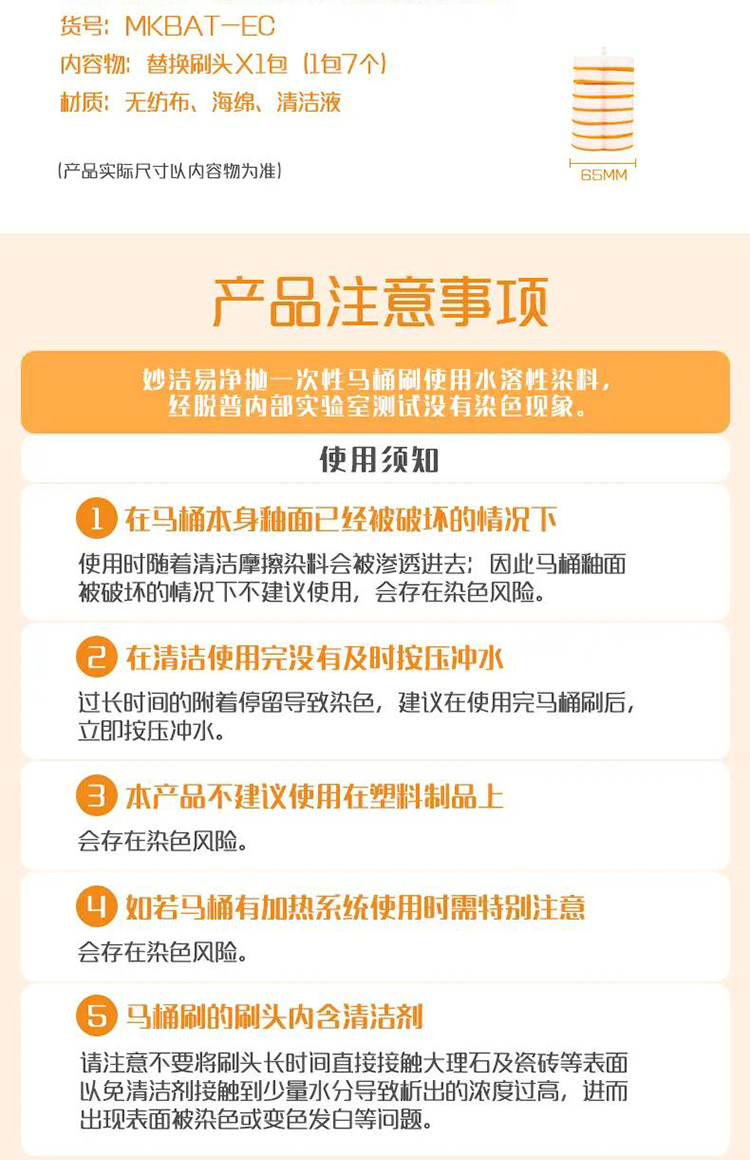 【自营】 妙洁 一次性马桶刷 橘油配方 快速瓦解污渍 刷杆 7个替换刷头 多规格