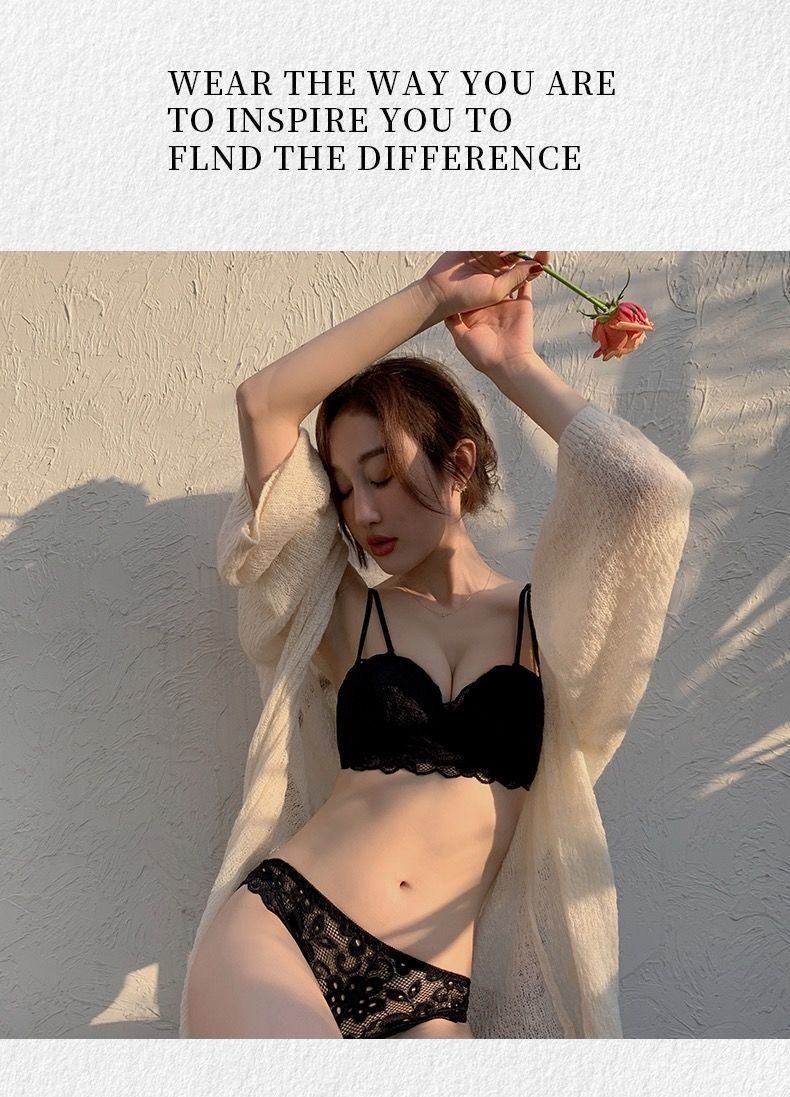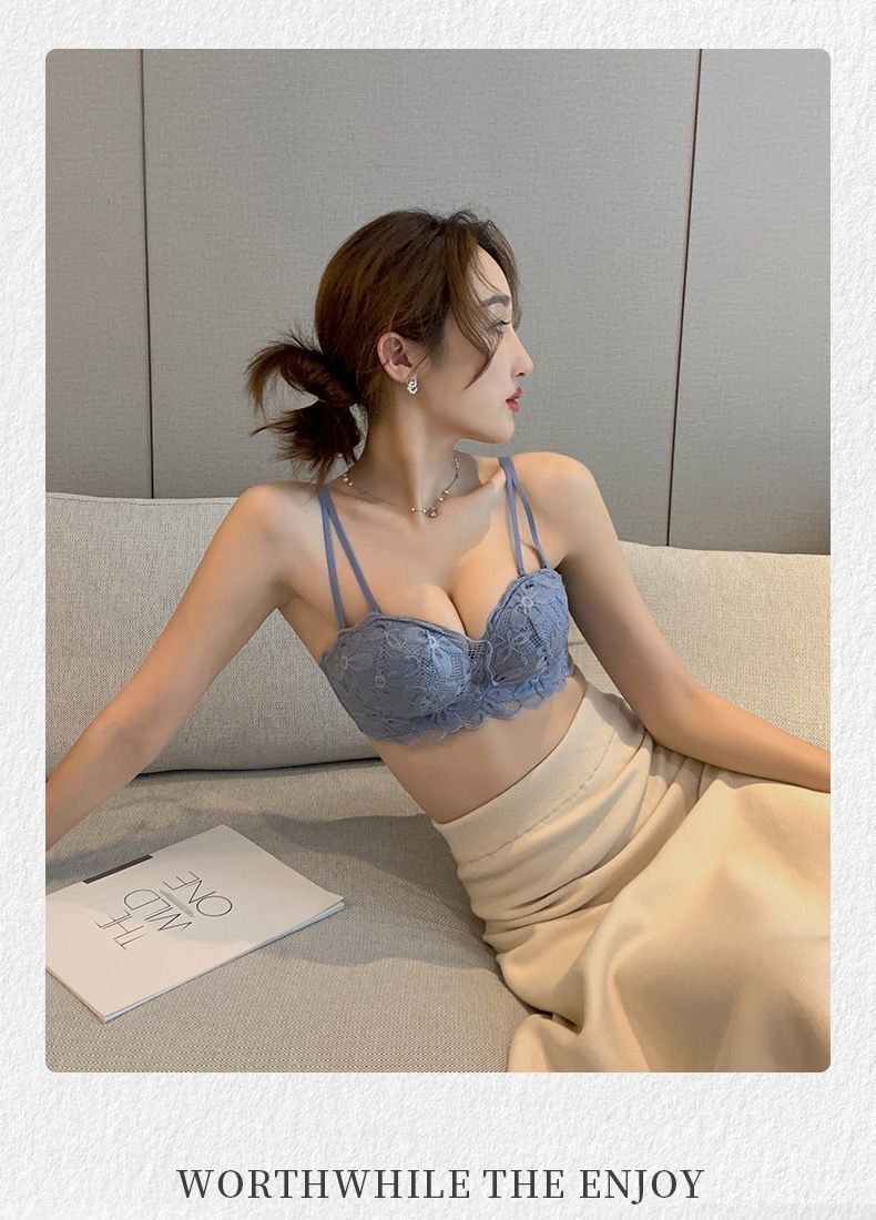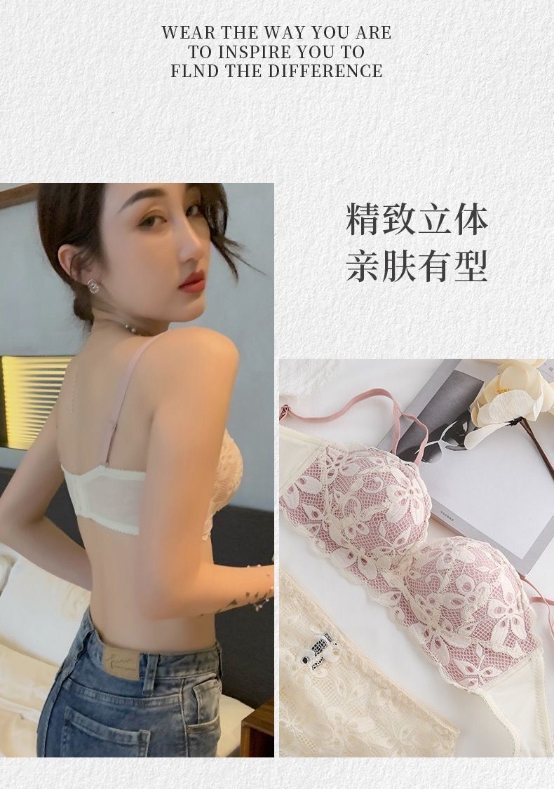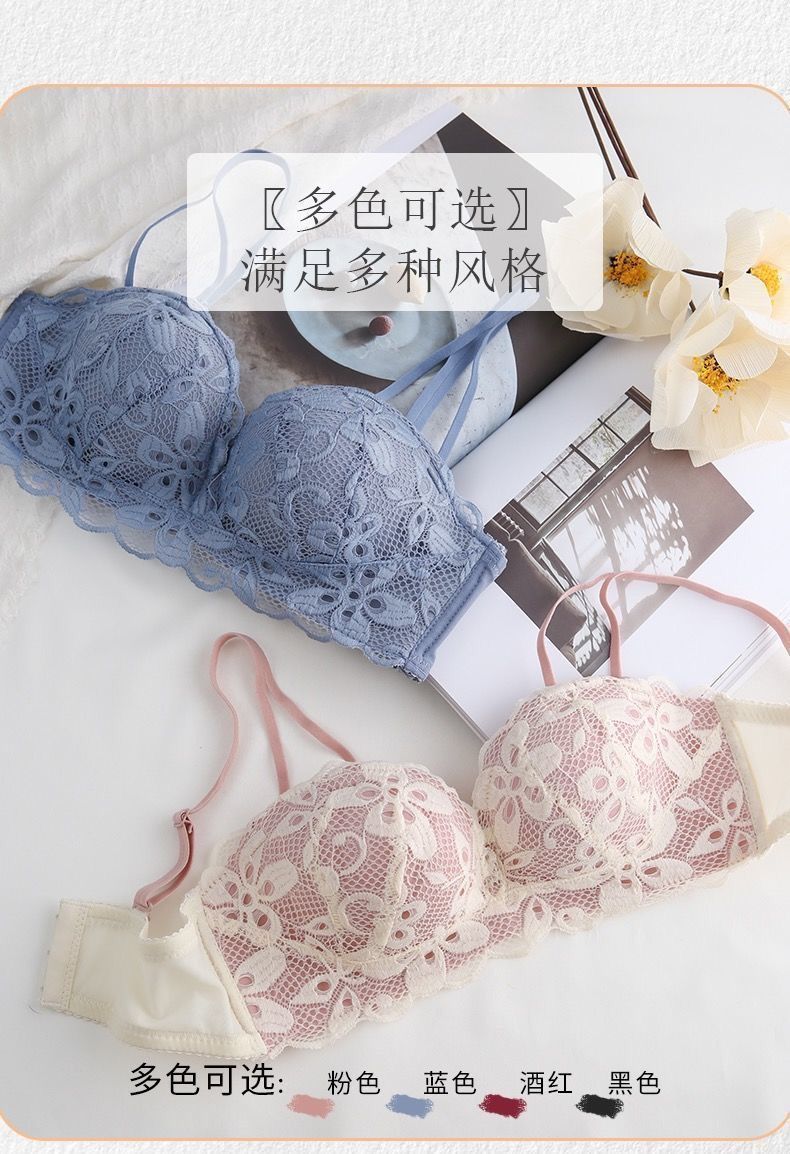 秋冬内衣女小胸加厚聚拢性感蕾丝无钢圈学生防下垂调整文胸罩套装