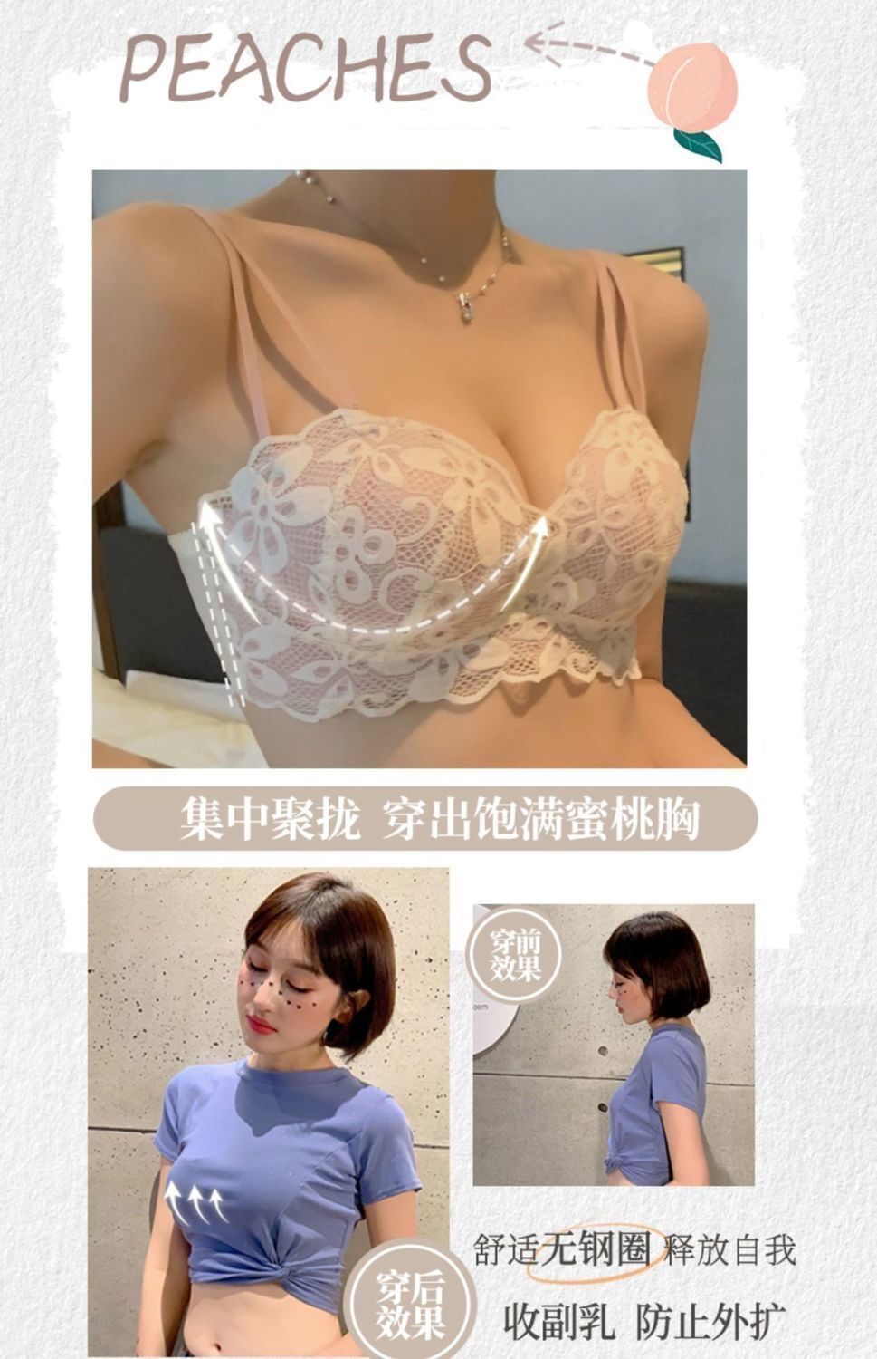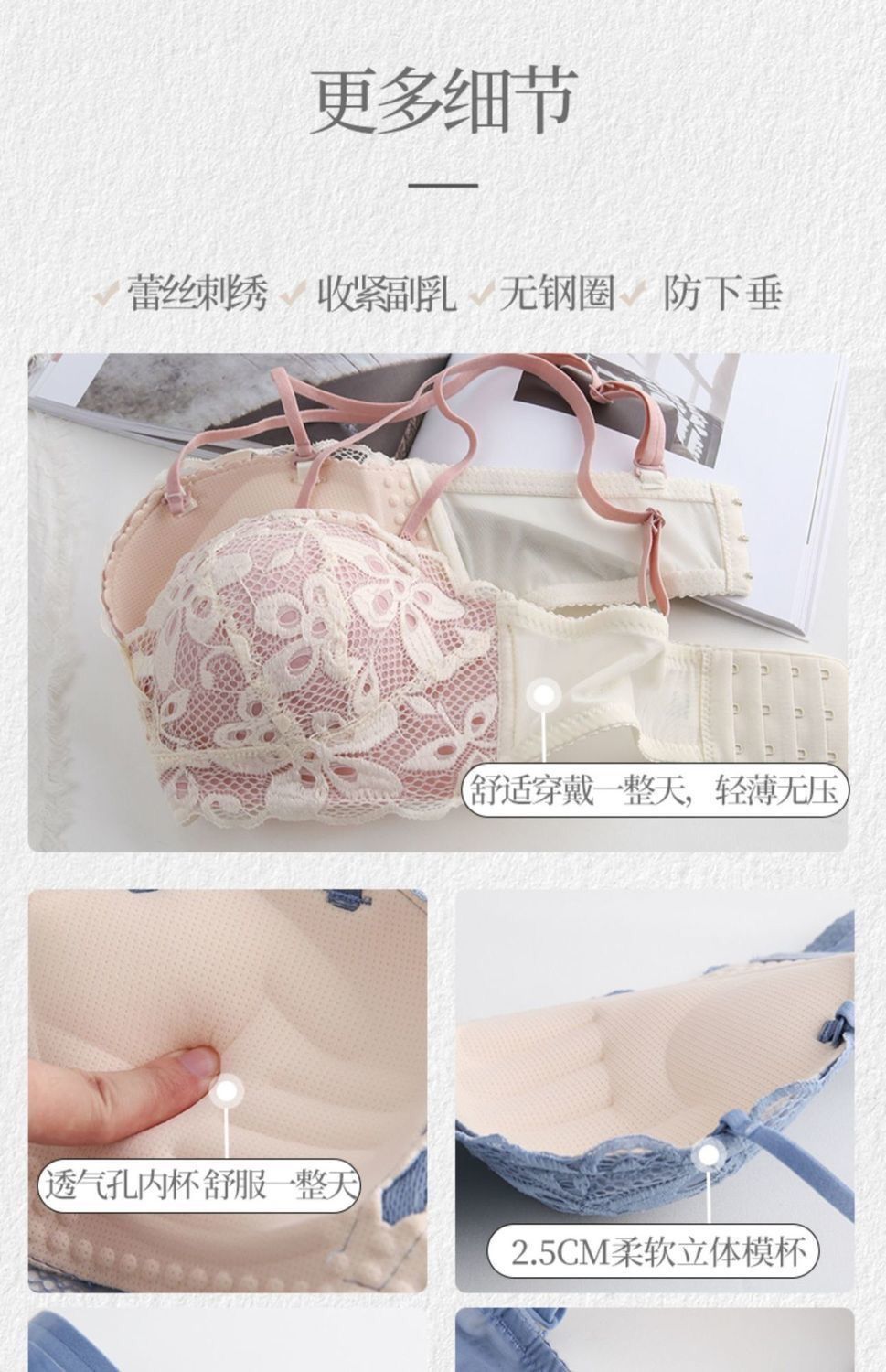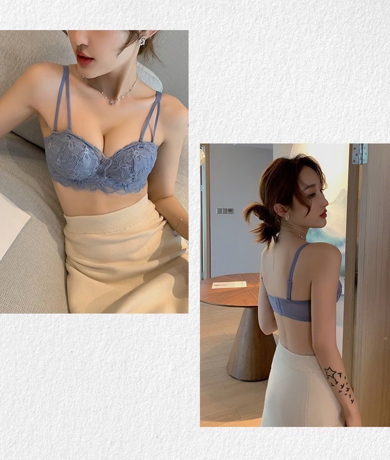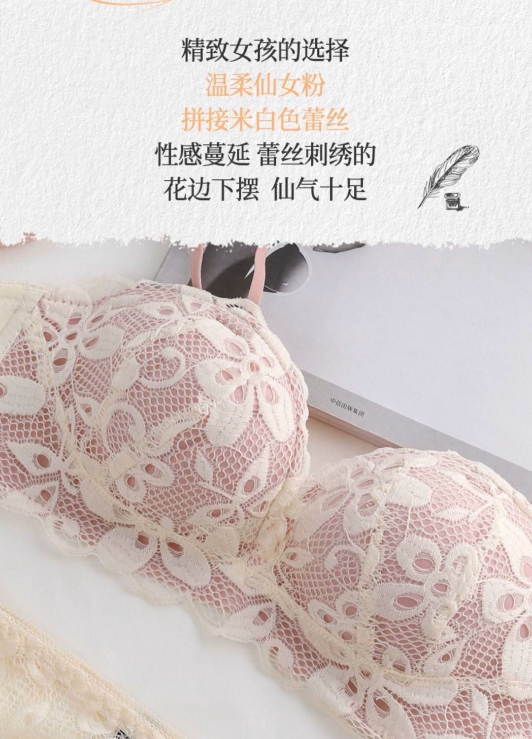 秋冬内衣女小胸加厚聚拢性感蕾丝无钢圈学生防下垂调整文胸罩套装
