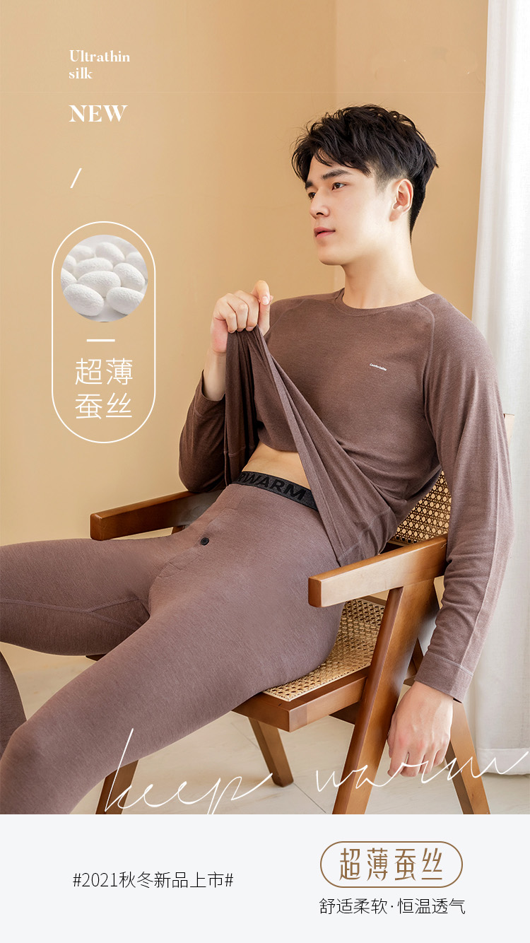 男士圆领蚕丝保暖内衣套装【FL25621】