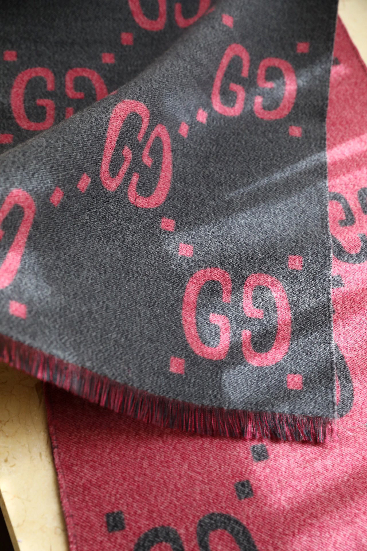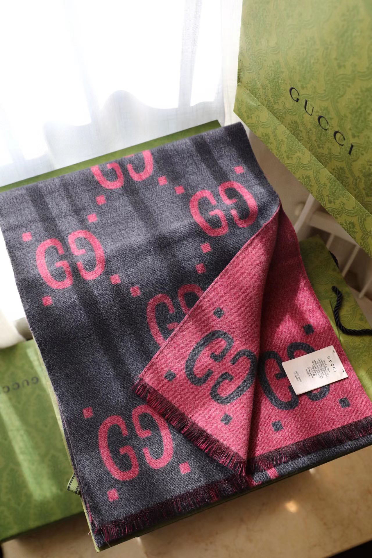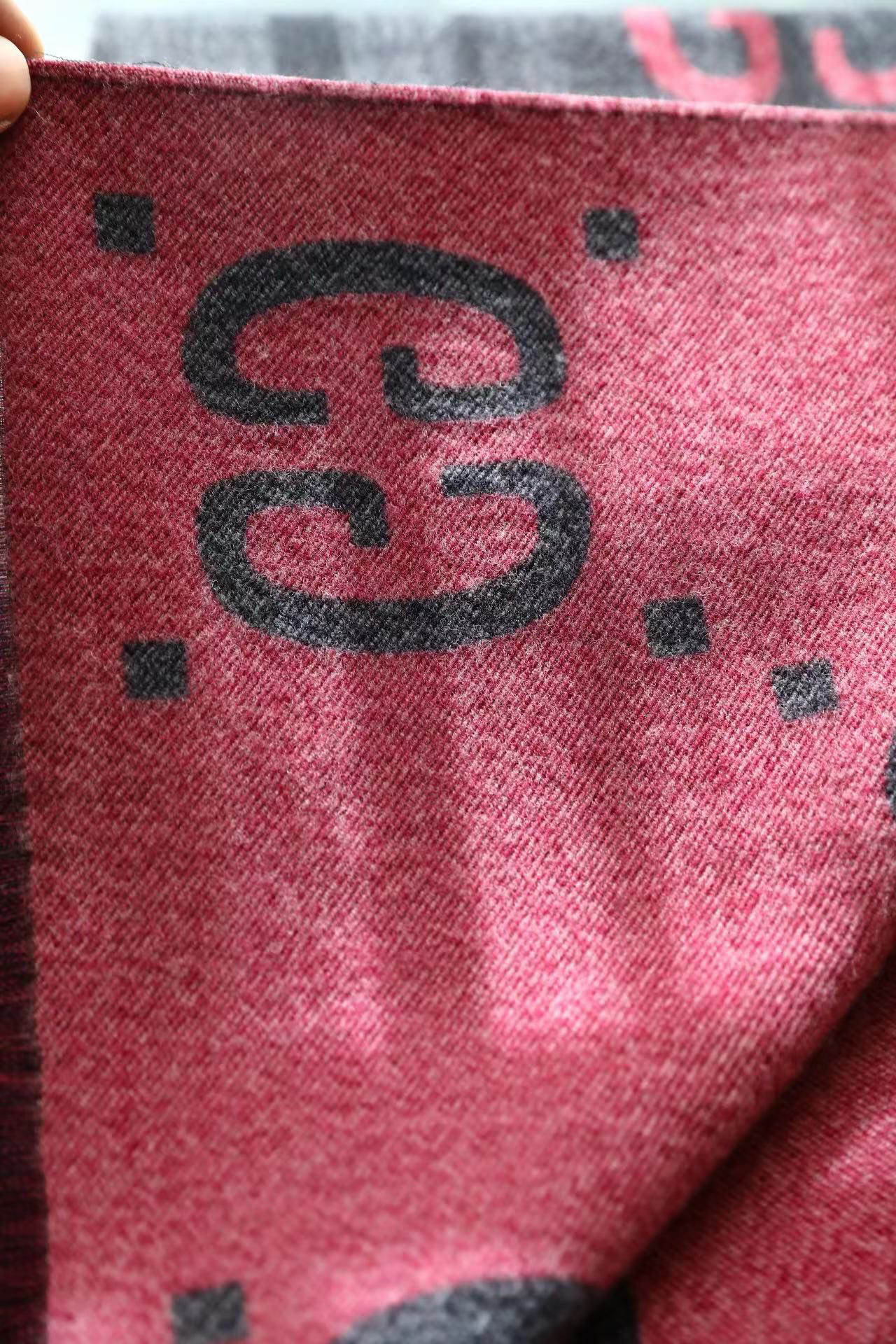 Gucci新款灰粉色围巾