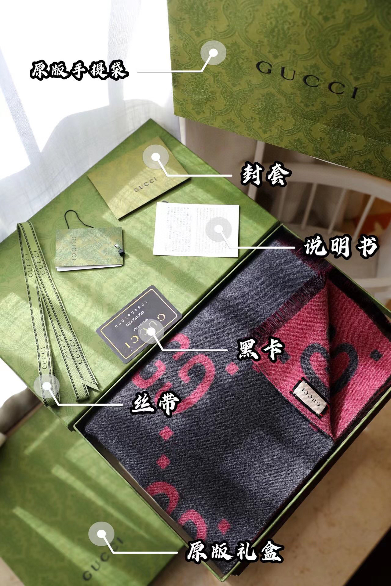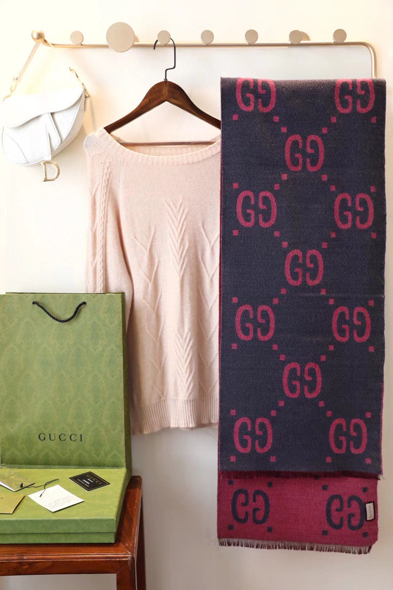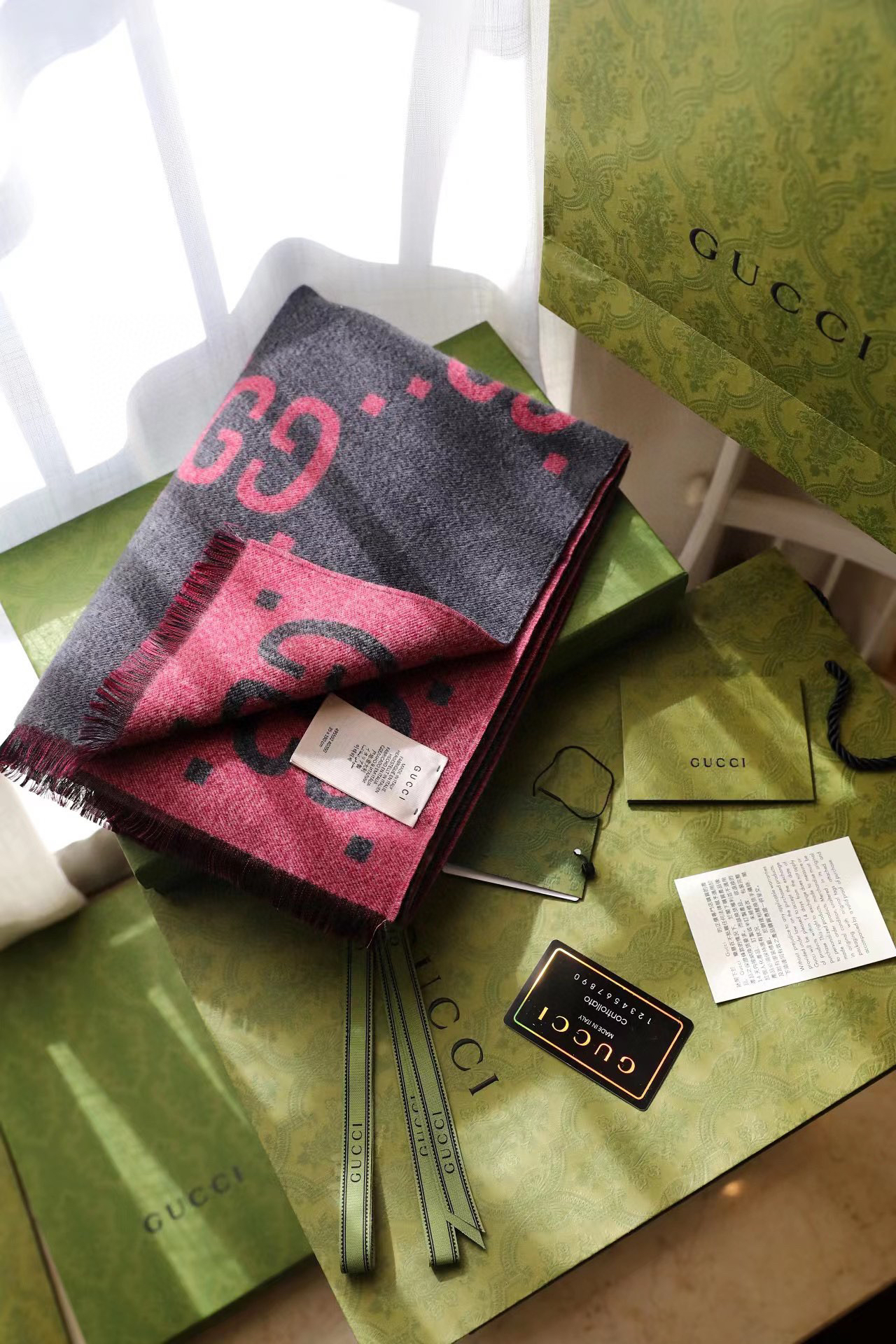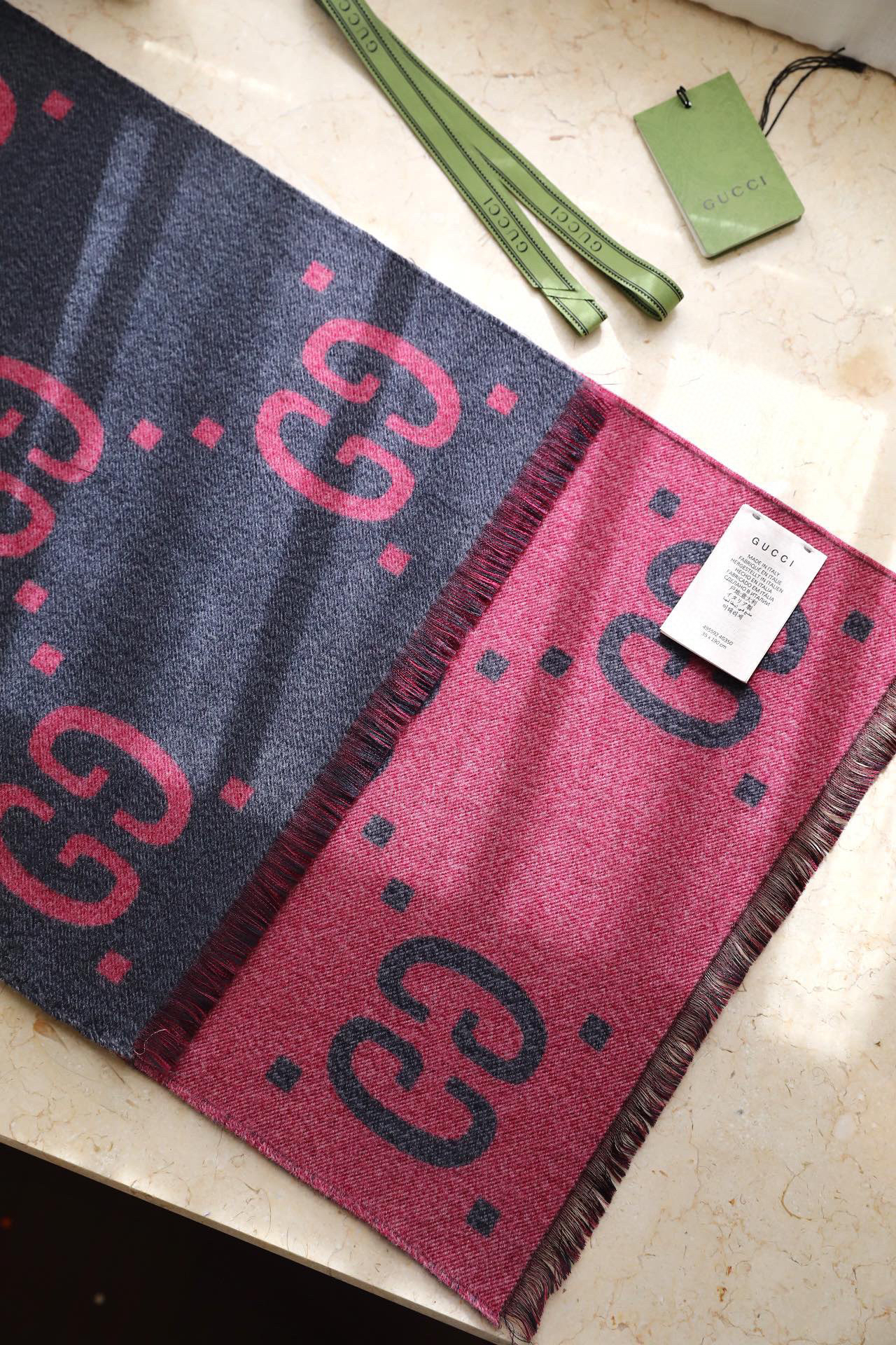 Gucci新款灰粉色围巾