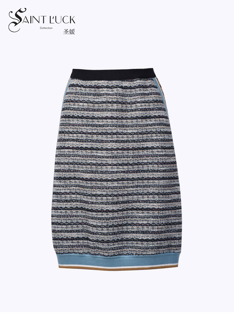 SAINT L’UCK/圣媛女装 时尚休闲彩条针织半身裙SA320B01