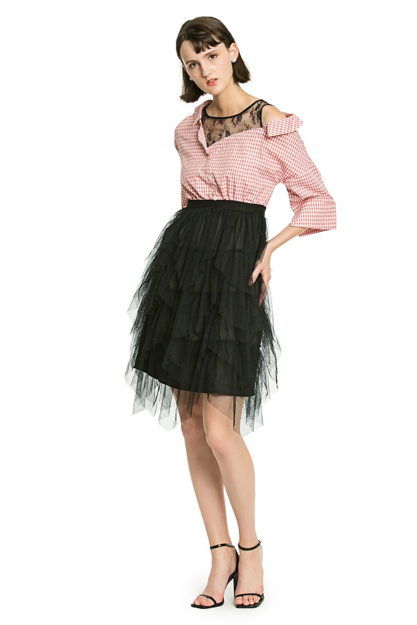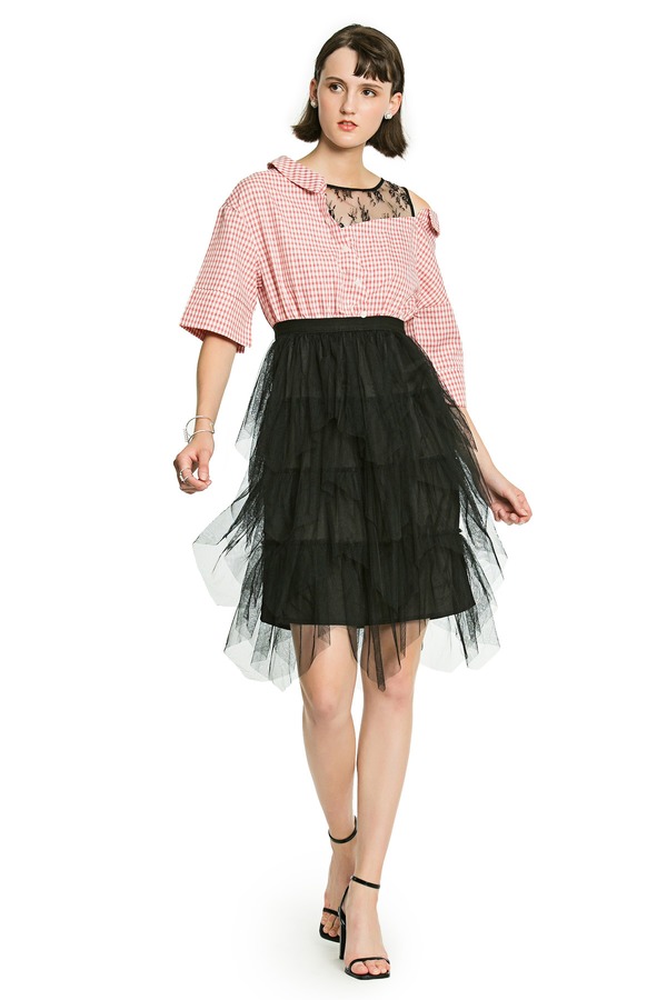 UE 蕾丝格纹拼接连衣裙 2731