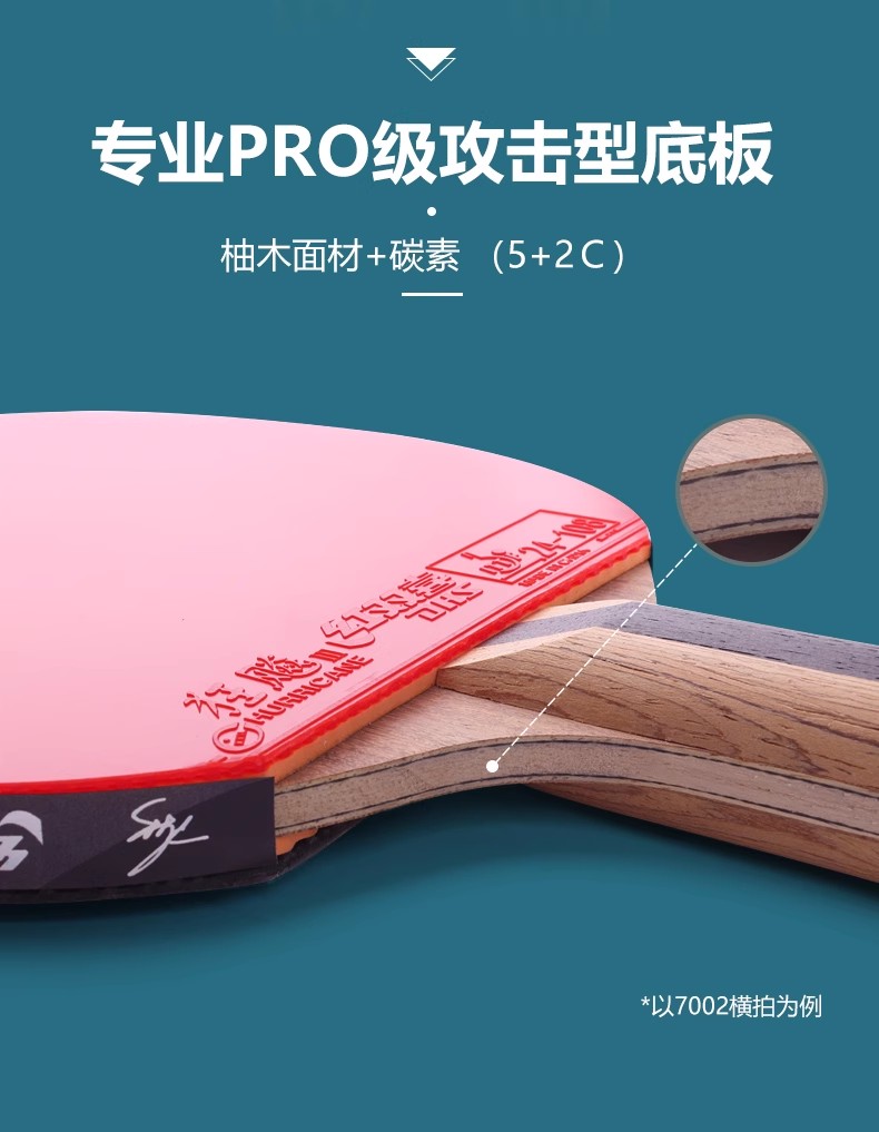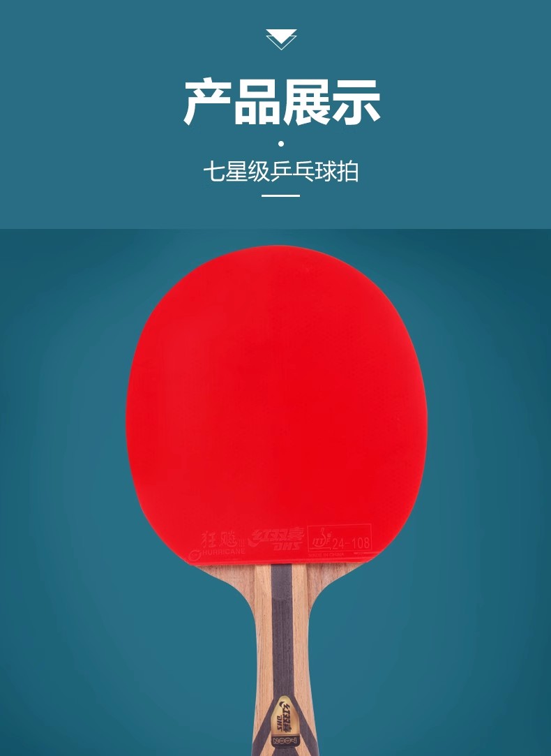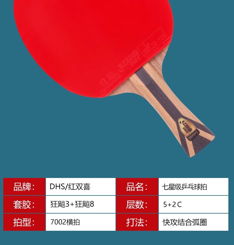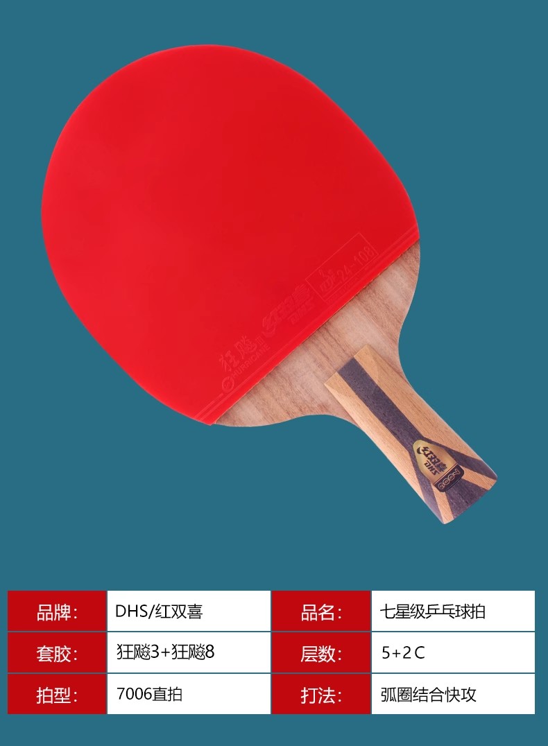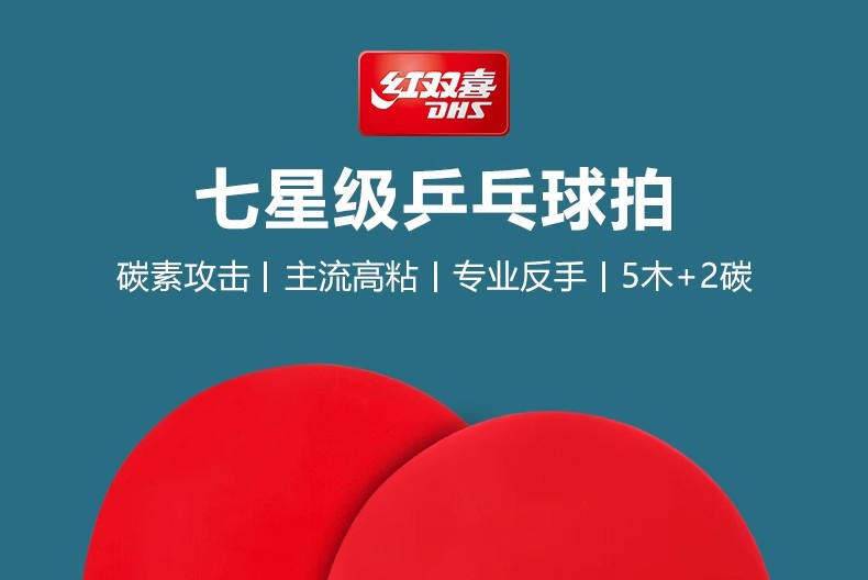 红双喜7 星横拍双面反胶乒乓球拍H7002 一支