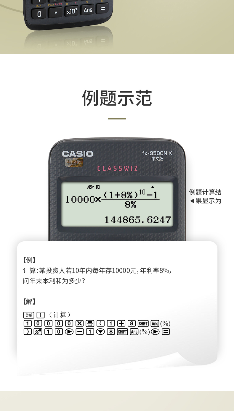卡西欧计算器 函数科学 小C君“上岸系列” 适用于中高级会计师考试/注册会计师(CPA)FX-350CN X-CJUN-SA