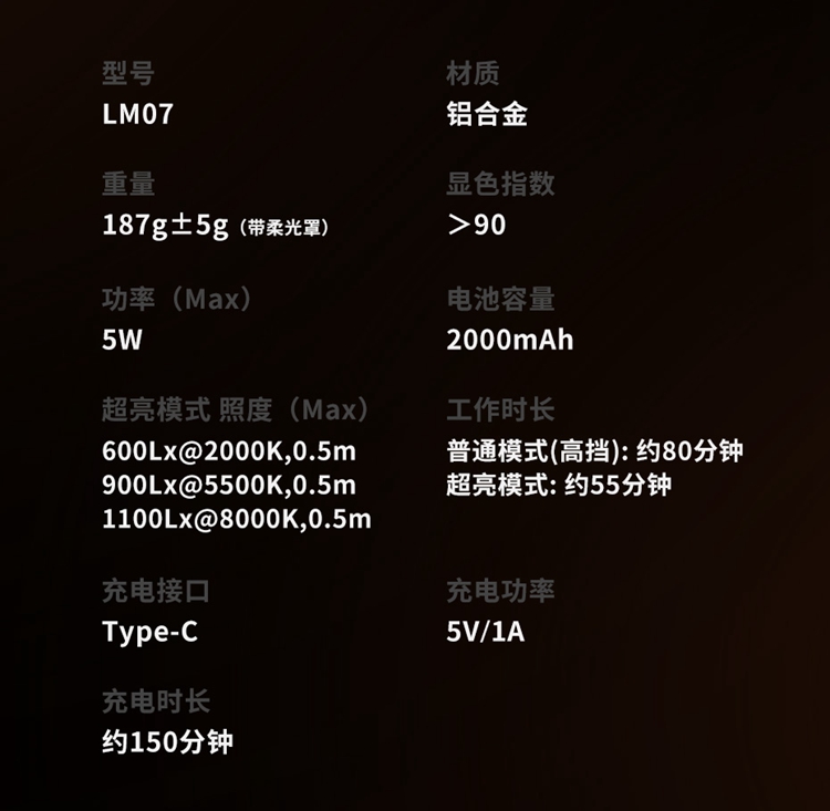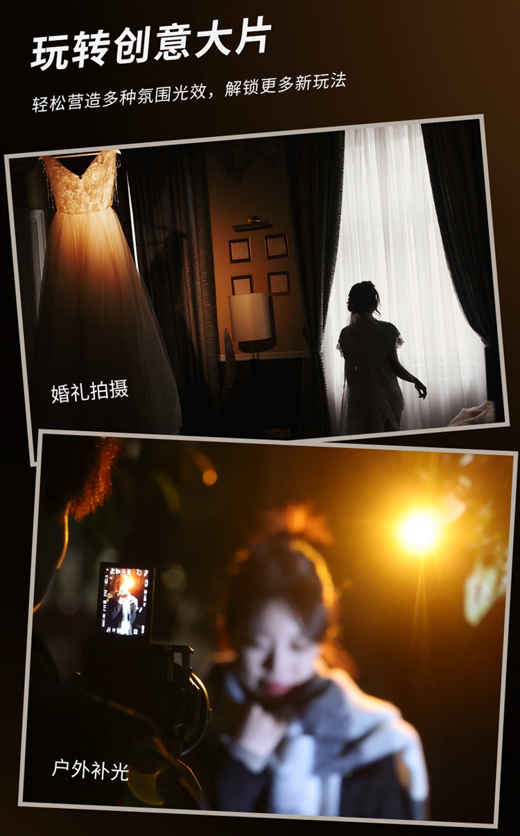 Ulanzi优篮子LM07摄影可变焦手电筒冷暖双色温可调摄影摄像直播户外氛围补光灯人像拍照打光灯造影写真