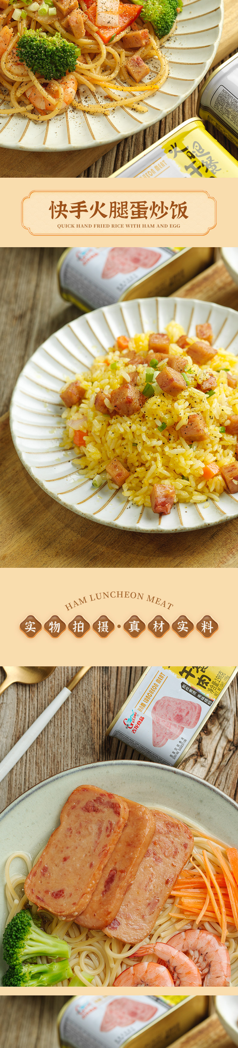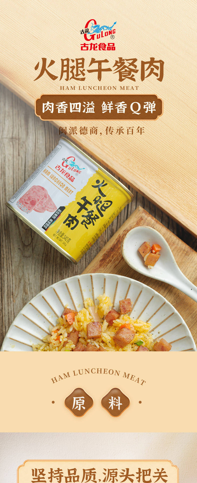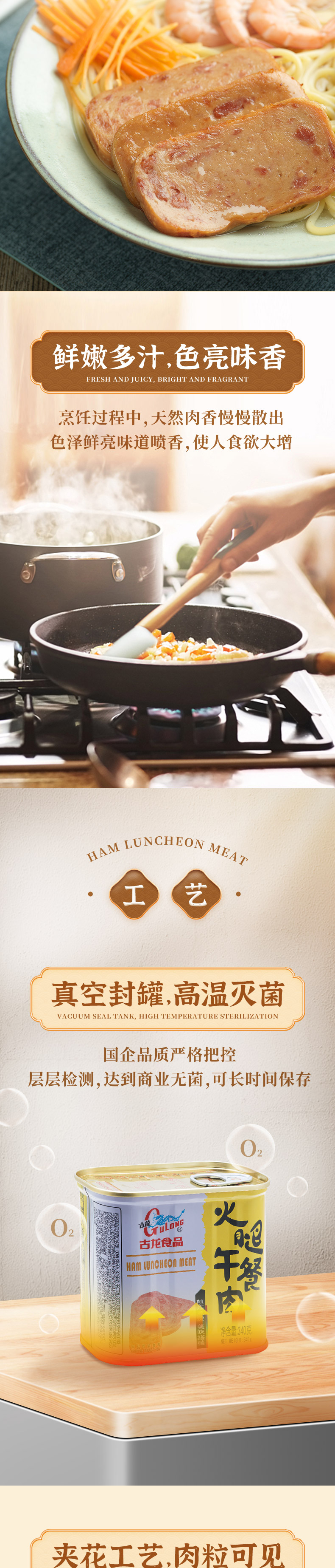 古龙食品火腿午餐肉罐头宿舍火锅食材即食三明治火腿熟猪肉340g*3