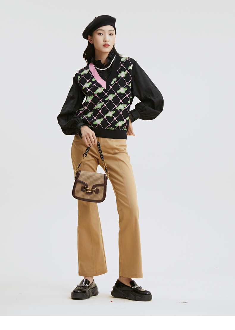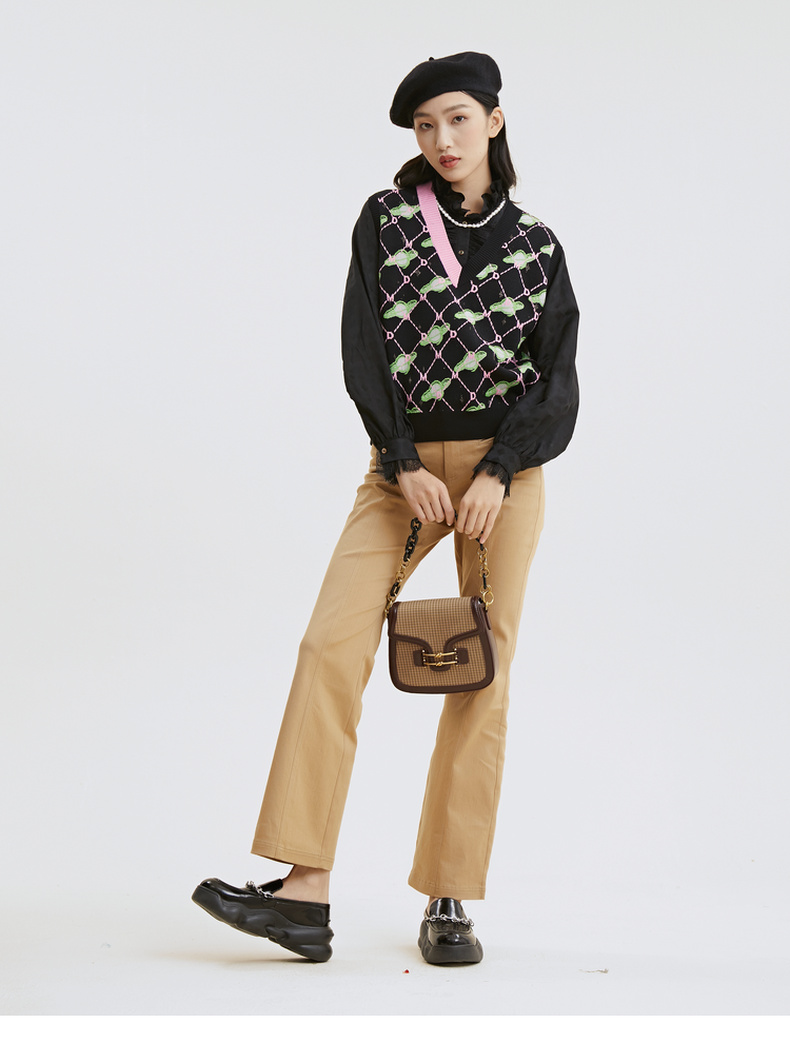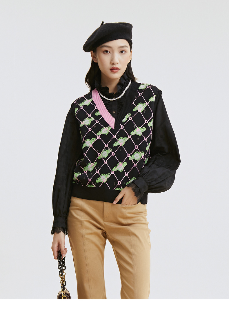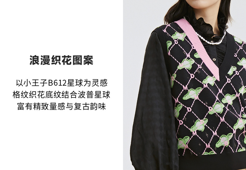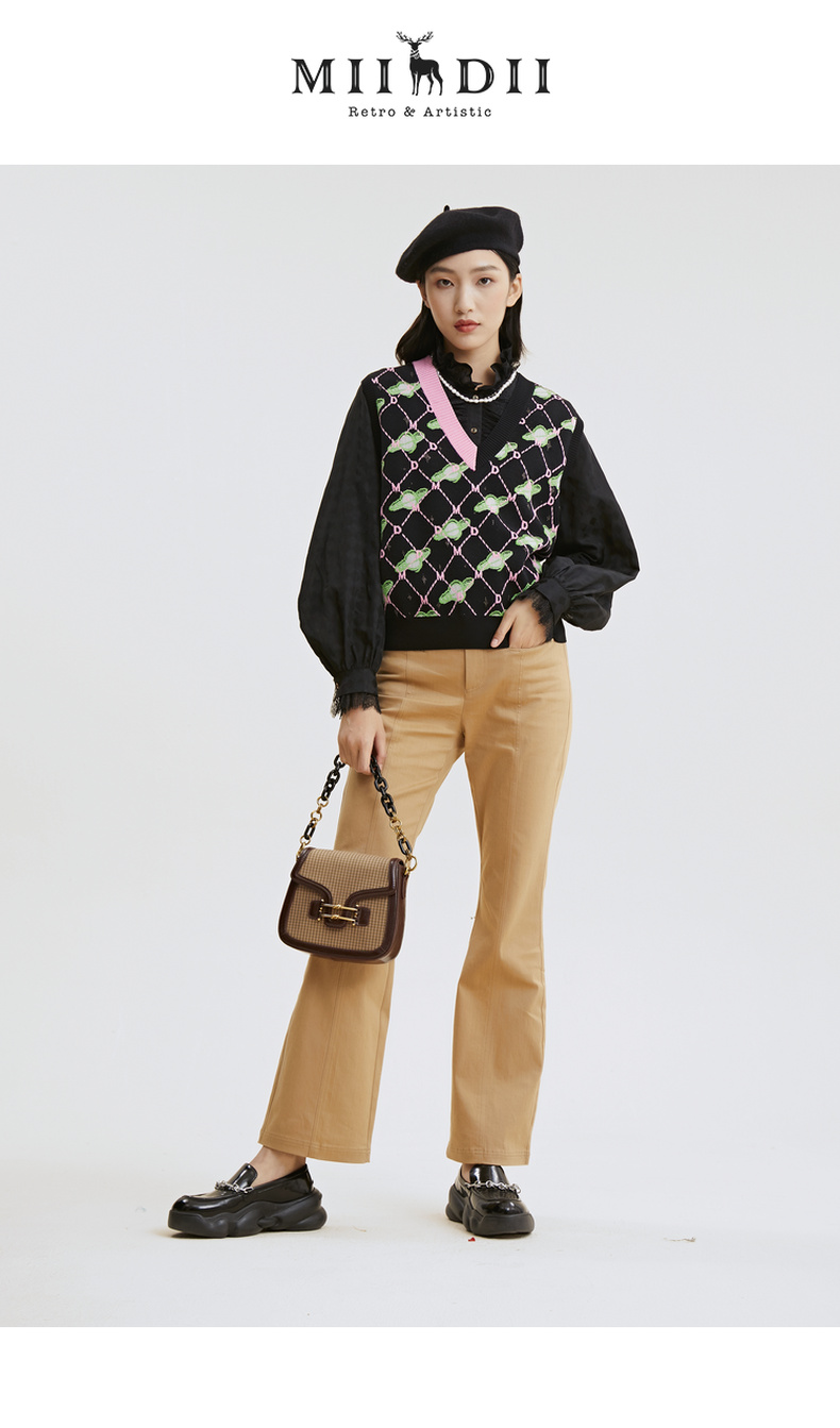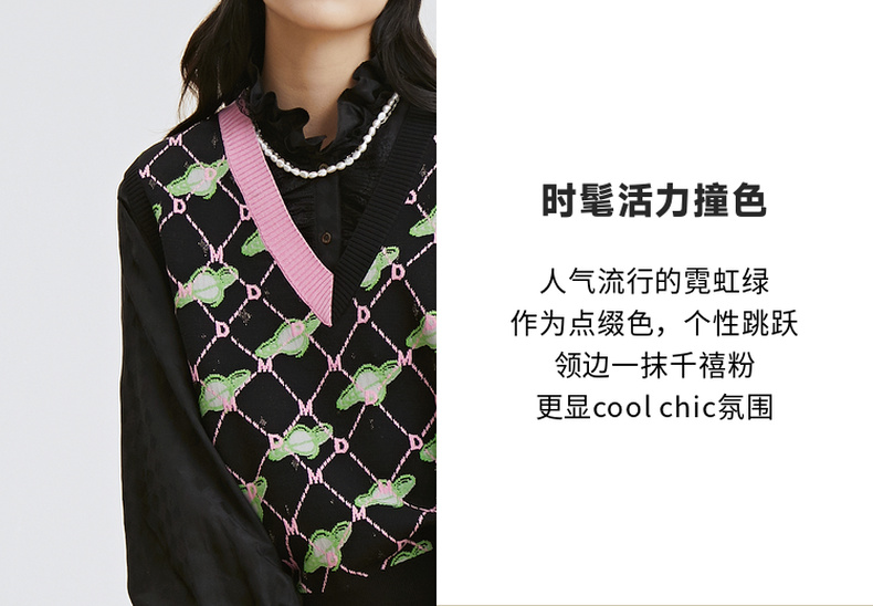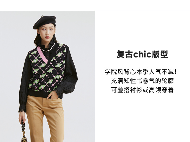 谜底2022秋季新款复古学院合体V领套头背心毛衣外套女227MZ6144