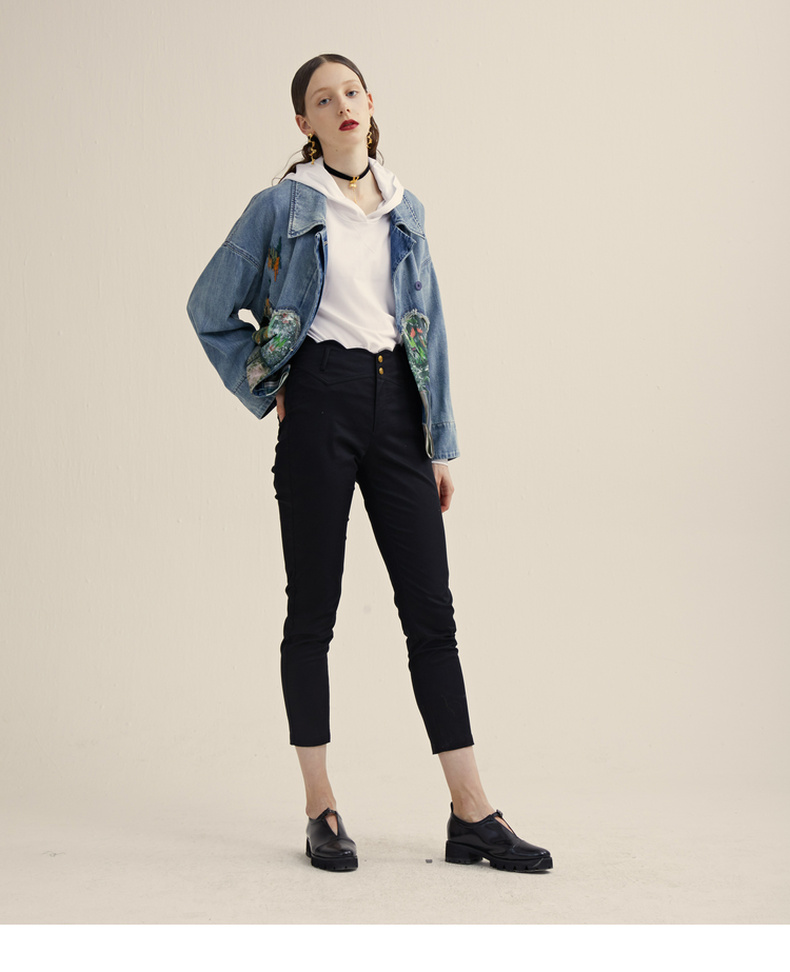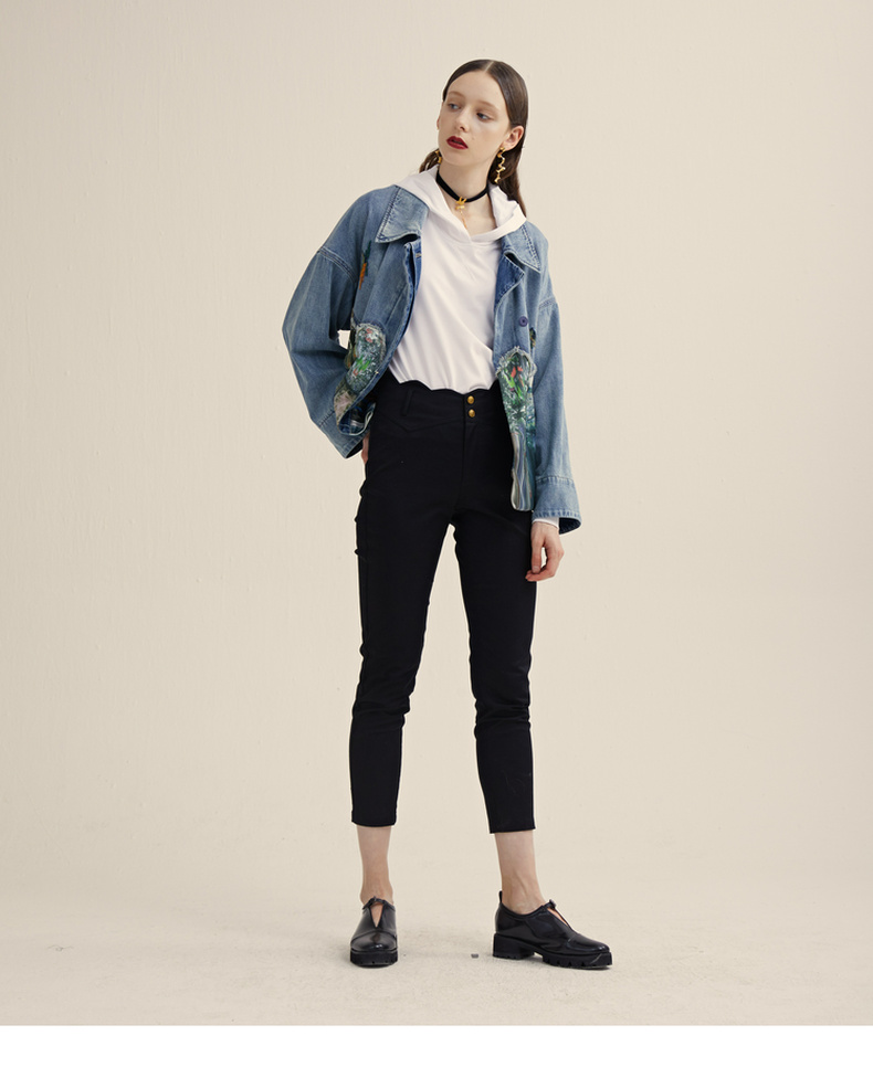 谜底牛仔裤女2022夏季复古高腰天丝棉小脚裤225MK6002