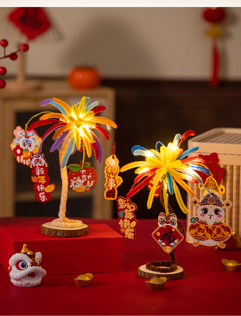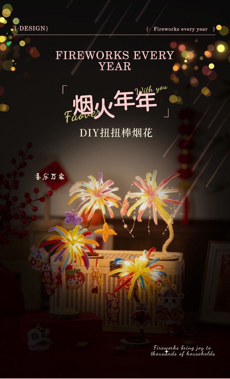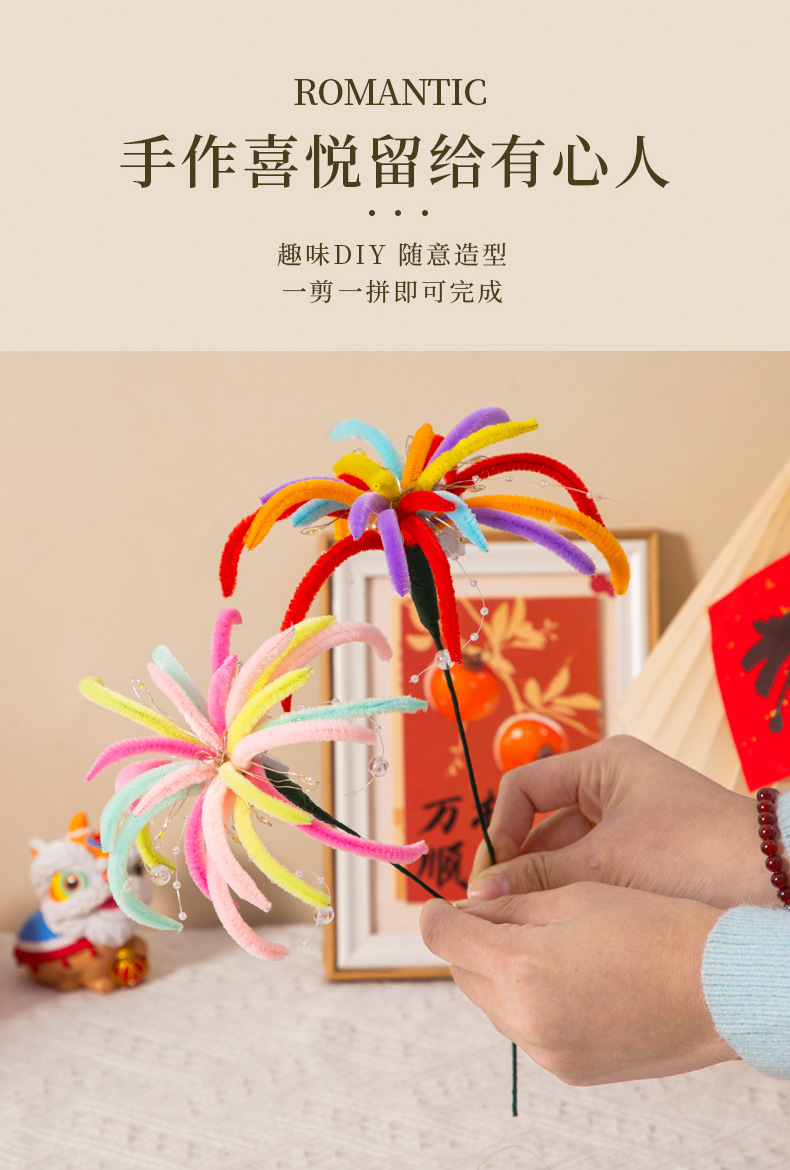 【DIY扭扭棒烟花,烟火年年~】新年元旦发光烟花扭扭棒 手工diy花束材料包 儿童幼儿园玩具礼物品-QQ