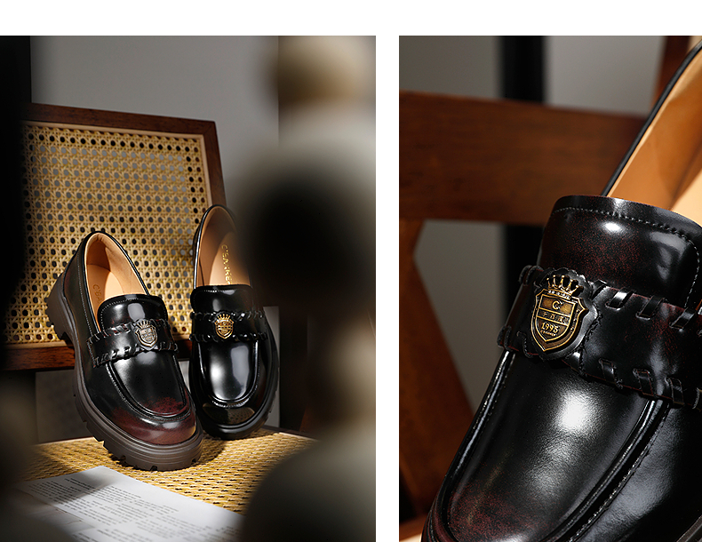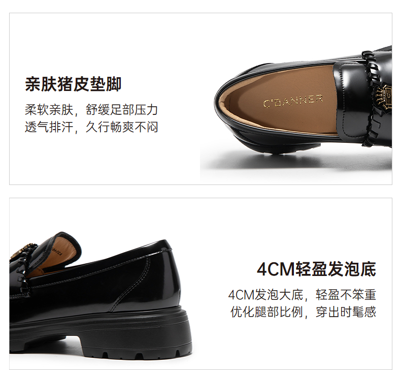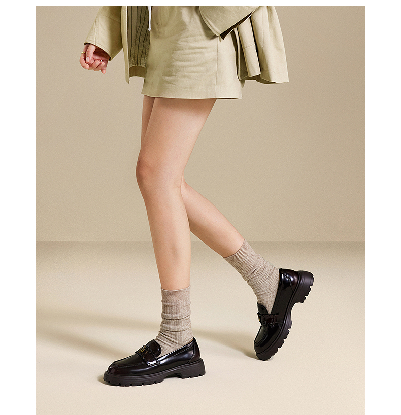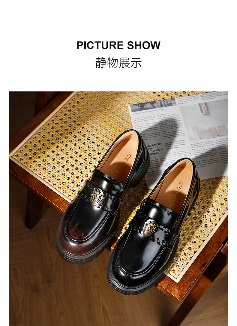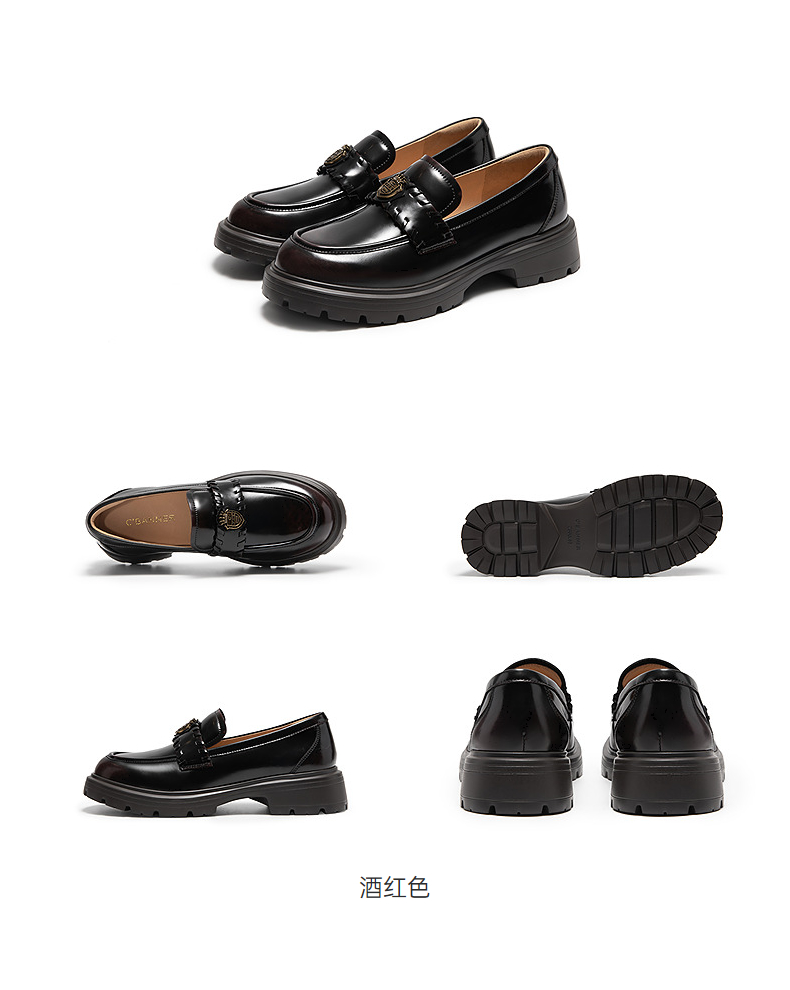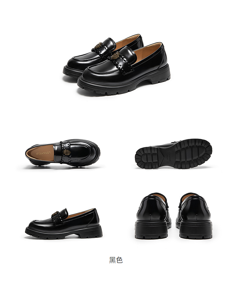 千百度漆皮厚底乐福鞋女增高小皮鞋深口单鞋A25461708