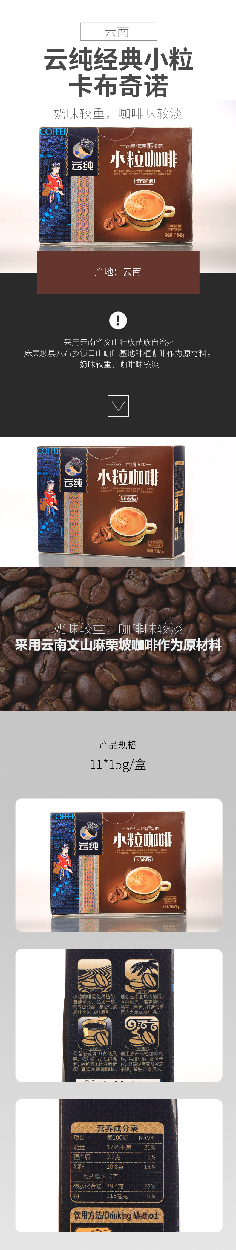 采用云南省文山壮族苗族自治州麻栗坡县八布乡锁口山咖啡基地种植咖啡作为原材料。奶味较重,咖啡味较淡