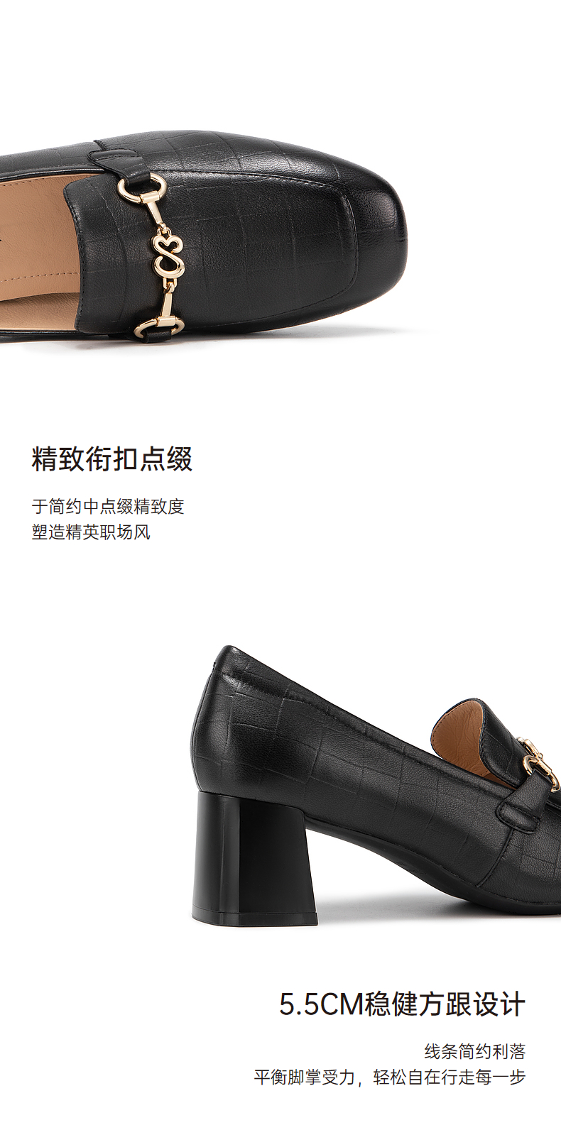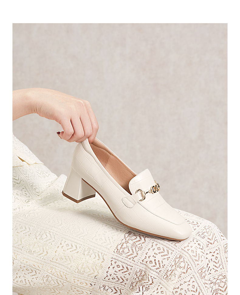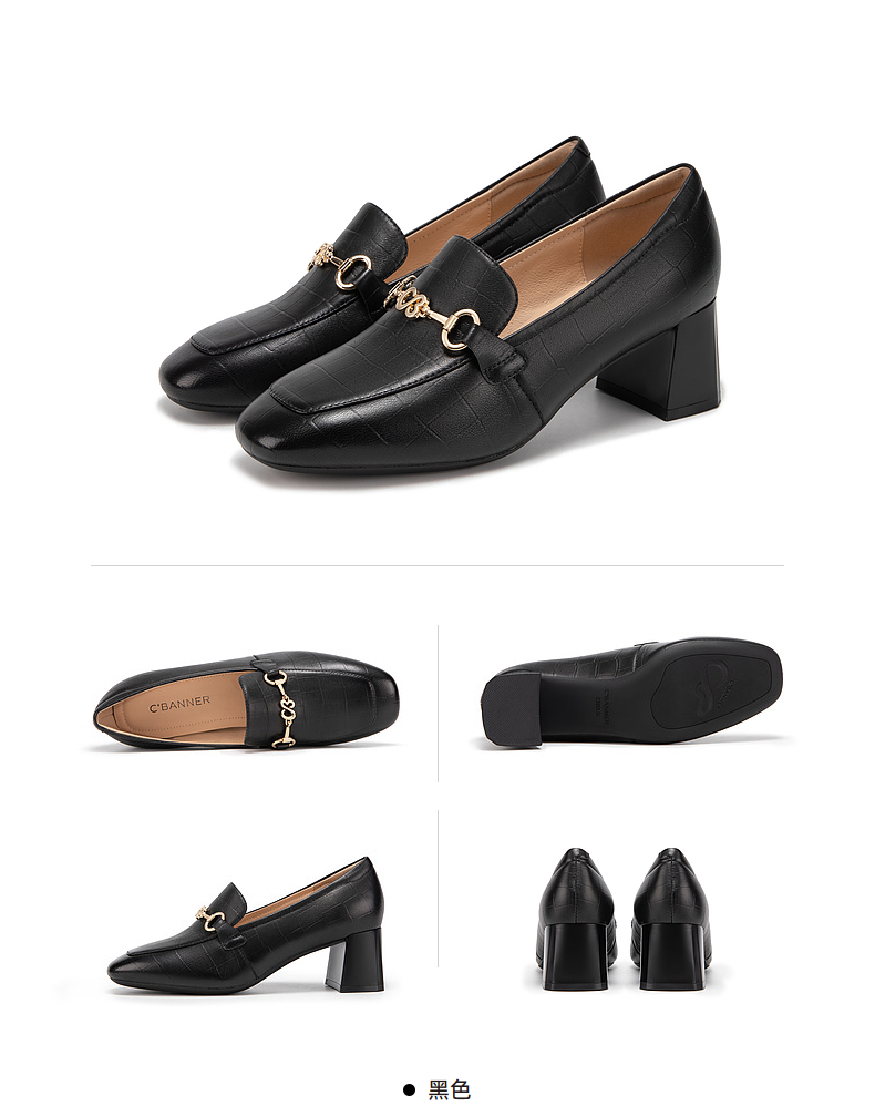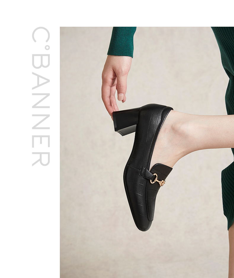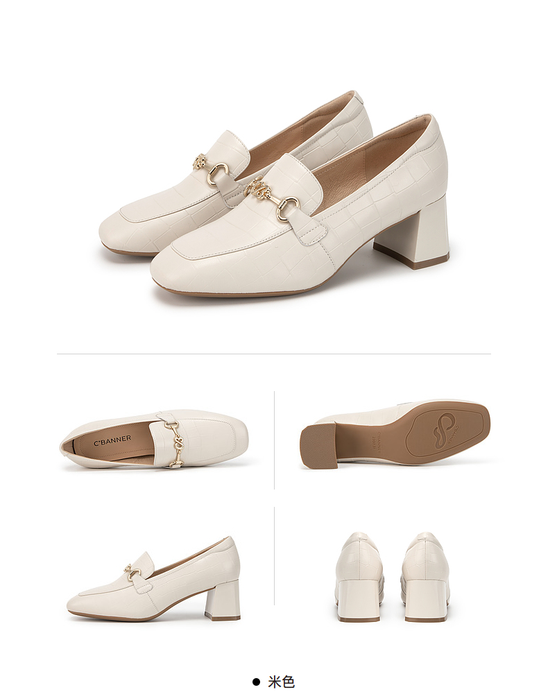 千百度中跟裸色浅口单鞋女春季尖头增高显瘦通勤小皮鞋A24106016