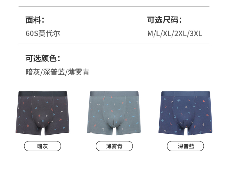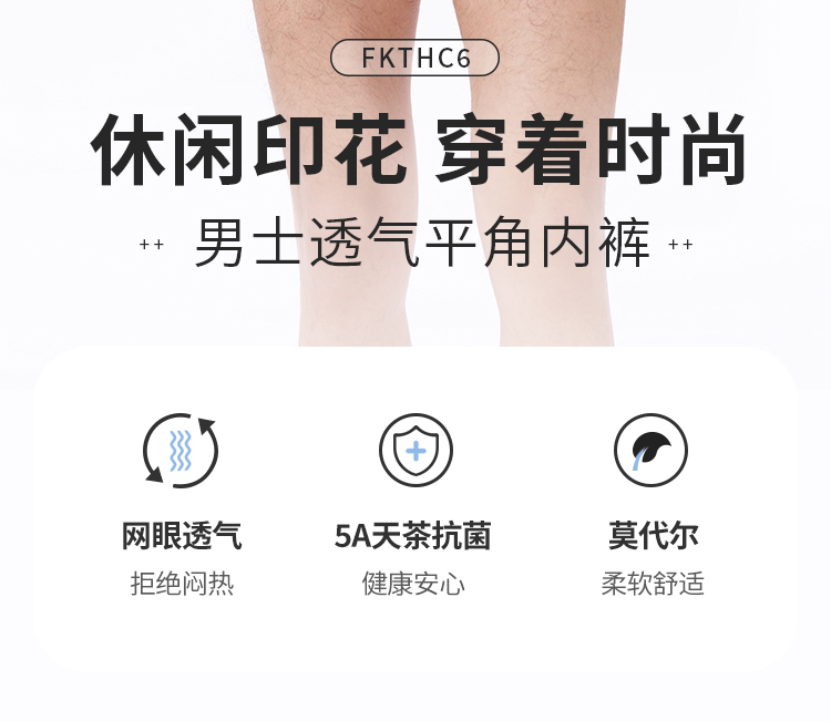 都市丽人都市锋尚内裤日常休闲平角裤60S莫代尔男士内裤FKTHC6