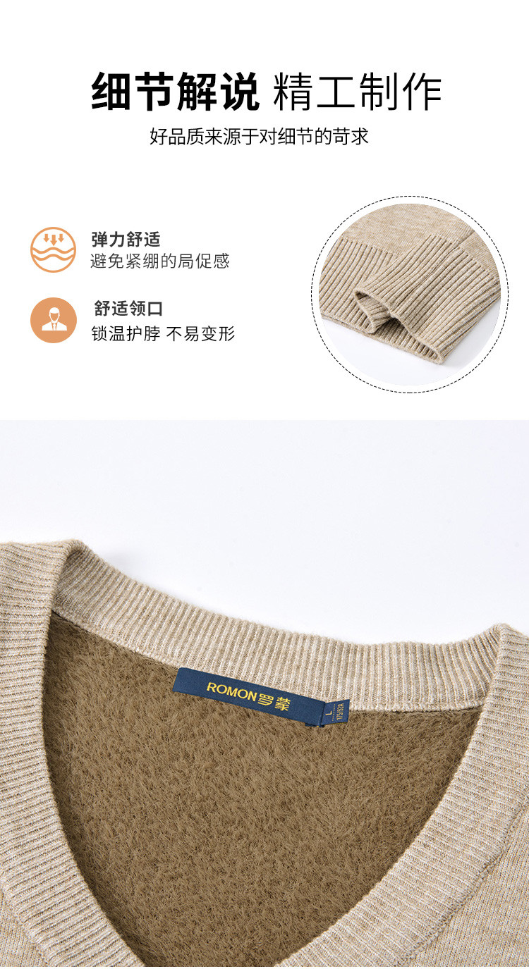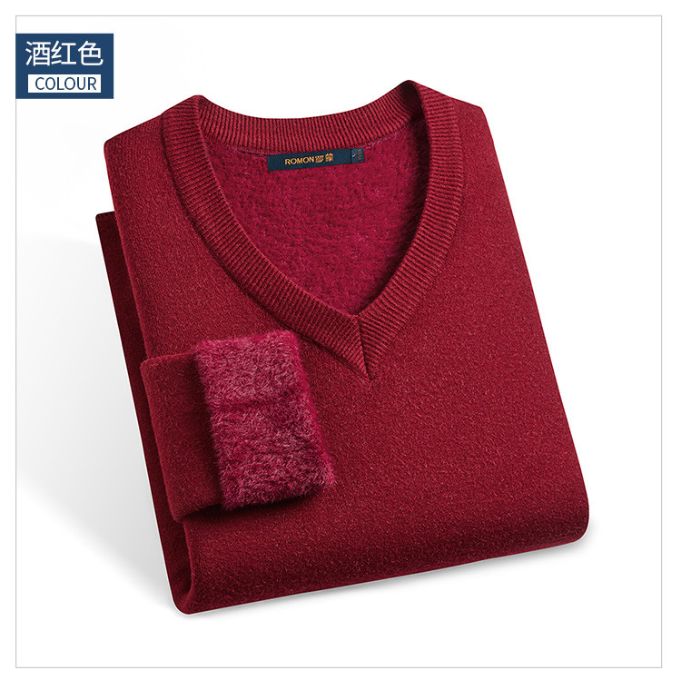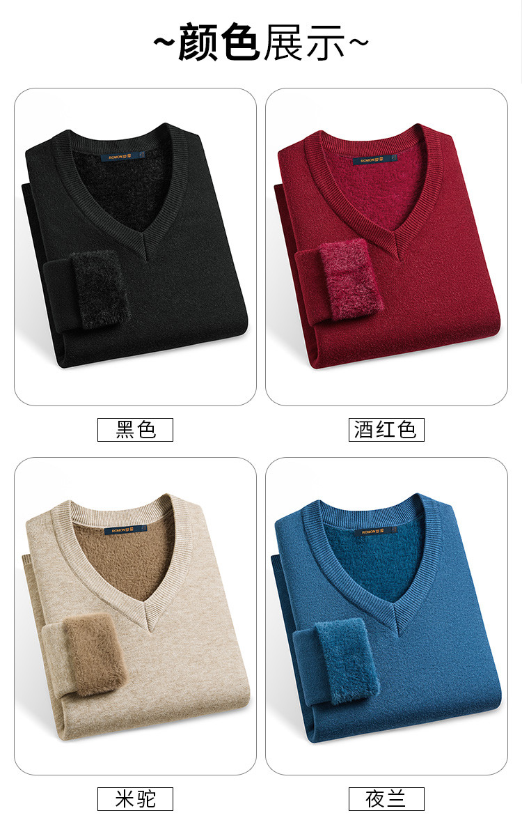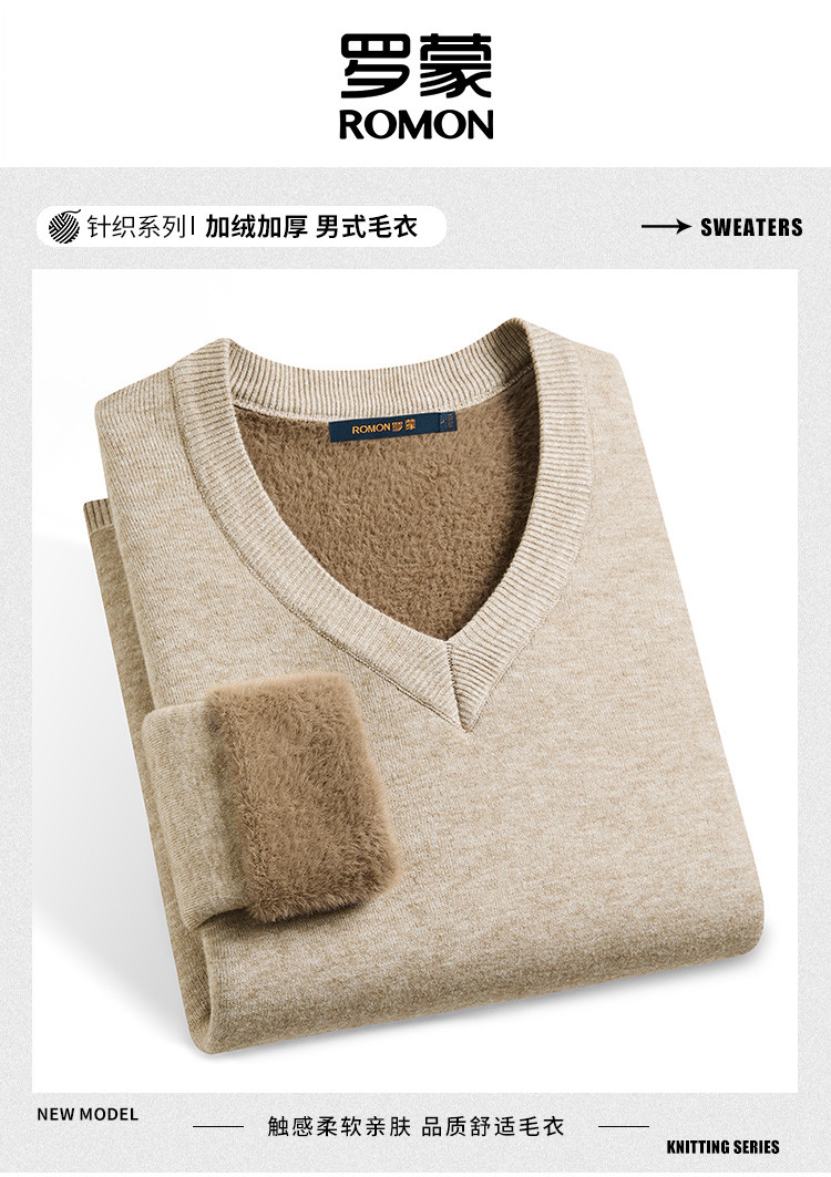 【一体绒】罗蒙加绒加厚毛衣秋冬加绒针织衫保暖毛衫男士毛衣