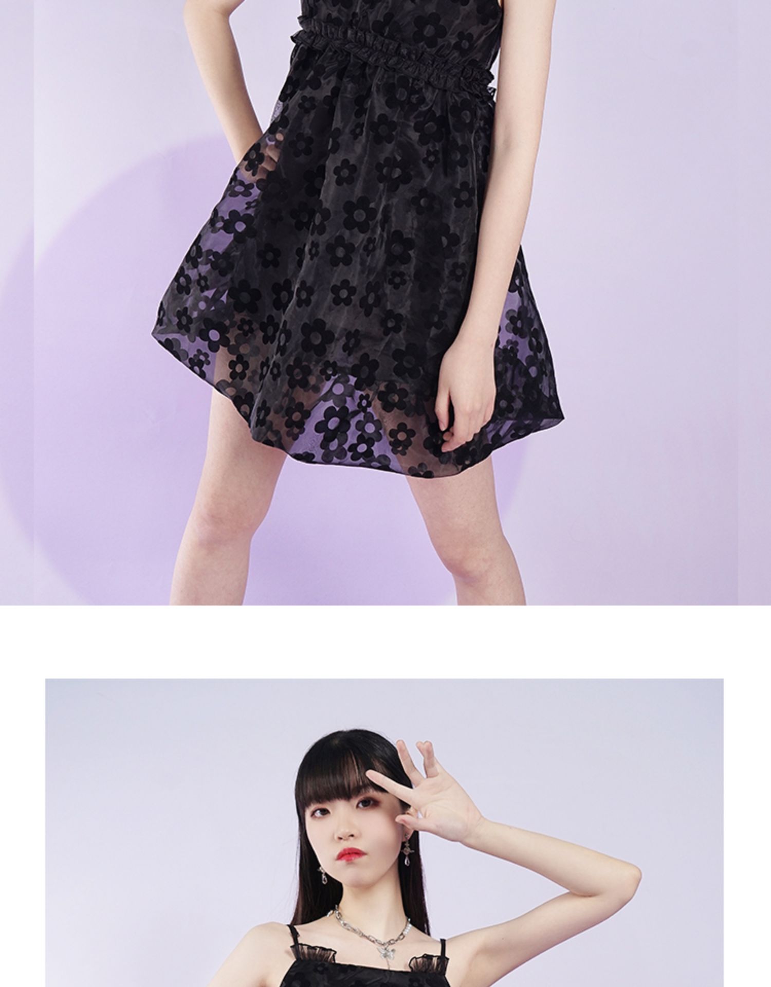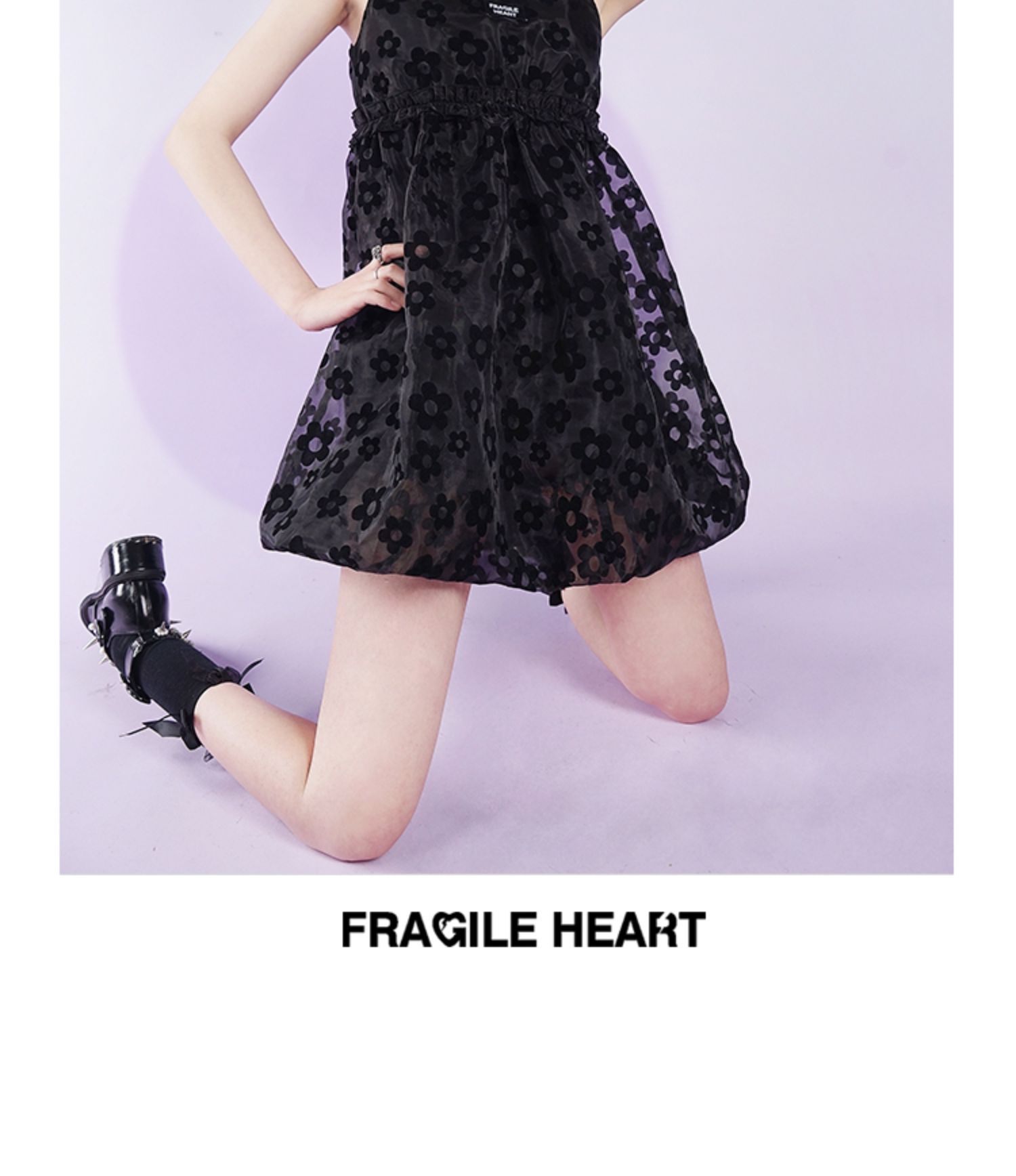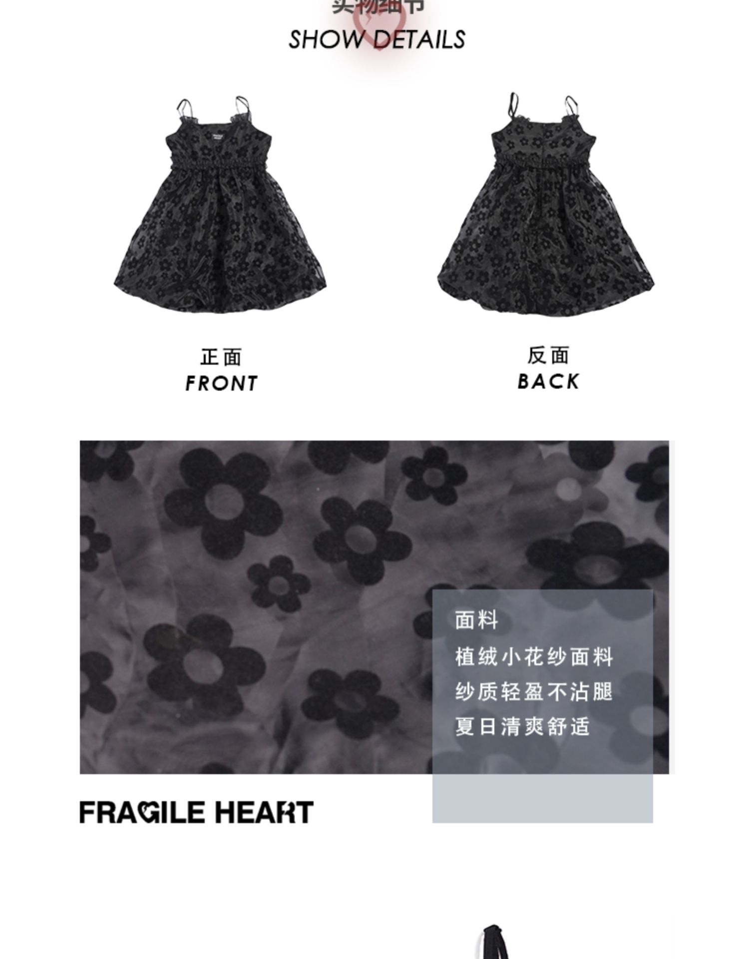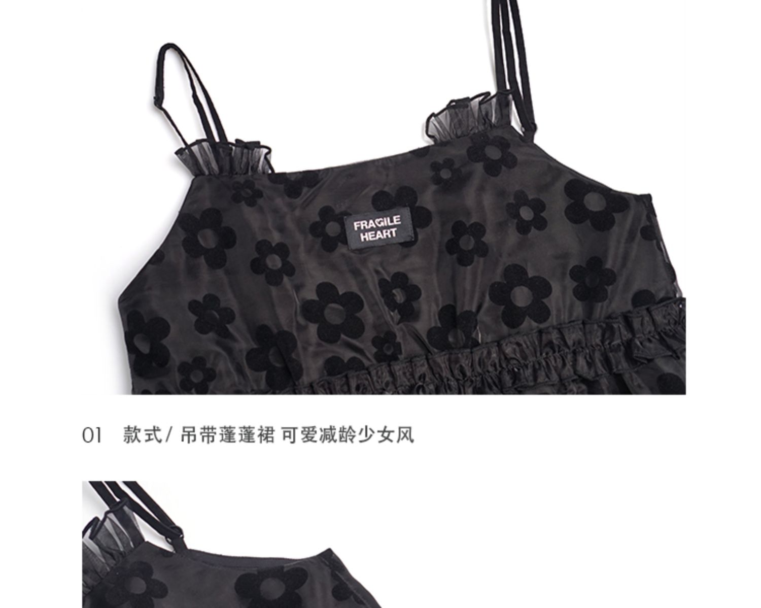 fragileheart易碎商店2021夏季新款网纱花花吊带裙短款黑色连衣裙