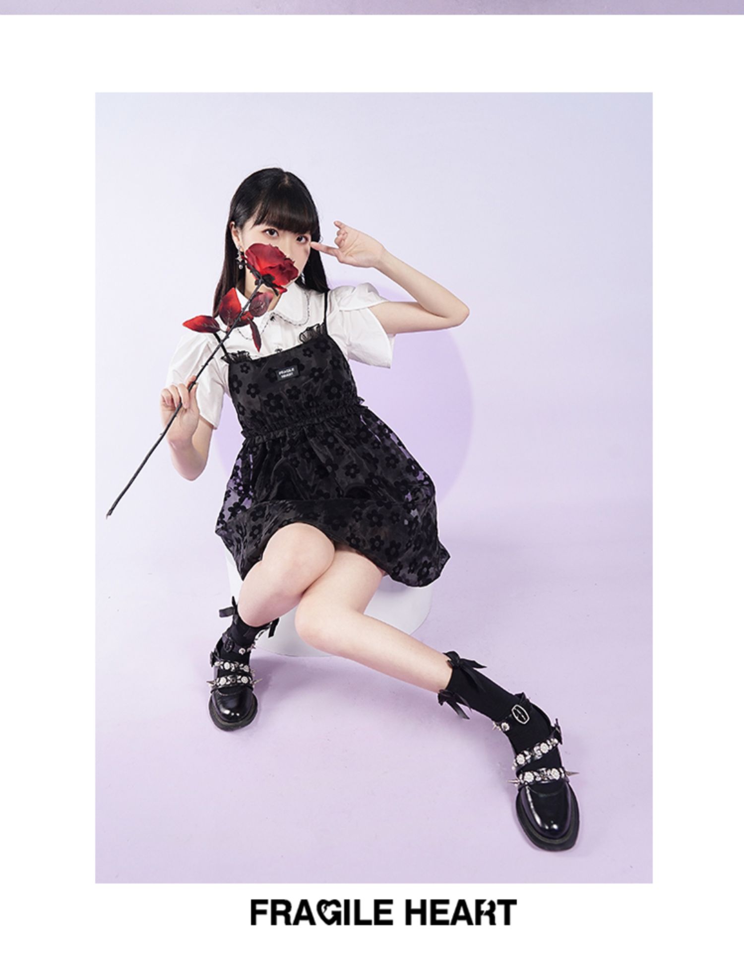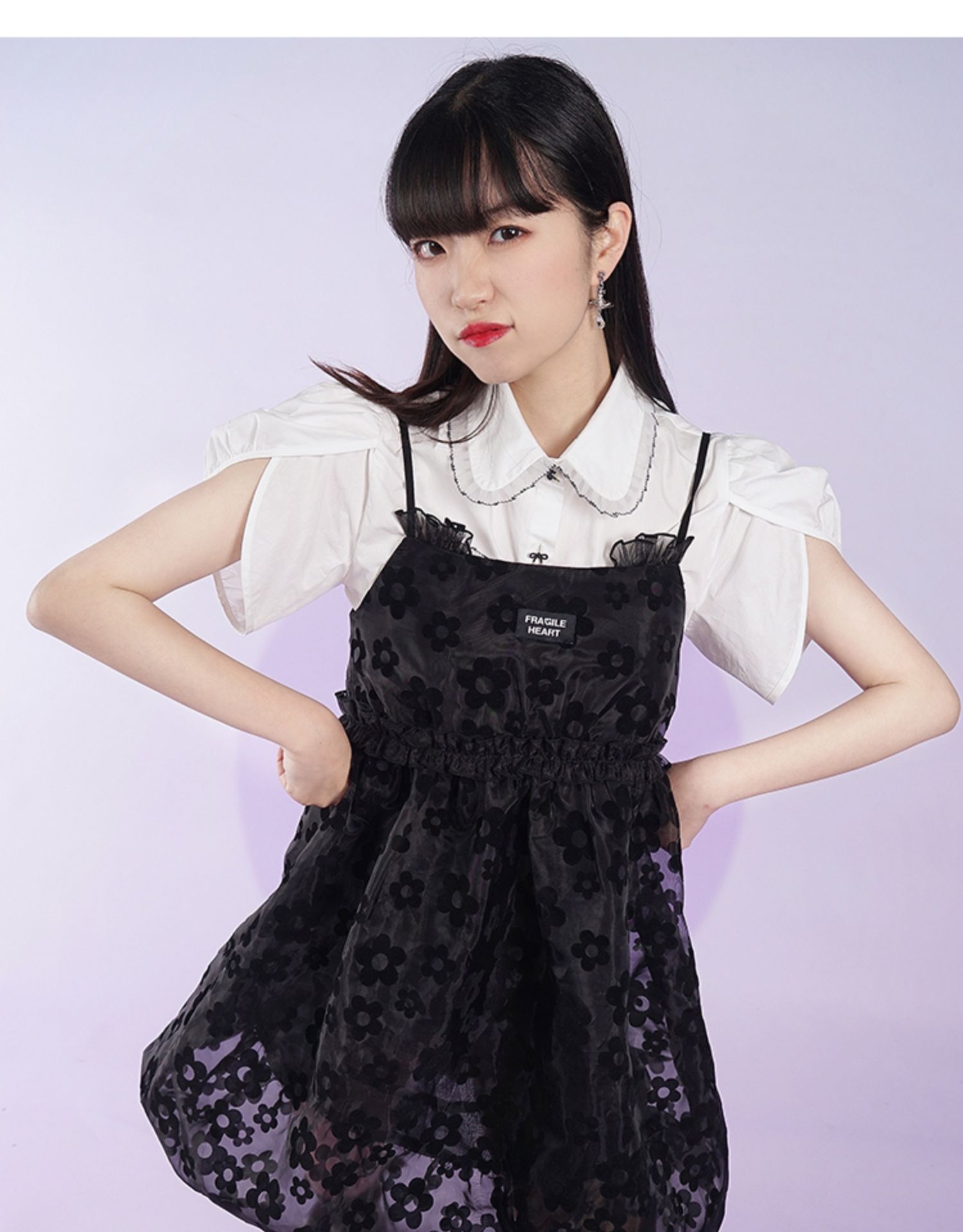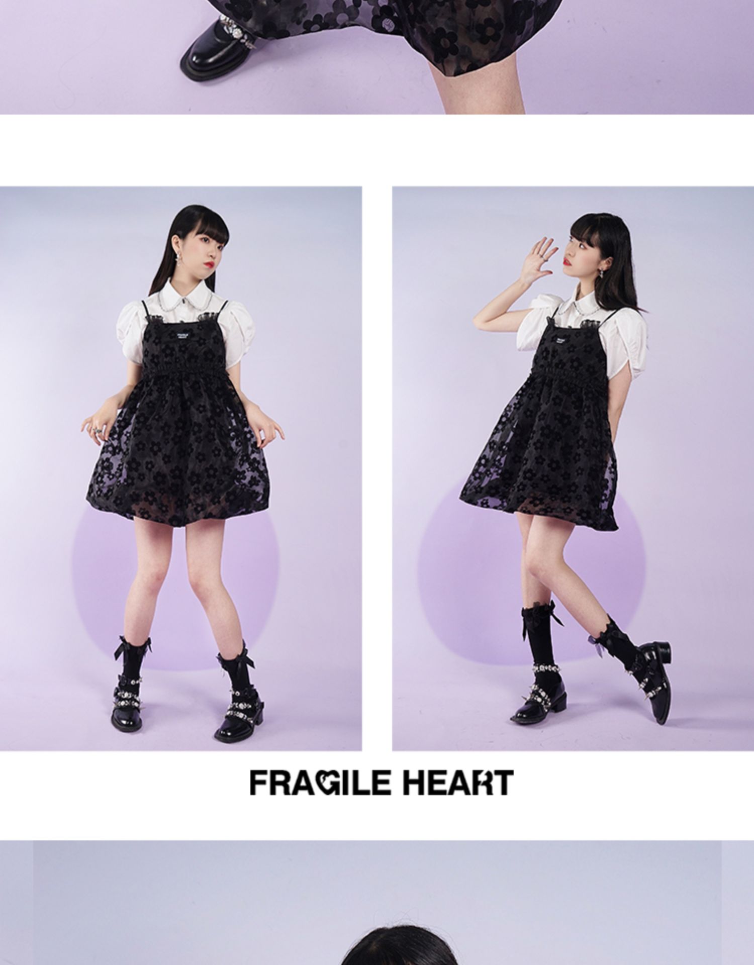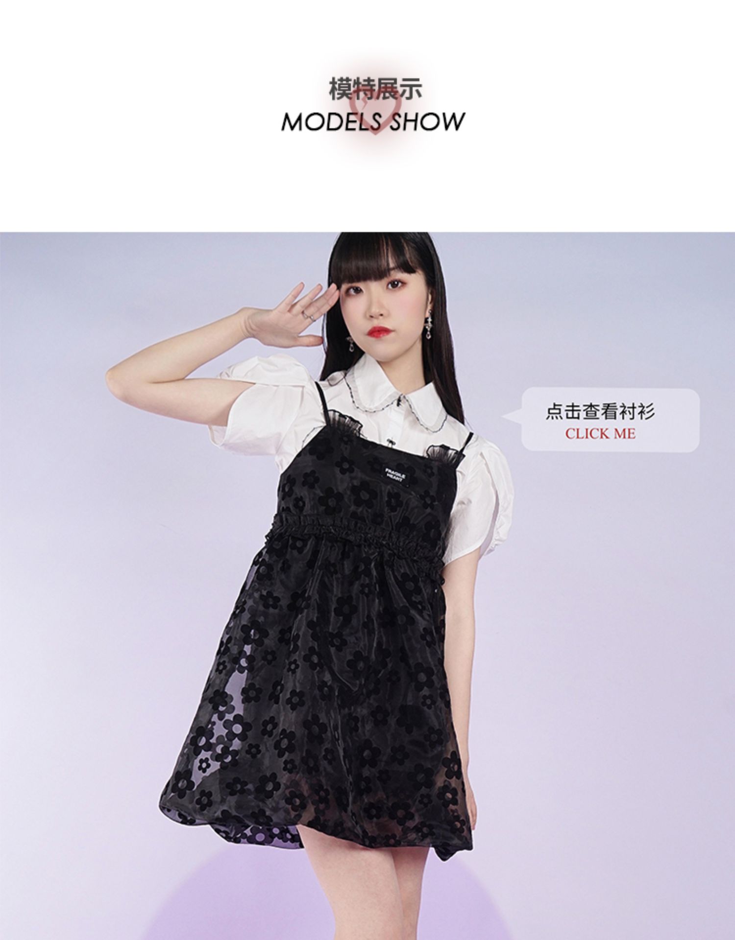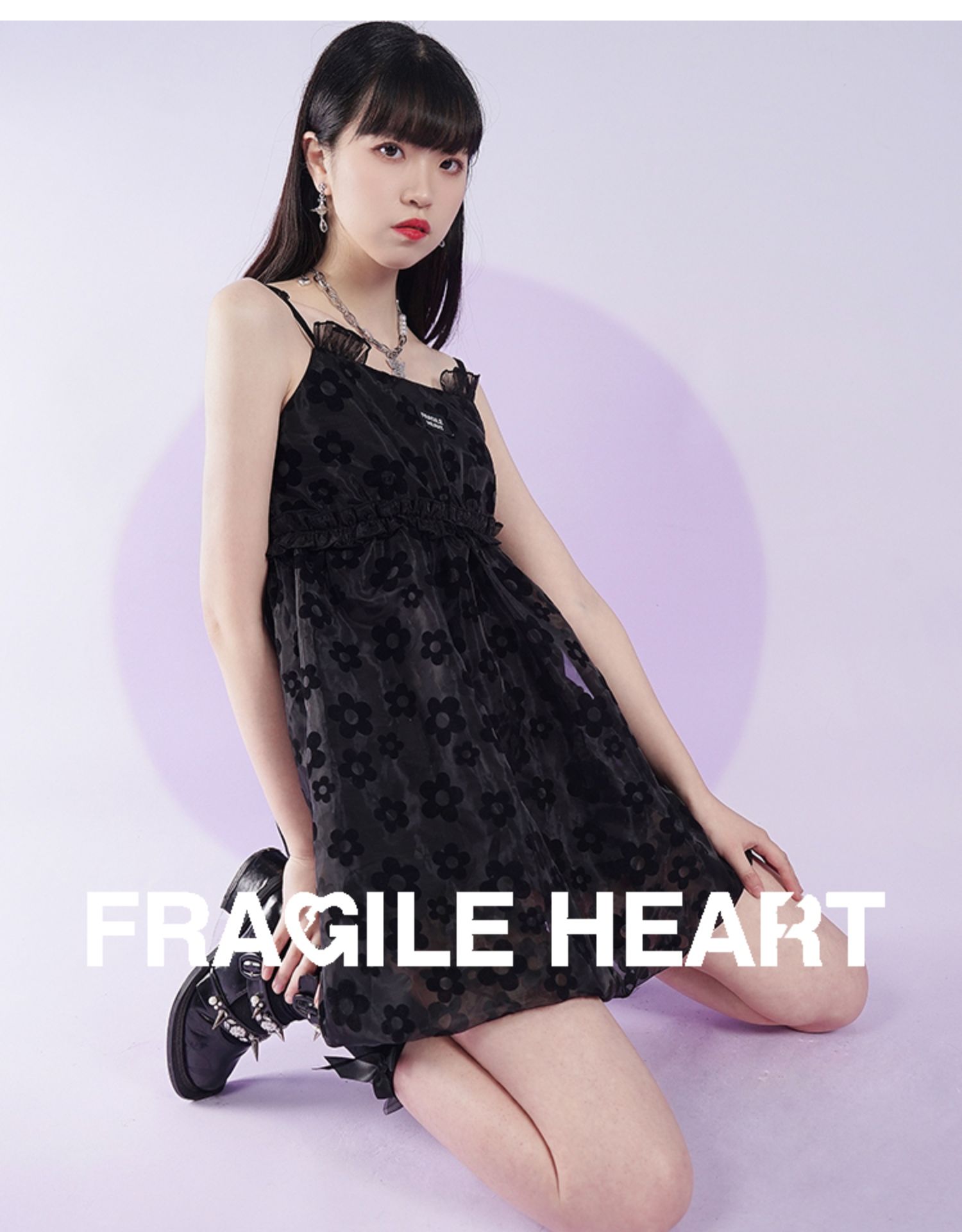 fragileheart易碎商店2021夏季新款网纱花花吊带裙短款黑色连衣裙