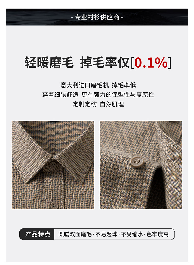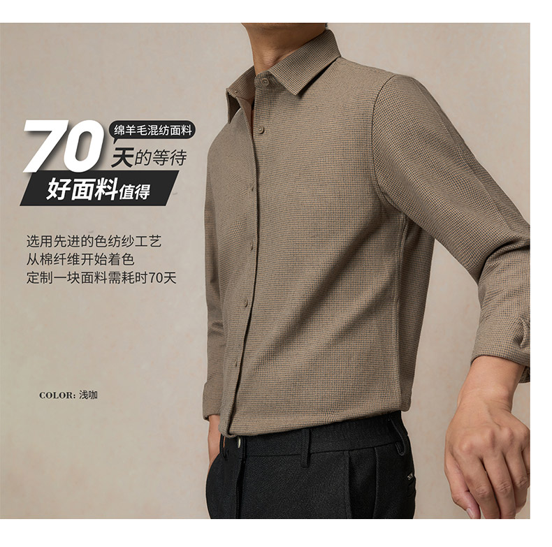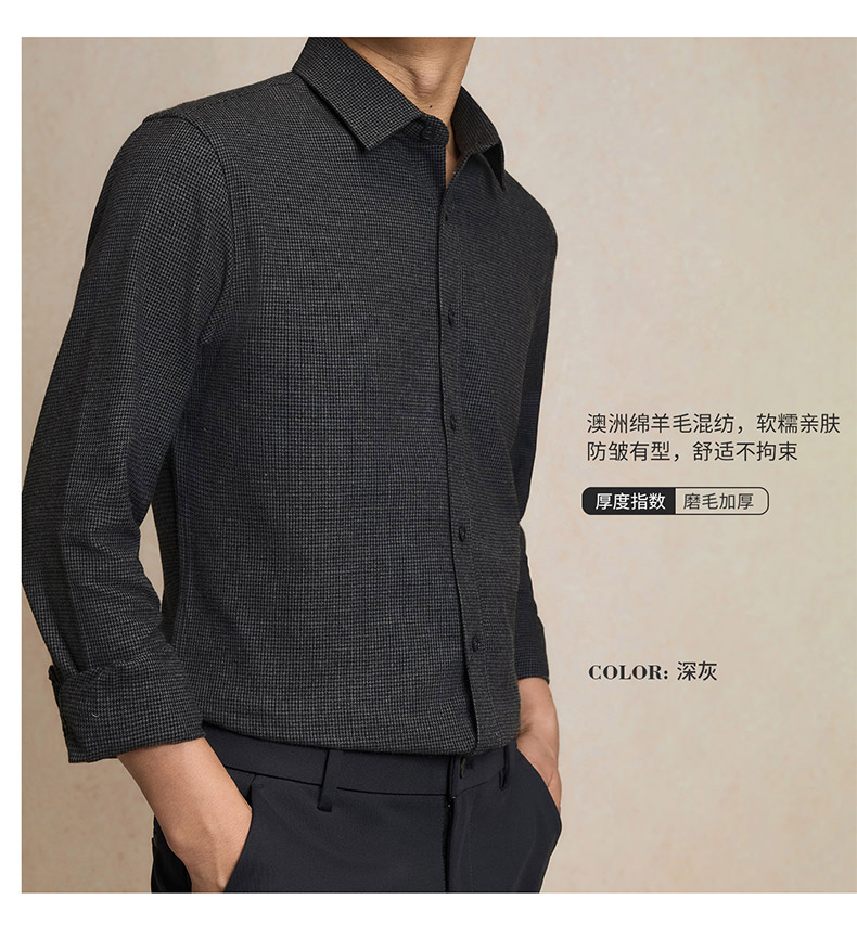 【含绵羊毛】罗蒙秋冬长袖衬衫男士职业通勤厚款舒适商务风长袖衬衣