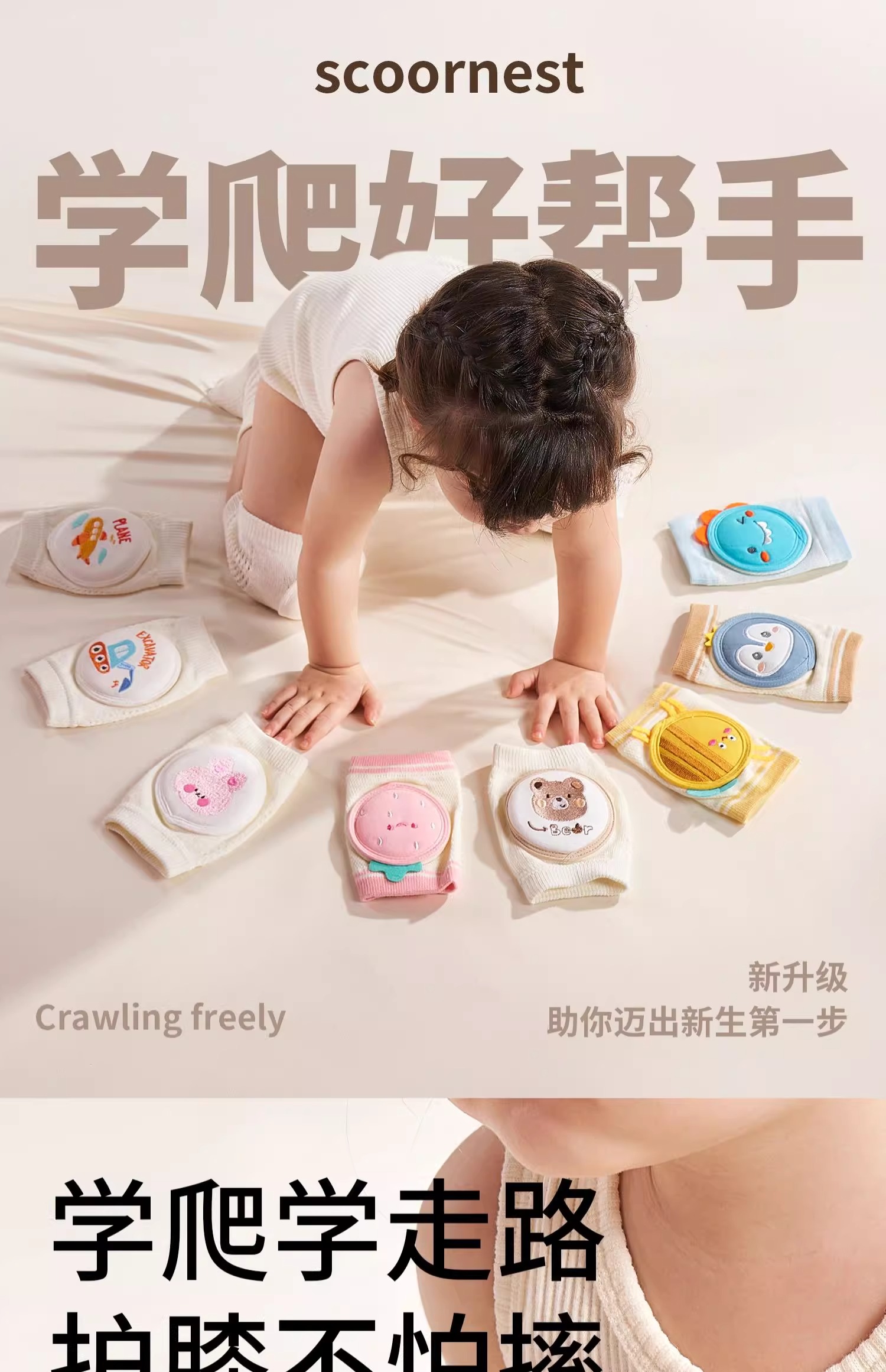 科巢儿童护膝夏季薄款婴儿爬行宝宝防摔学步护具小孩膝盖护垫护套神器