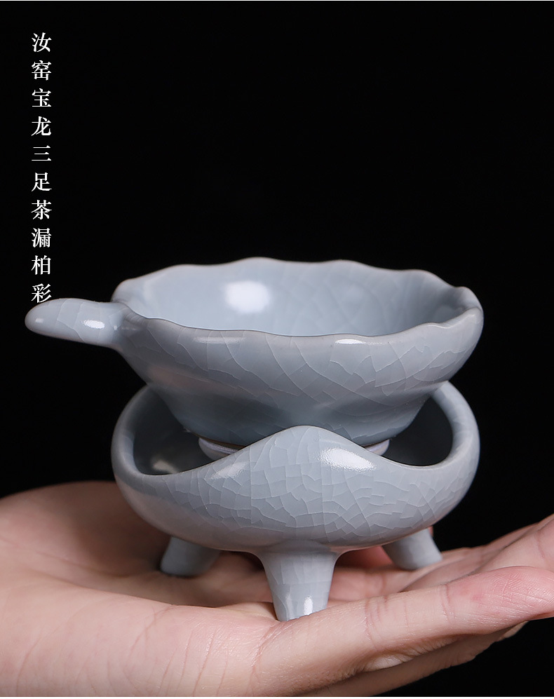 汝窑茶漏创意冰裂釉茶隔架子托家用陶瓷茶叶过滤器可养茶道零配件