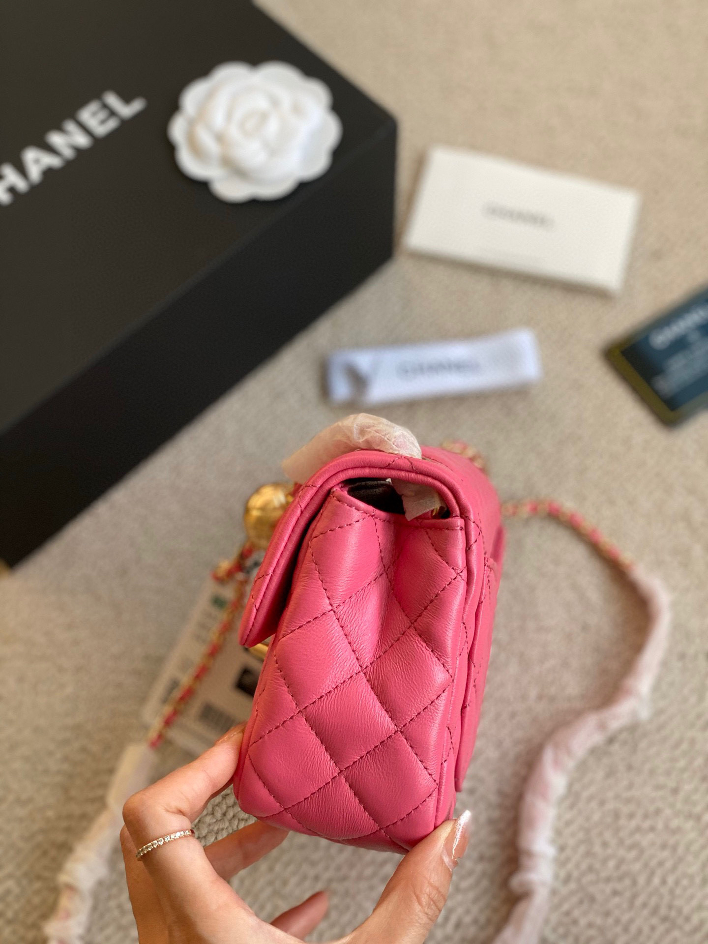 蜜桃粉金球包方胖子