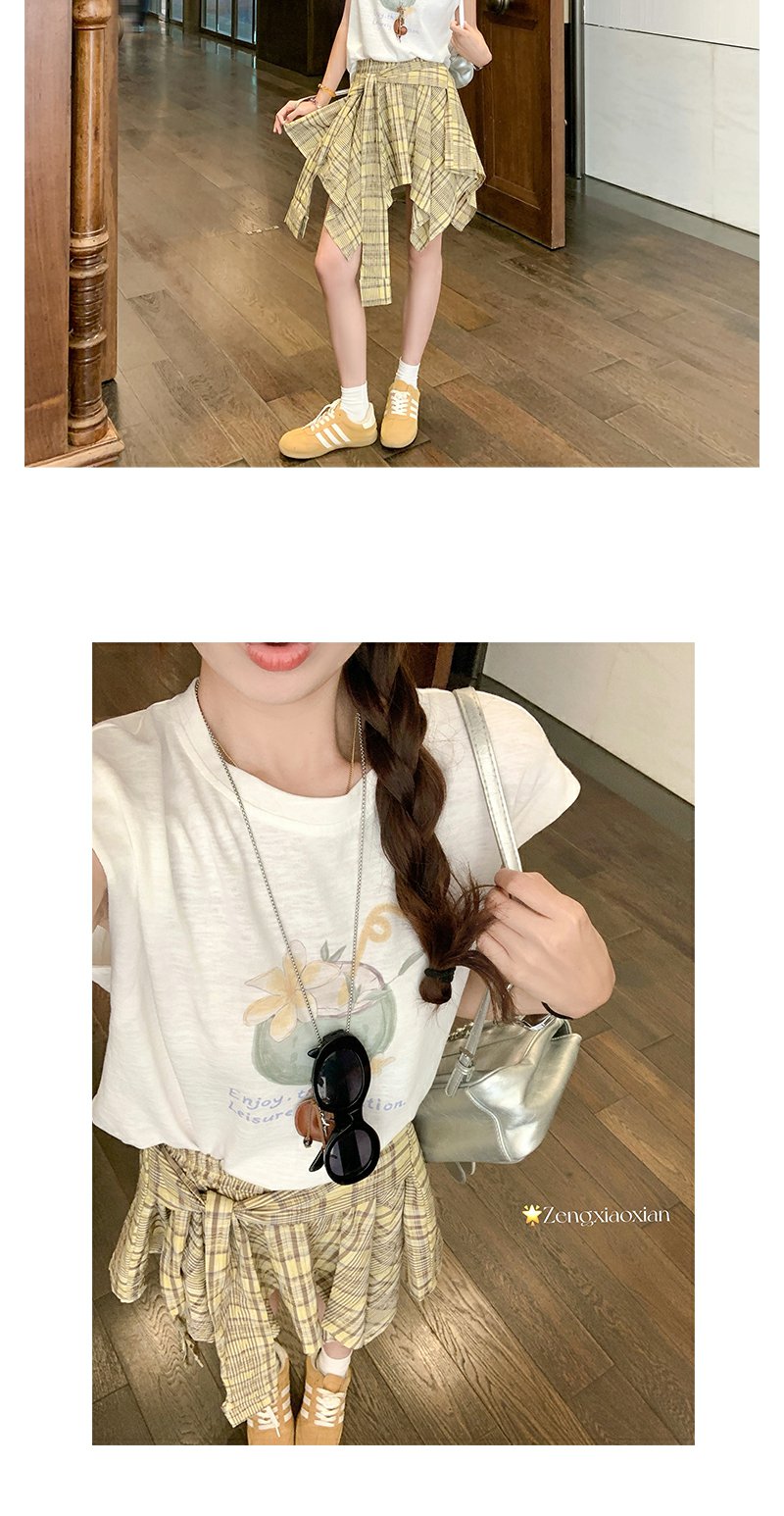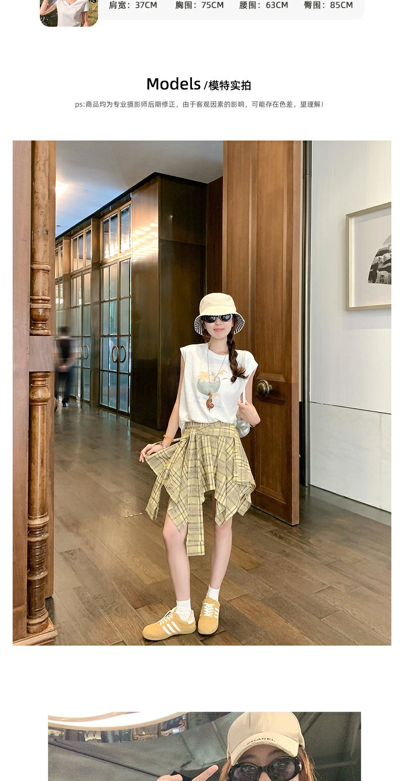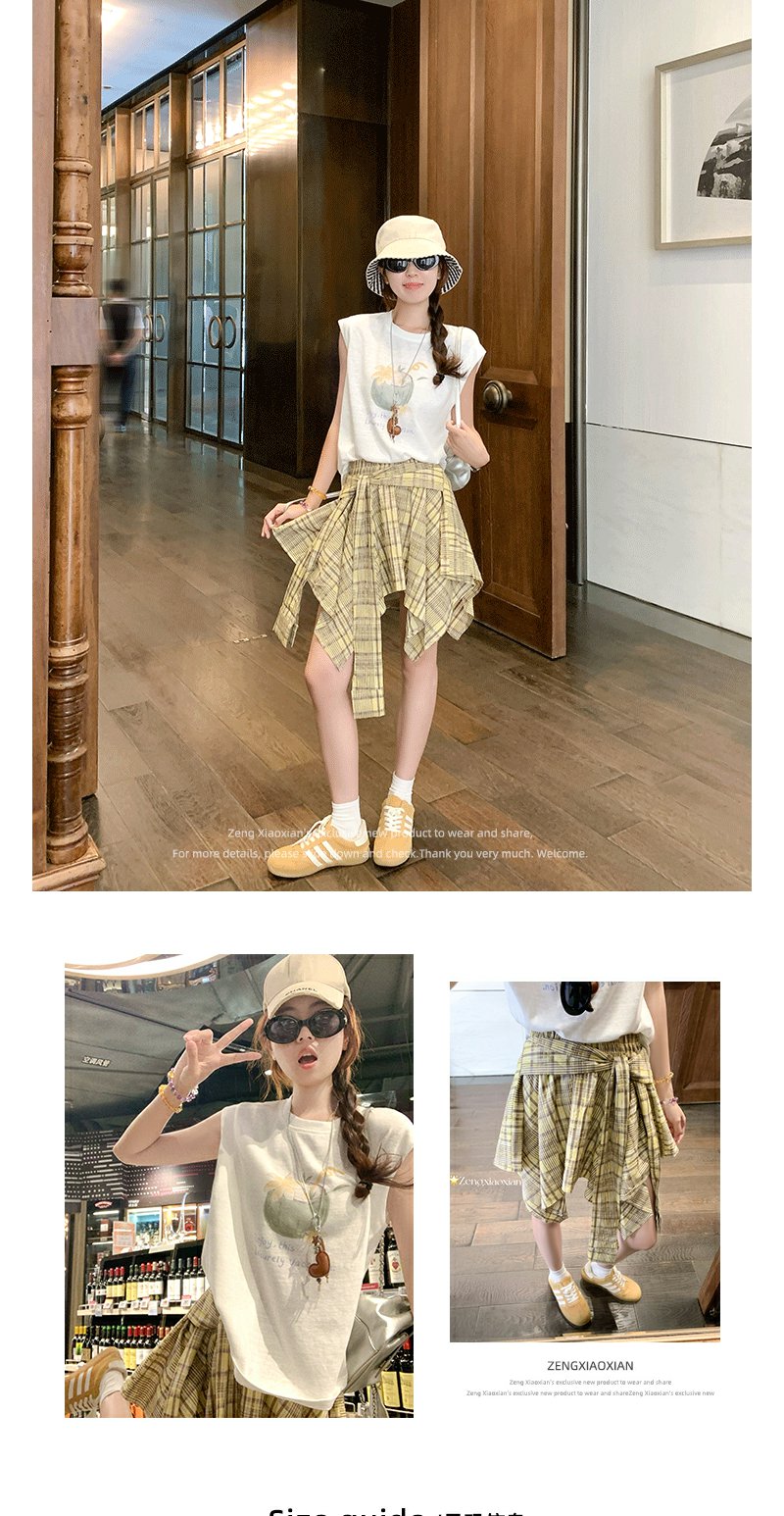 【129元任选2件】现货!韩系格纹不对称绑带半身裙
