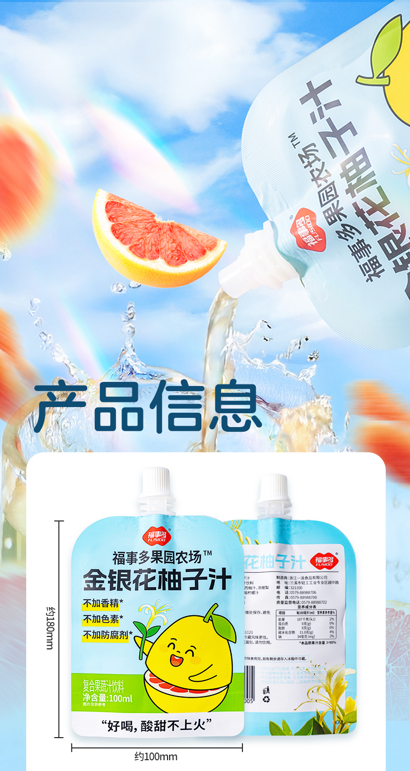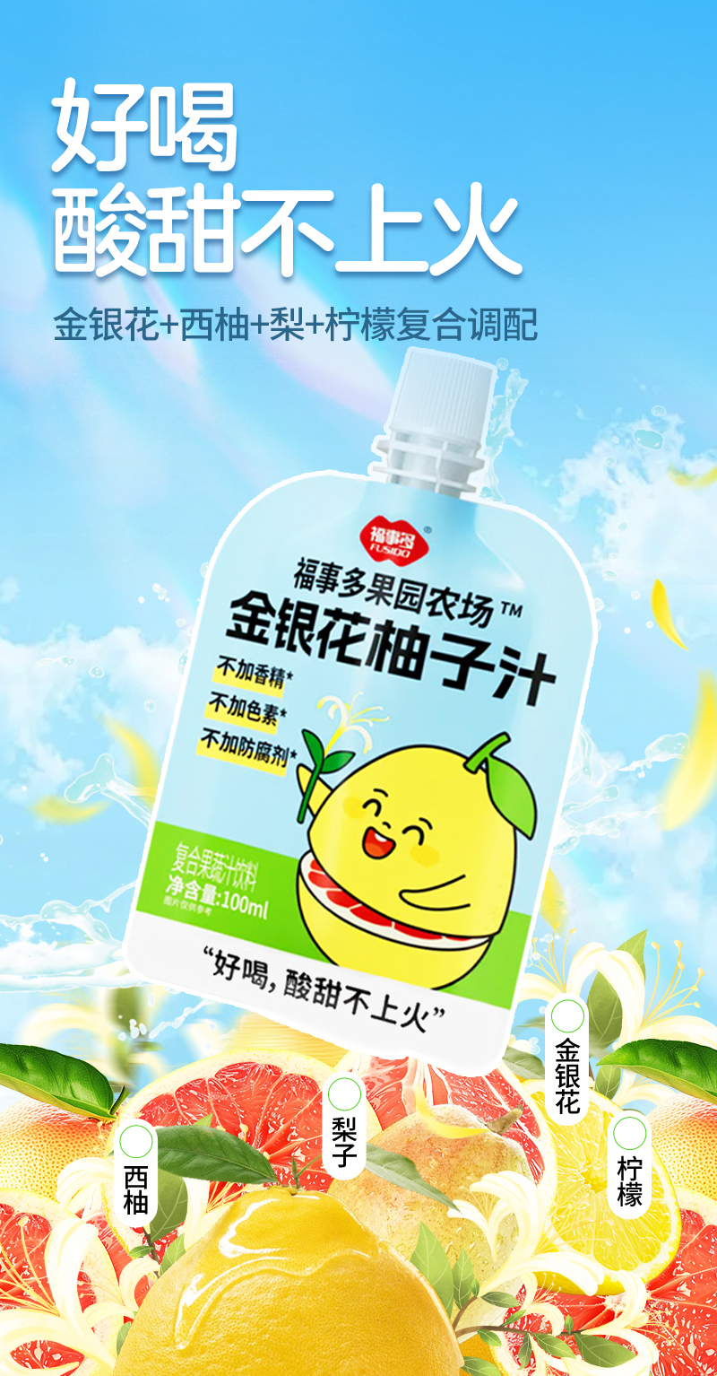 【自营】福事多100ml*12金银花柚子汁