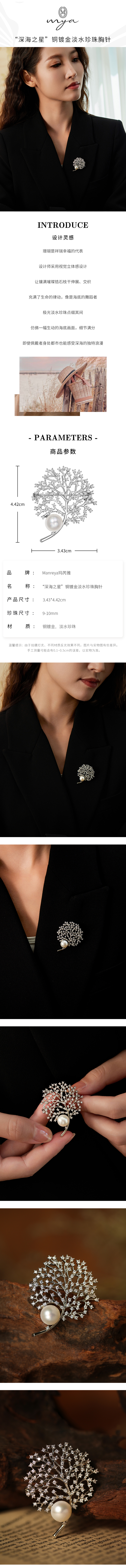Manreya玛芮雅“深海之星”铜镀金淡水珍珠胸针轻奢大气高级感法