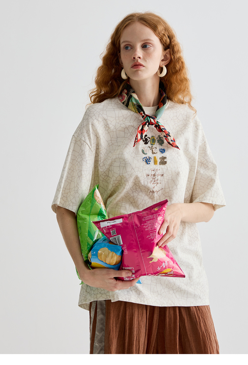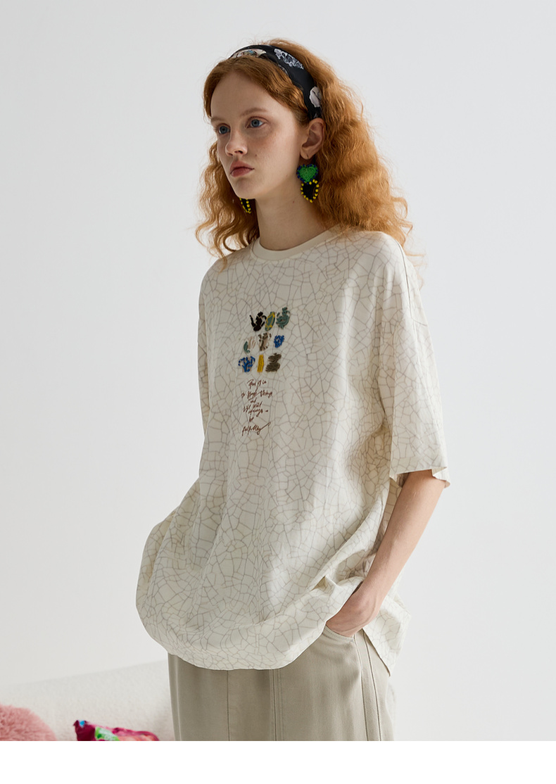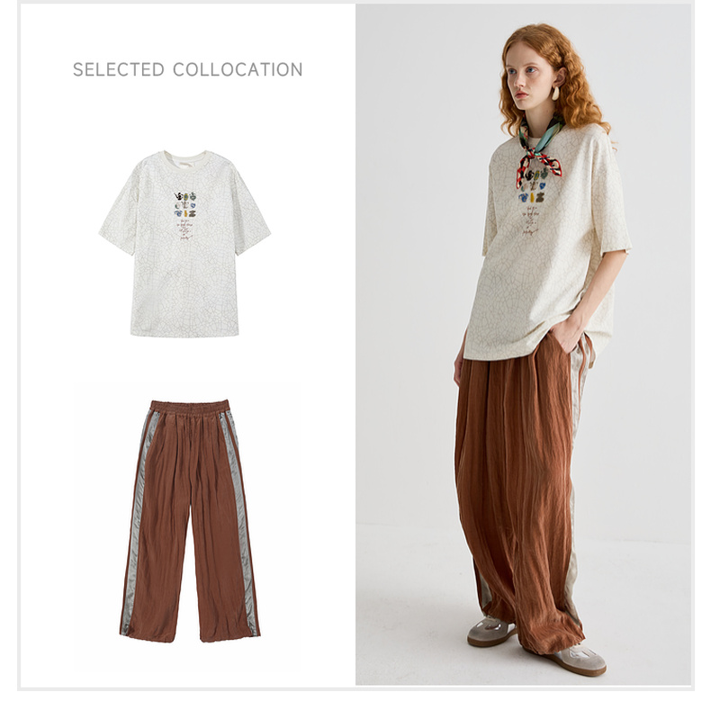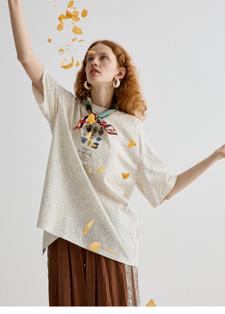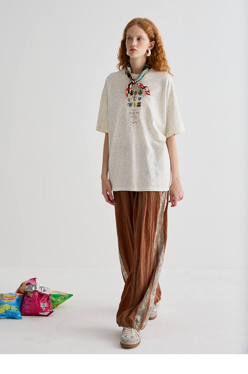 谜底T恤短袖女2025夏季新品休闲日常肌理感宽松H型上衣252MT0572