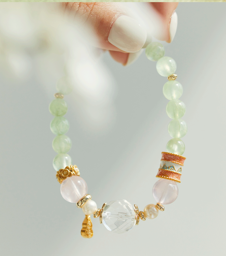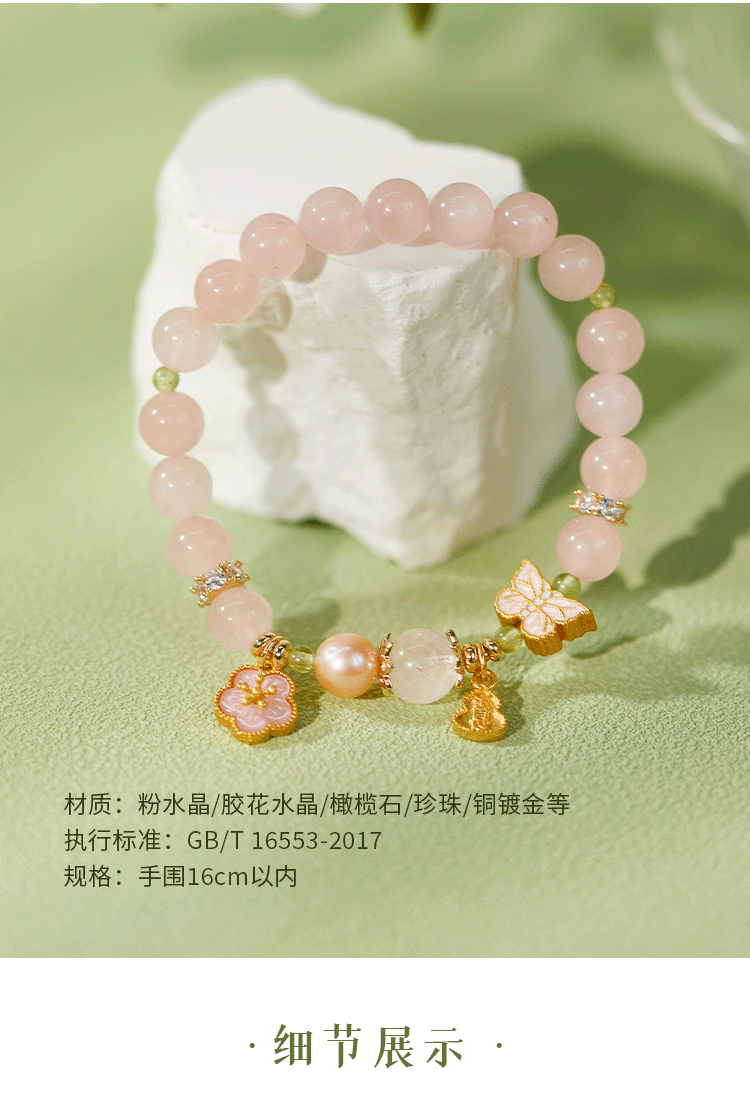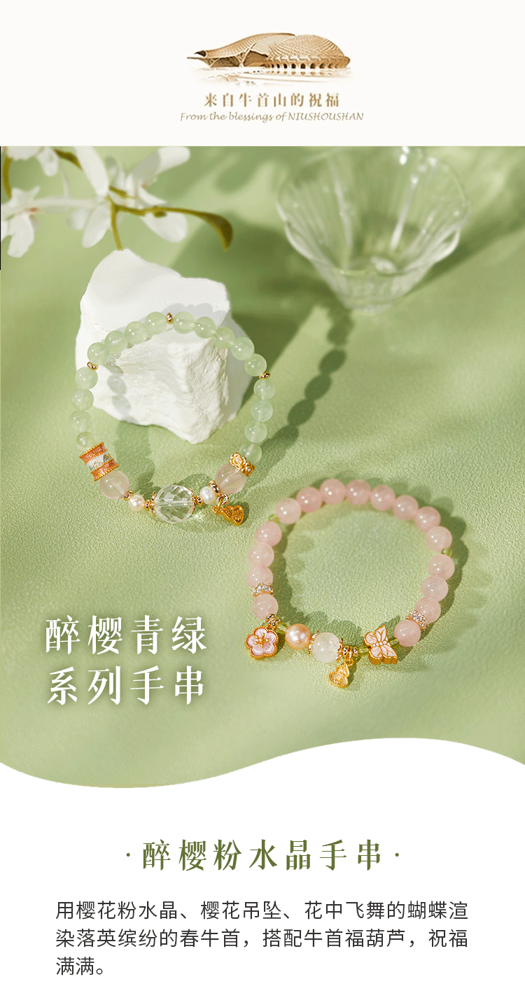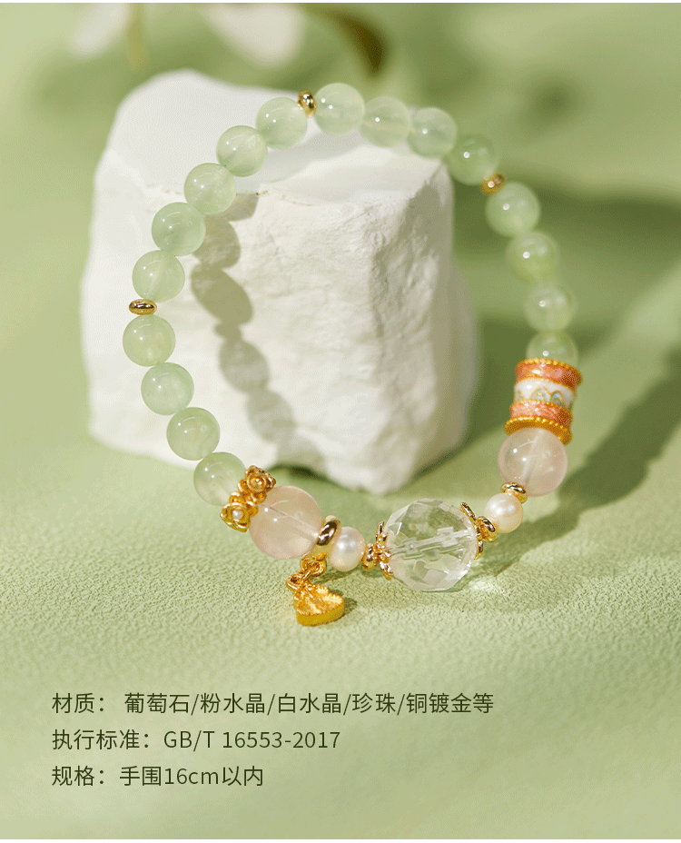 醉樱青绿系列天然水晶手链女款轻奢小众饰品本命年礼物送闺蜜