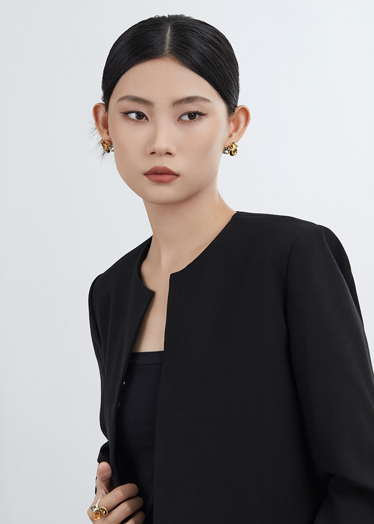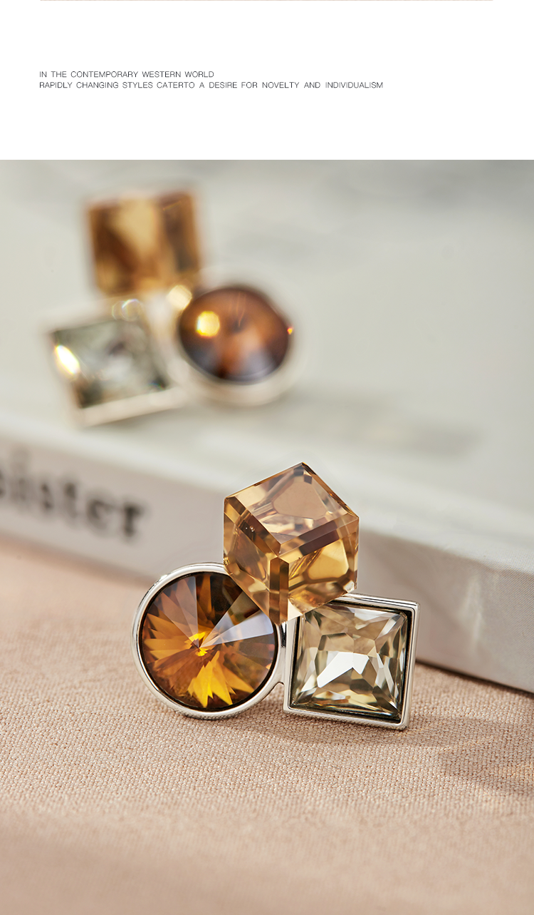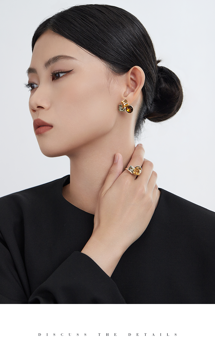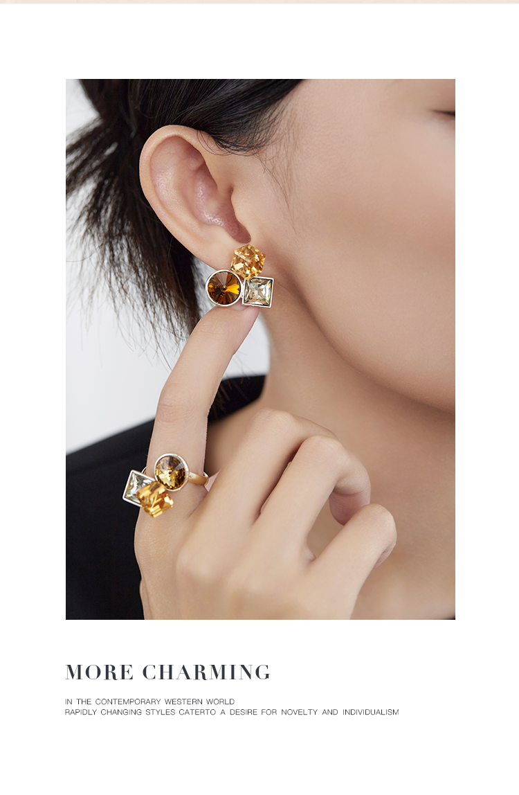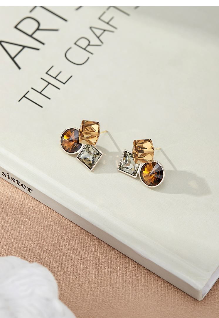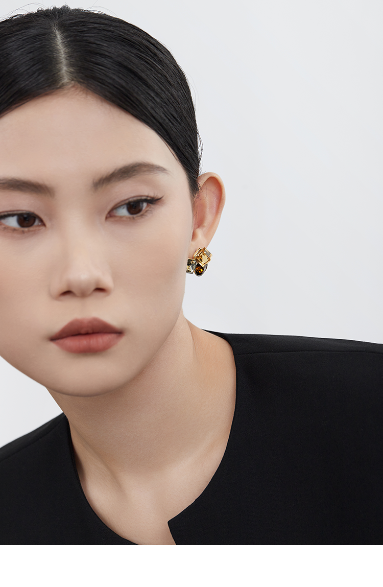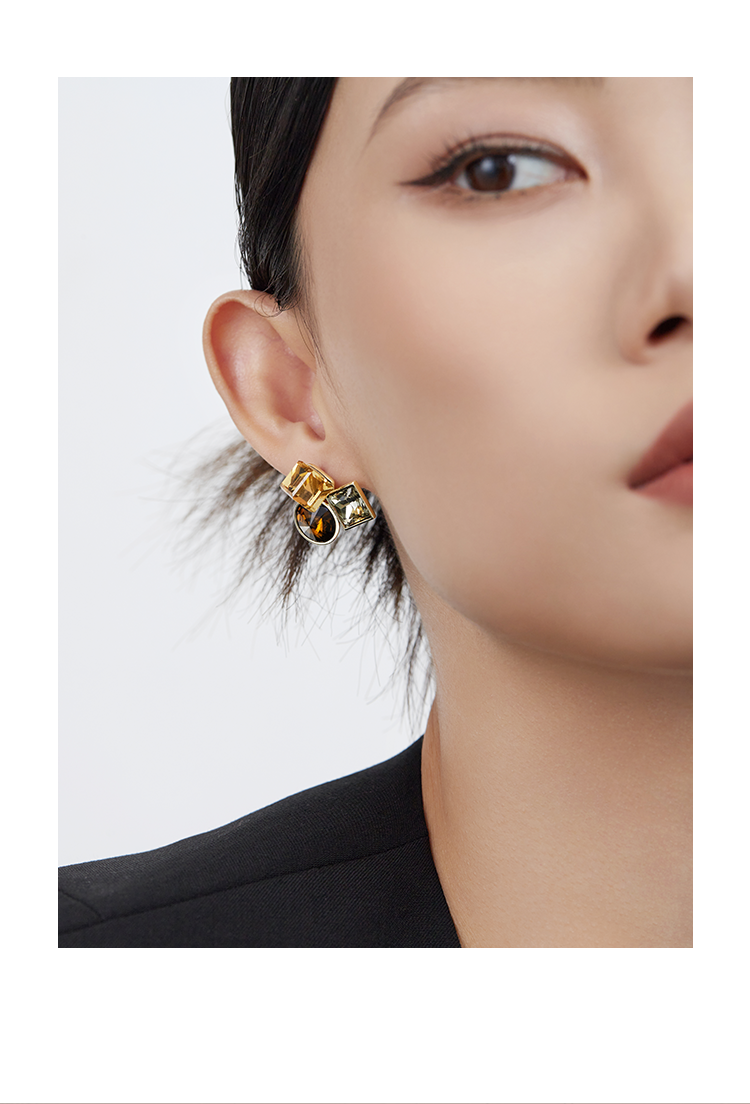 Oflye潮流饰品 复古高级感小众锆石耳环女时尚个性气质耳钉欧美轻奢耳饰潮