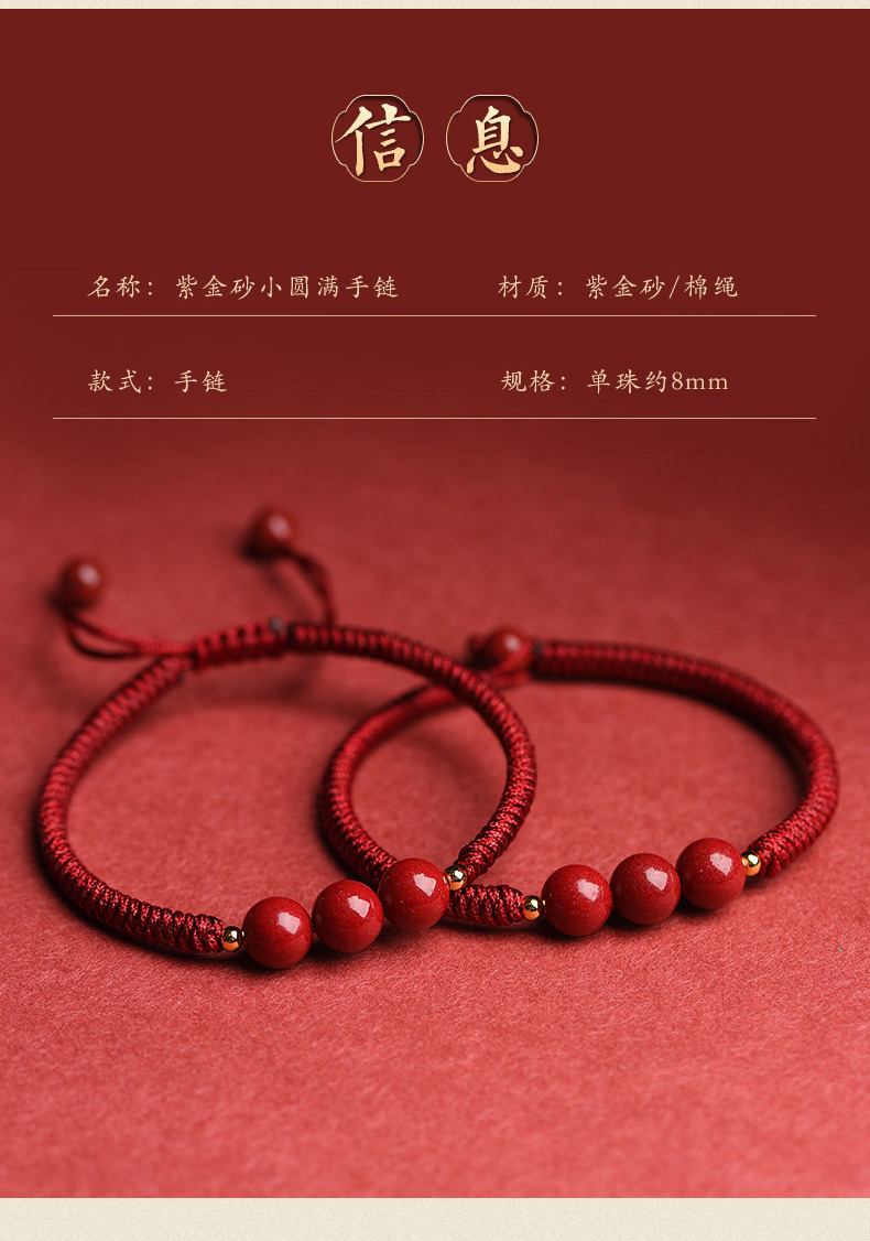 【古法工艺❗️朱砂小圆满手链】古法工艺,可调节紫金砂女款单颗珠子,儿童大人亲子情侣款三生三世蛇结情人节礼物手工饰品新年礼盒年货礼盒
