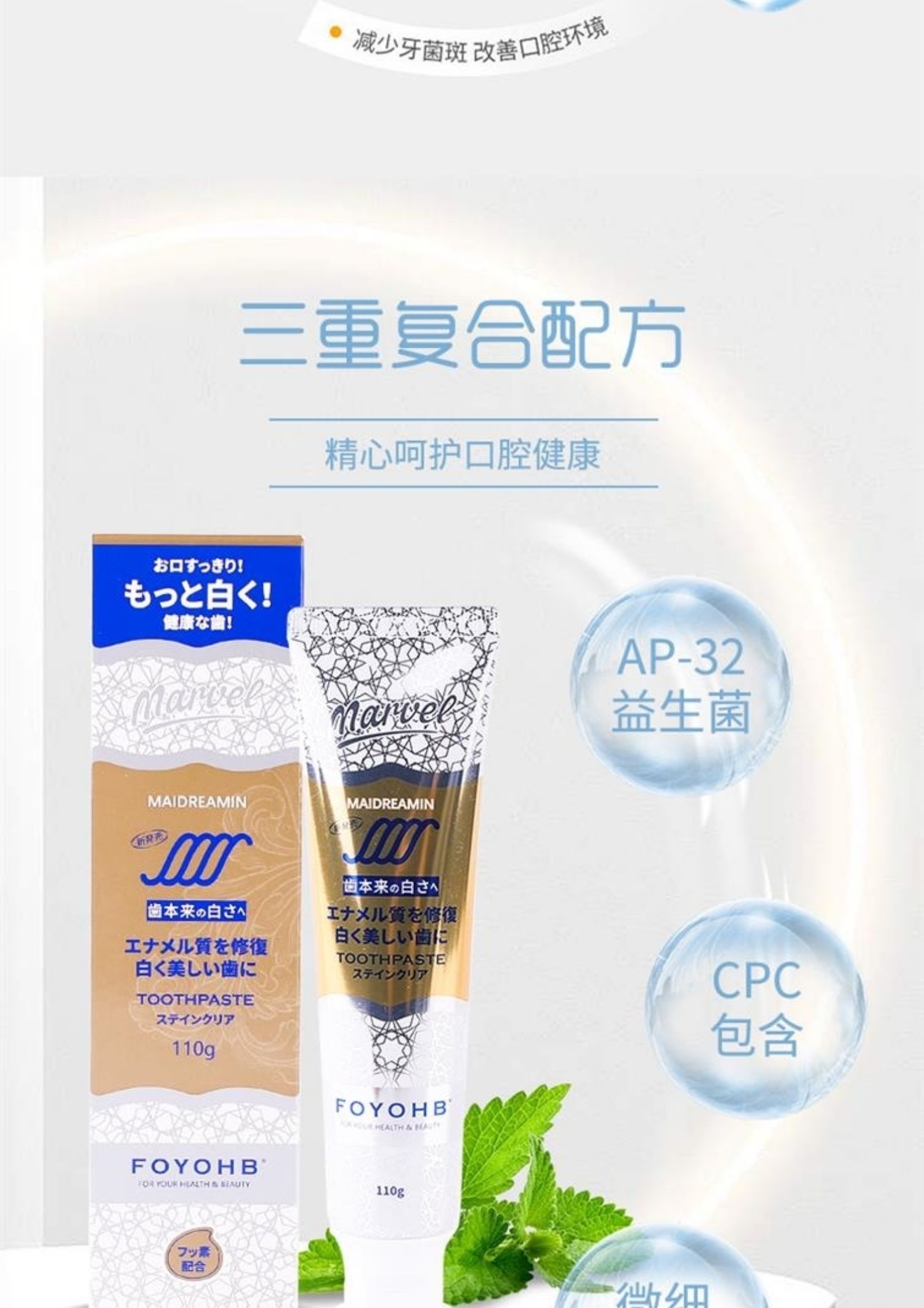 到手3支 | FOYOHB 钻石美白护理牙膏