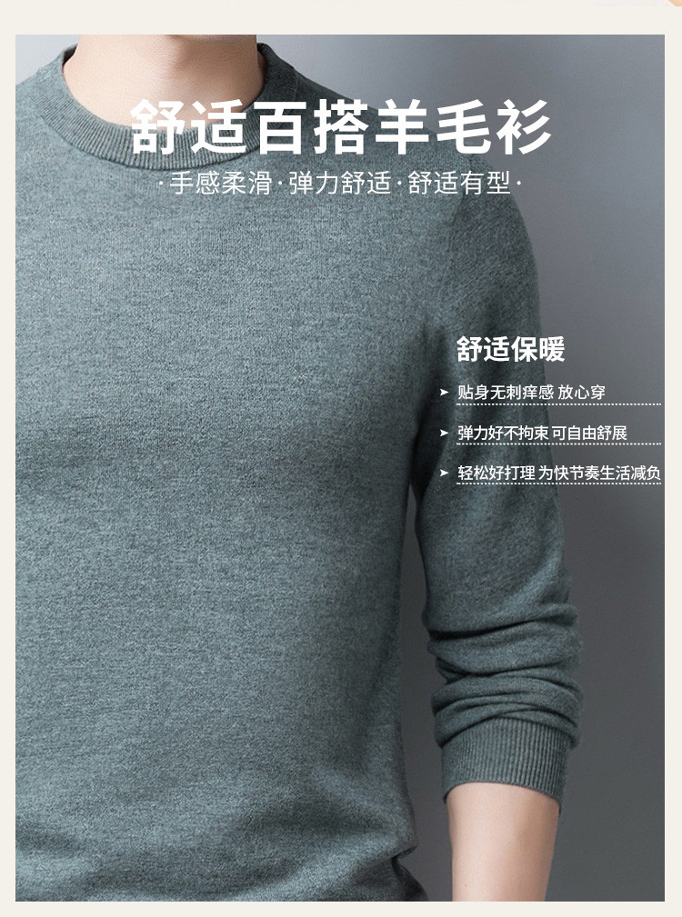 【100绵羊毛】罗蒙秋冬男士毛衣经典纯色羊毛衫男加厚男士羊毛衫保暖毛衣男