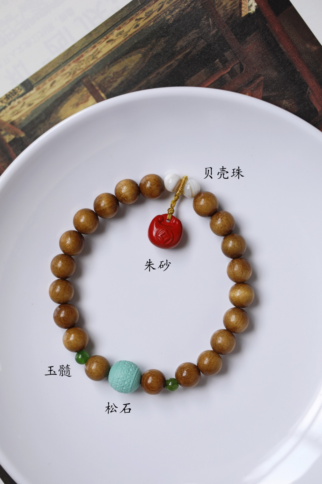 配件:松石、朱砂、玉髓、贝壳珠