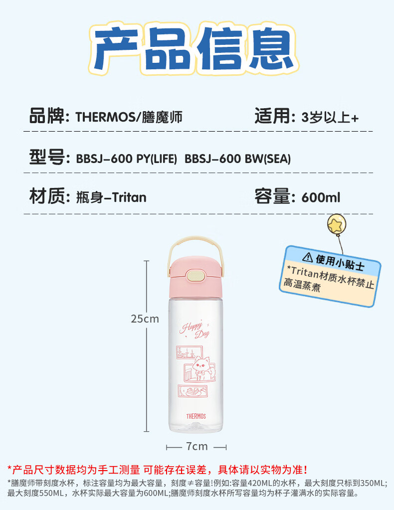【特惠6折】膳魔师儿童水杯奇妙世界运动水壶宝宝水杯幼儿园喝水杯学生上学直饮杯子 直饮水杯【不支持补差,非质量问题不退不换】S