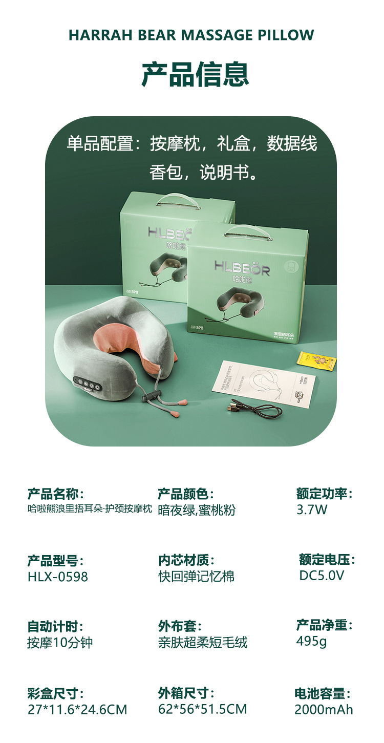 巴拉熊按摩枕多功能家用颈椎按摩器充电车载枕头便携式C型枕新款新品