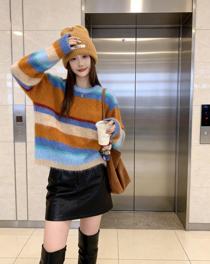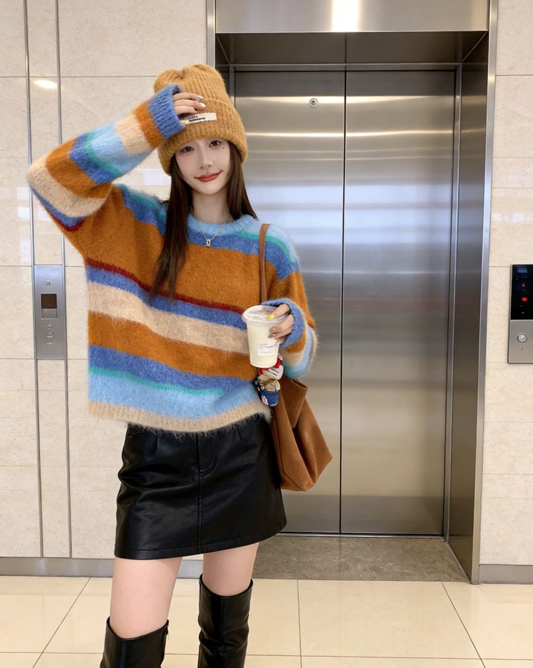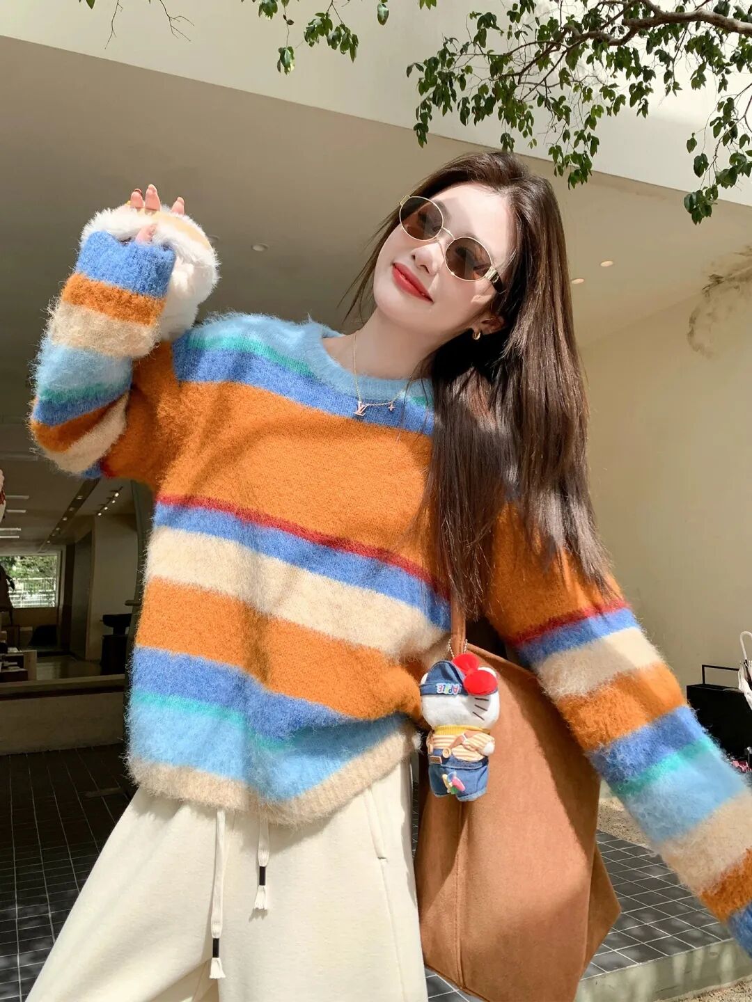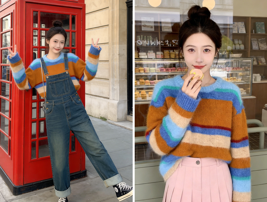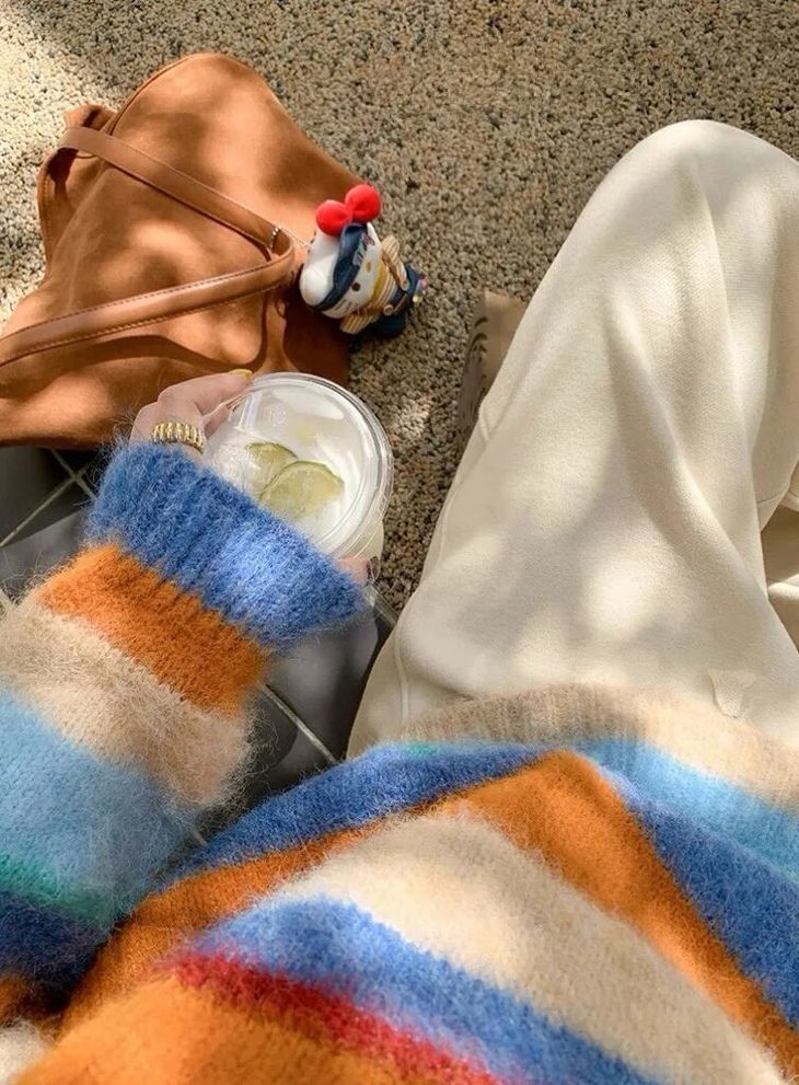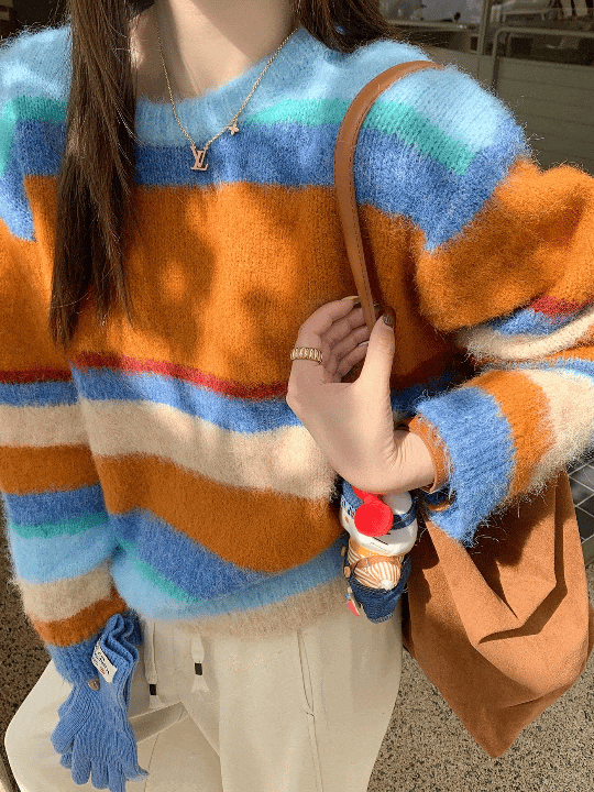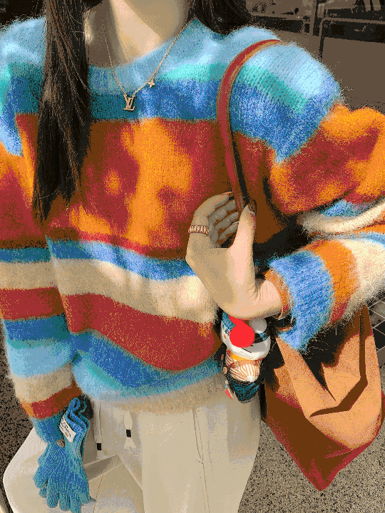就像今天这件橘子海盐彩虹拉毛羊毛衫