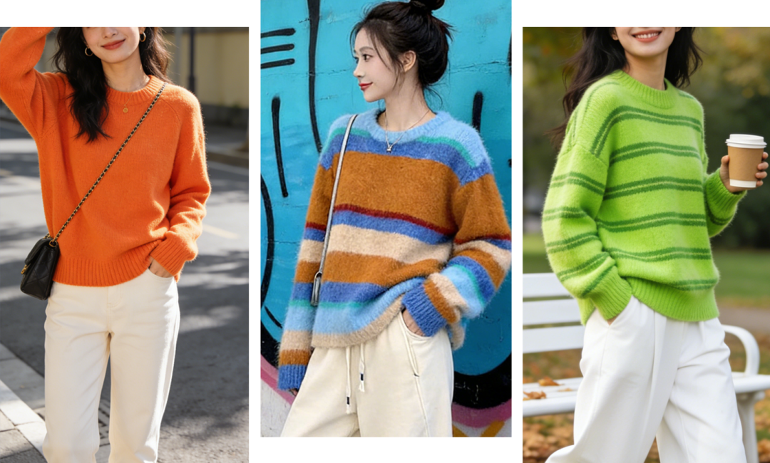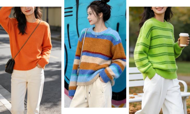 不是浮夸的艳色,温柔撞色自带多巴胺滤镜,黄皮、黑皮穿都显白提气色,一眼跳出秋冬沉闷感