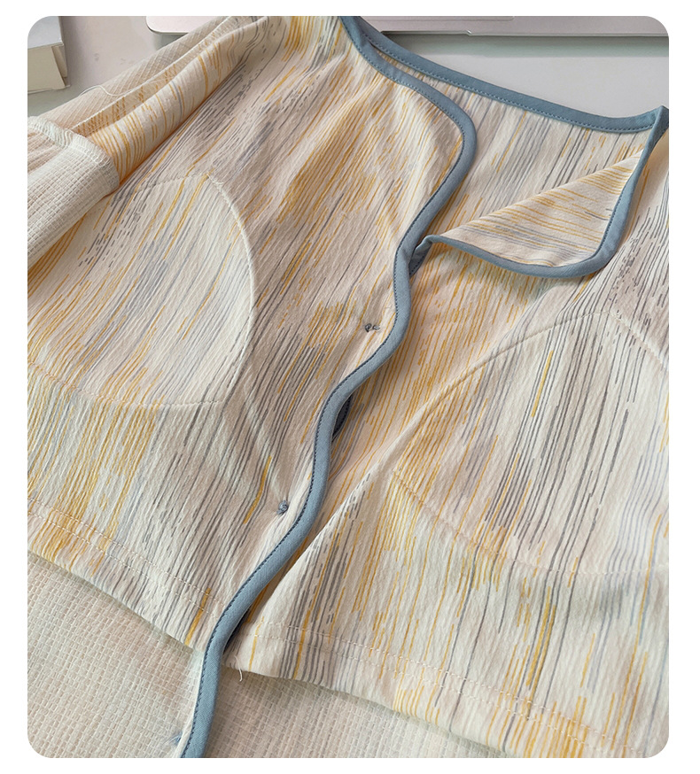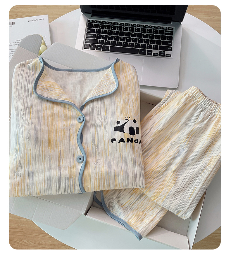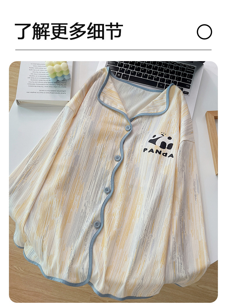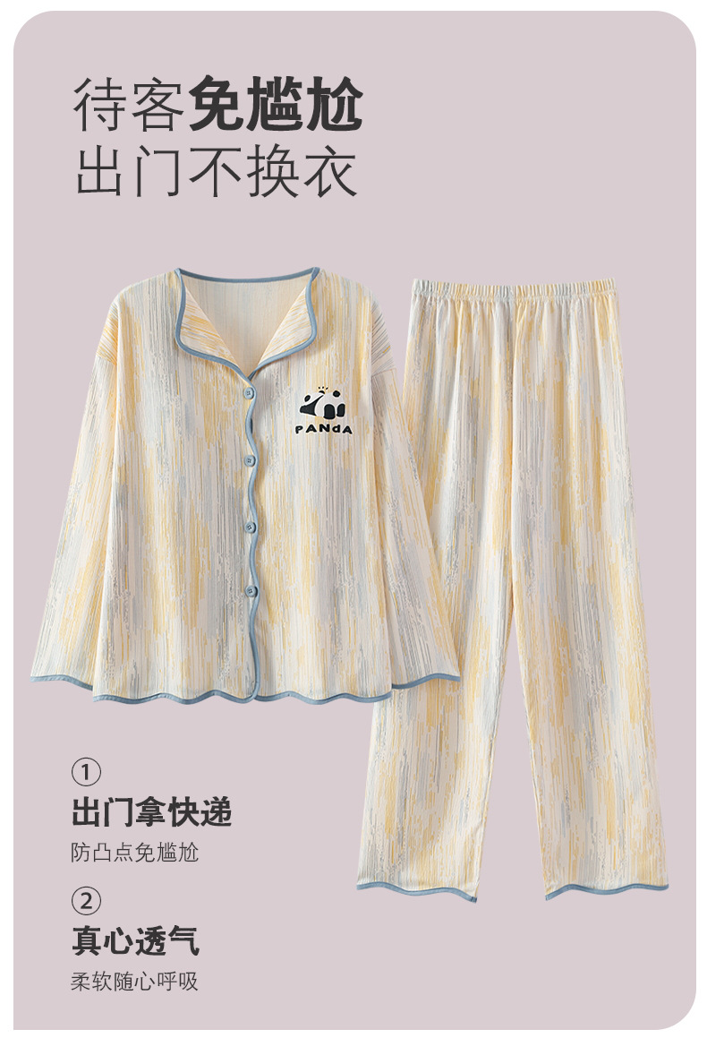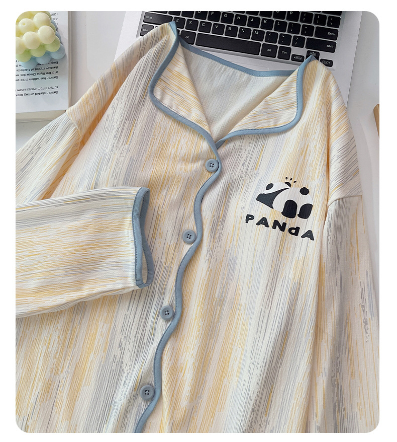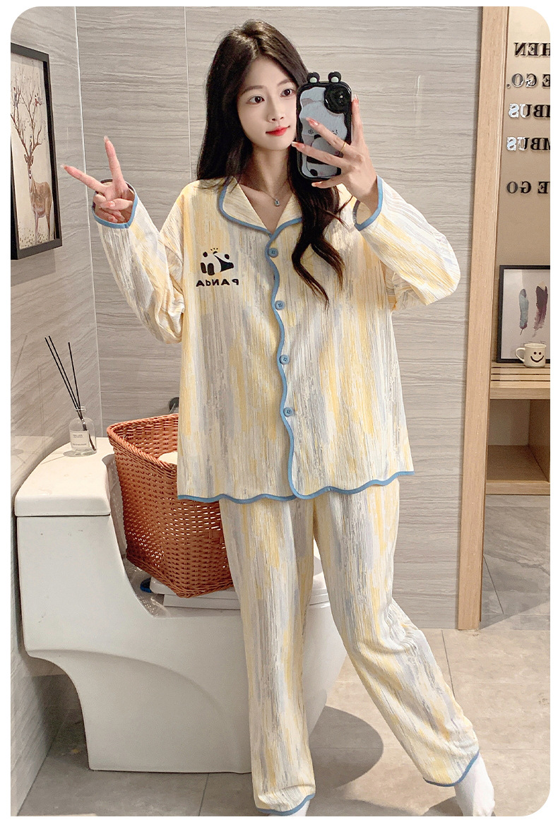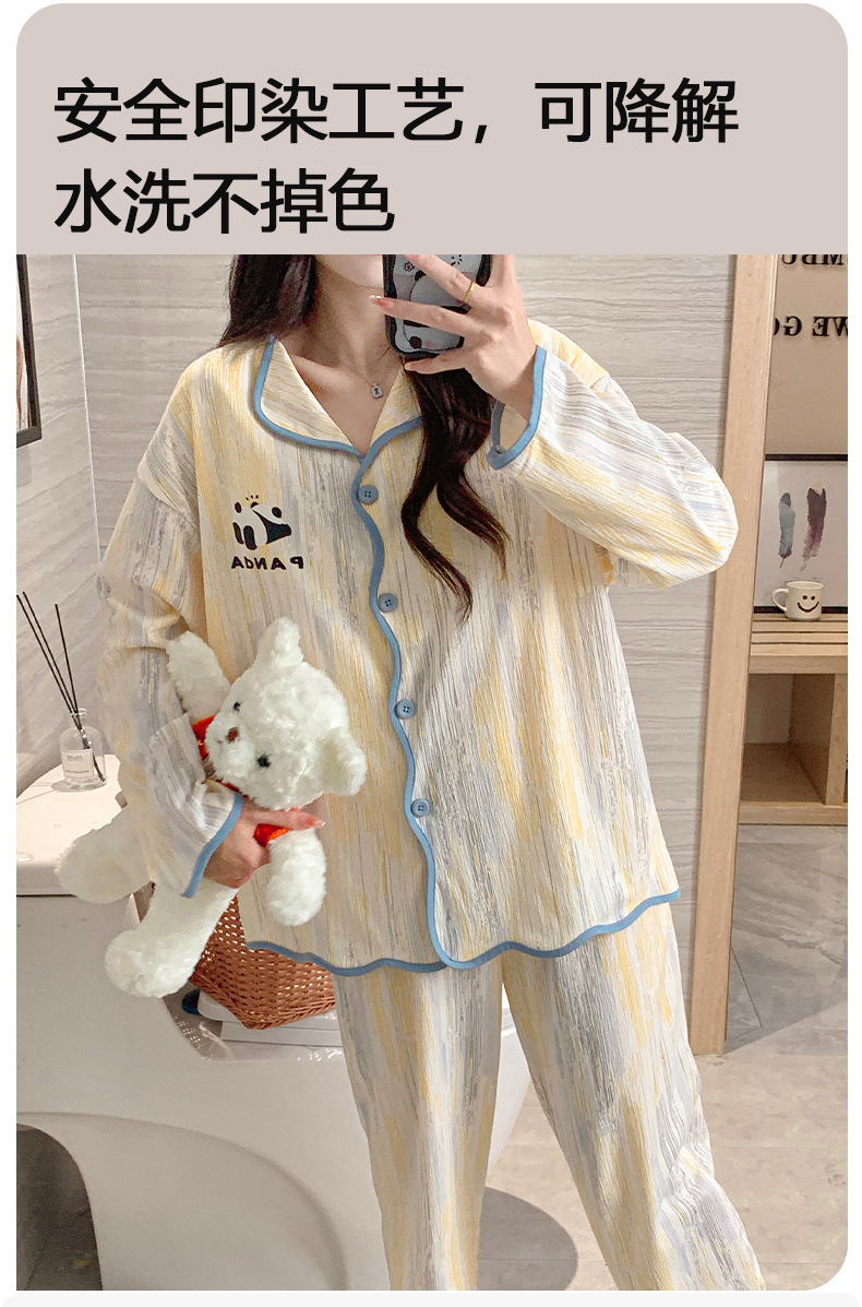 新款秋季家居服翻领长袖睡衣女秋季卡通可爱棉质带胸垫家居服可外穿春冬套装