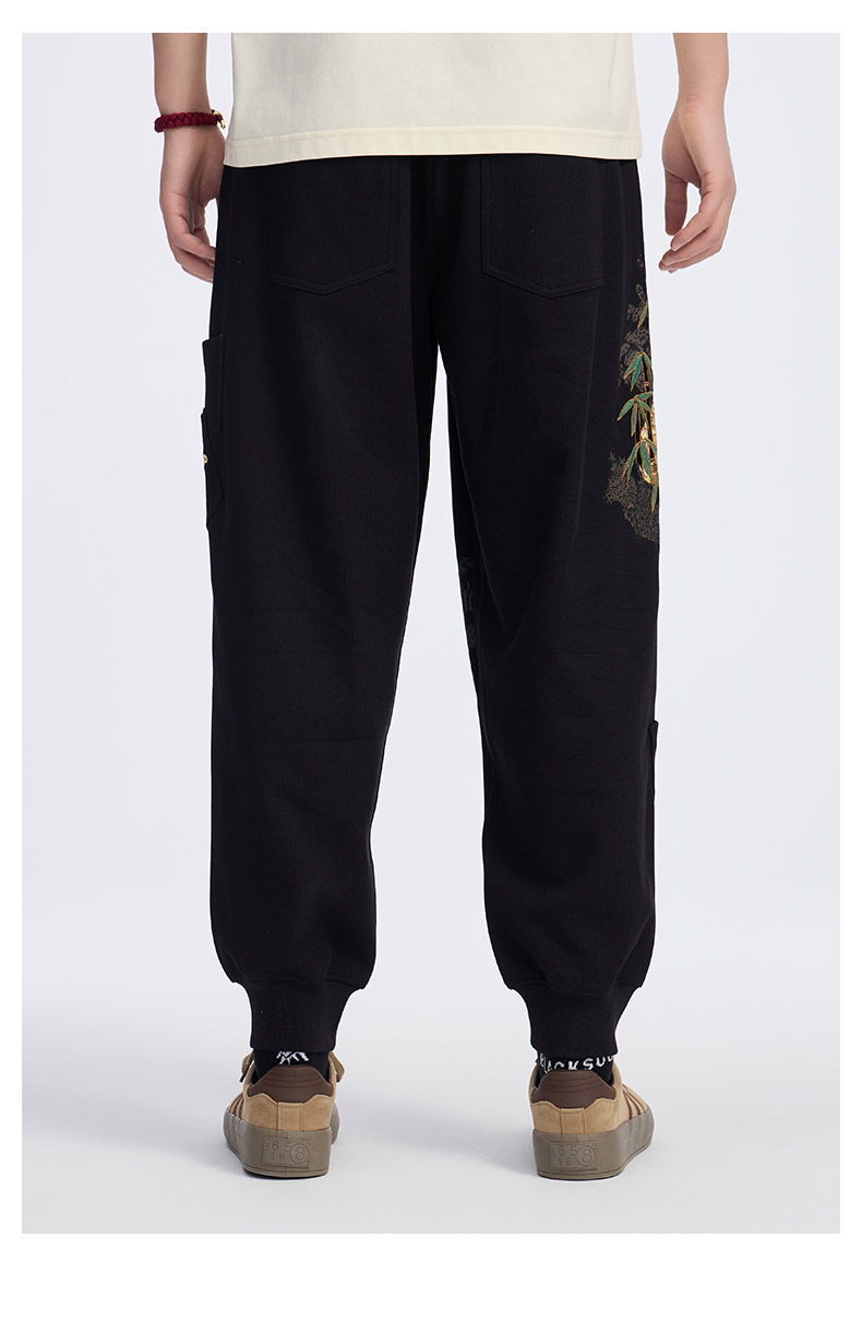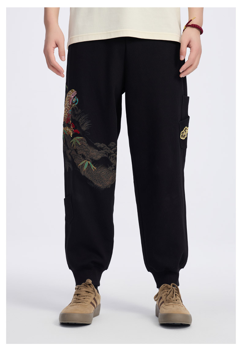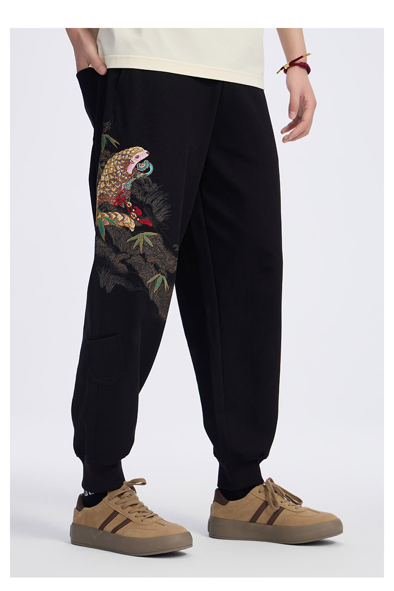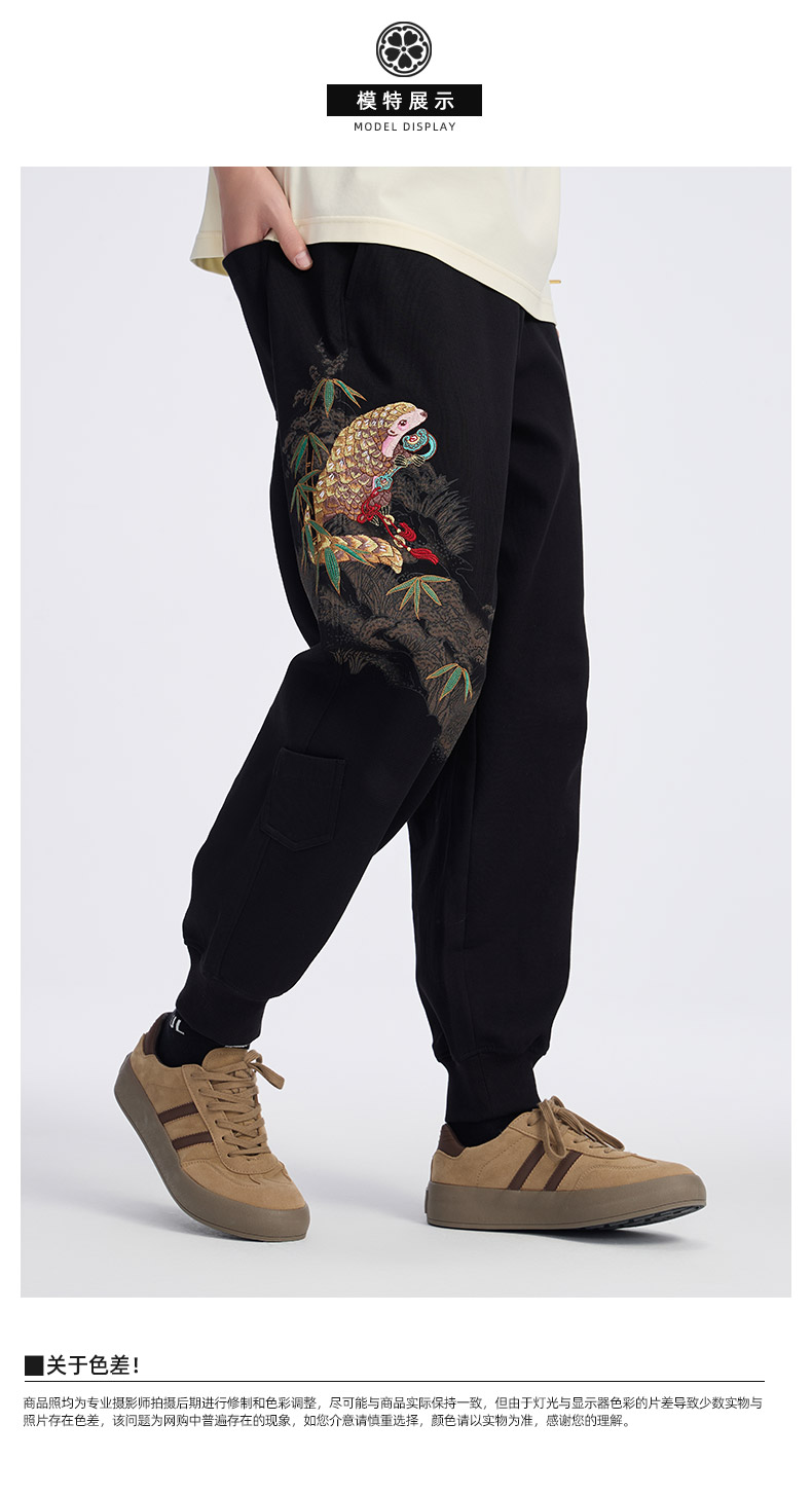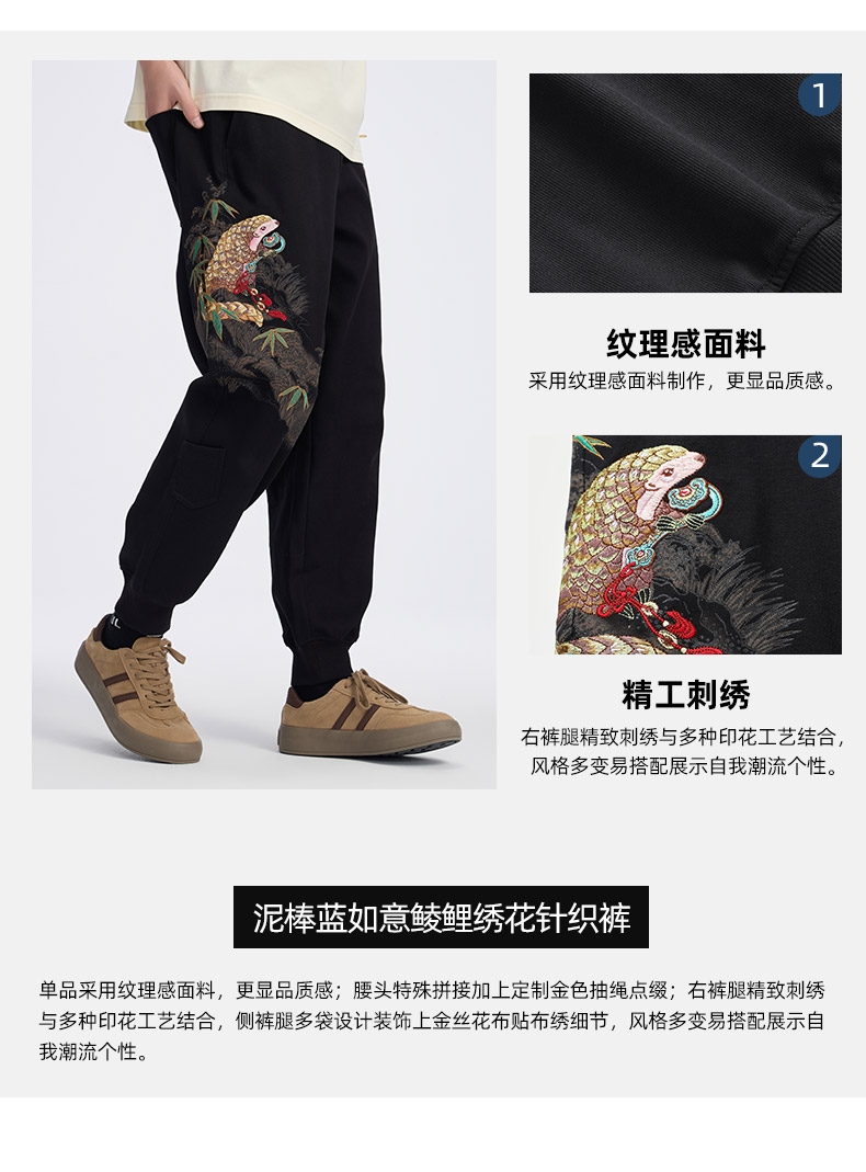 ONIARAI/鬼洗25春夏泥棒蓝如意鲮鲤绣花宽松男士针织裤 N540169