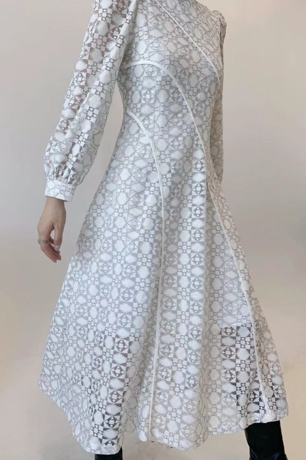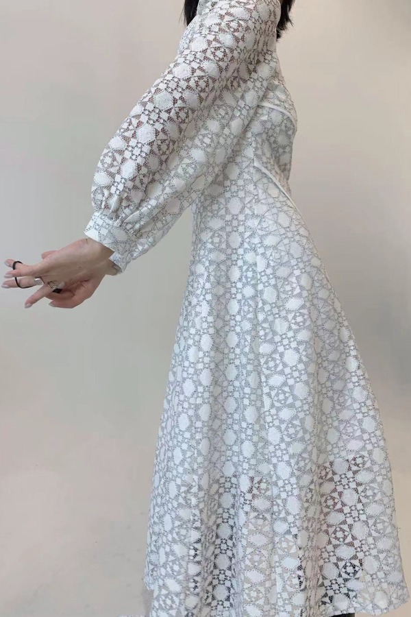 ANSUABEL 白色刺绣提花泡泡袖连衣裙 13588