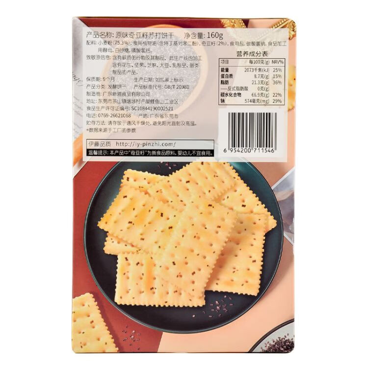 伊藤品质原味奇亚籽苏打饼干160g/盒