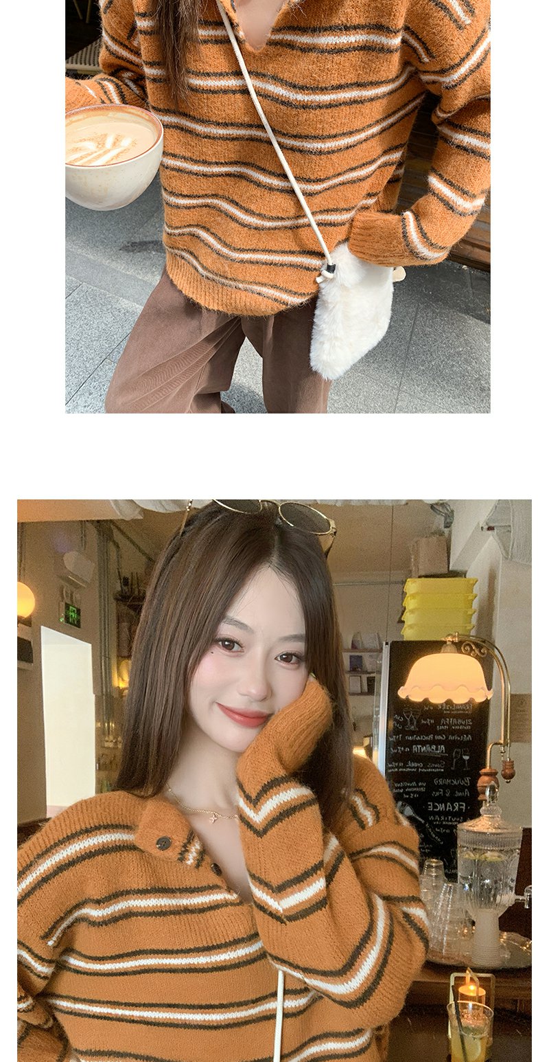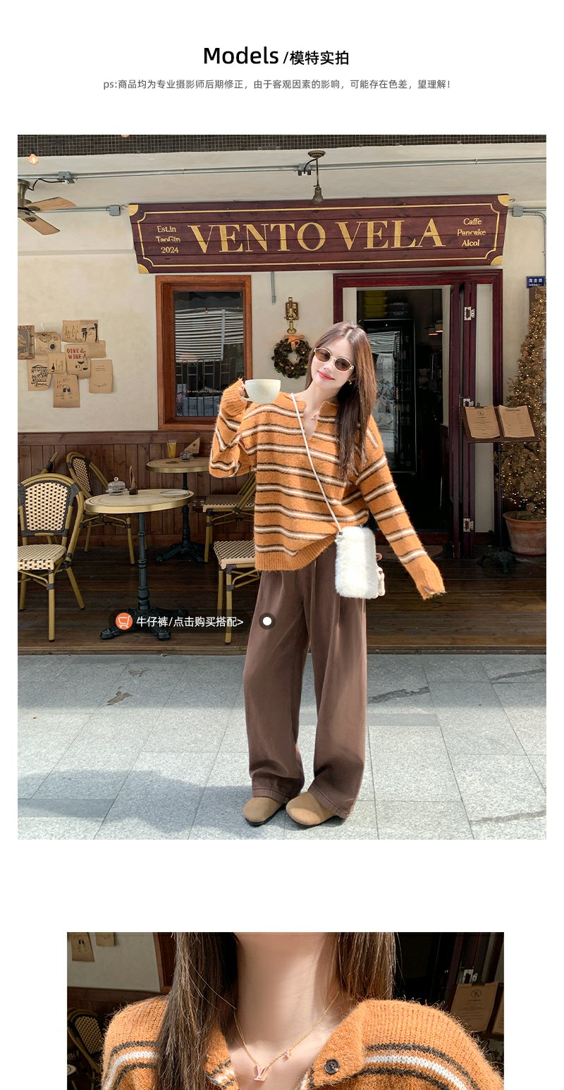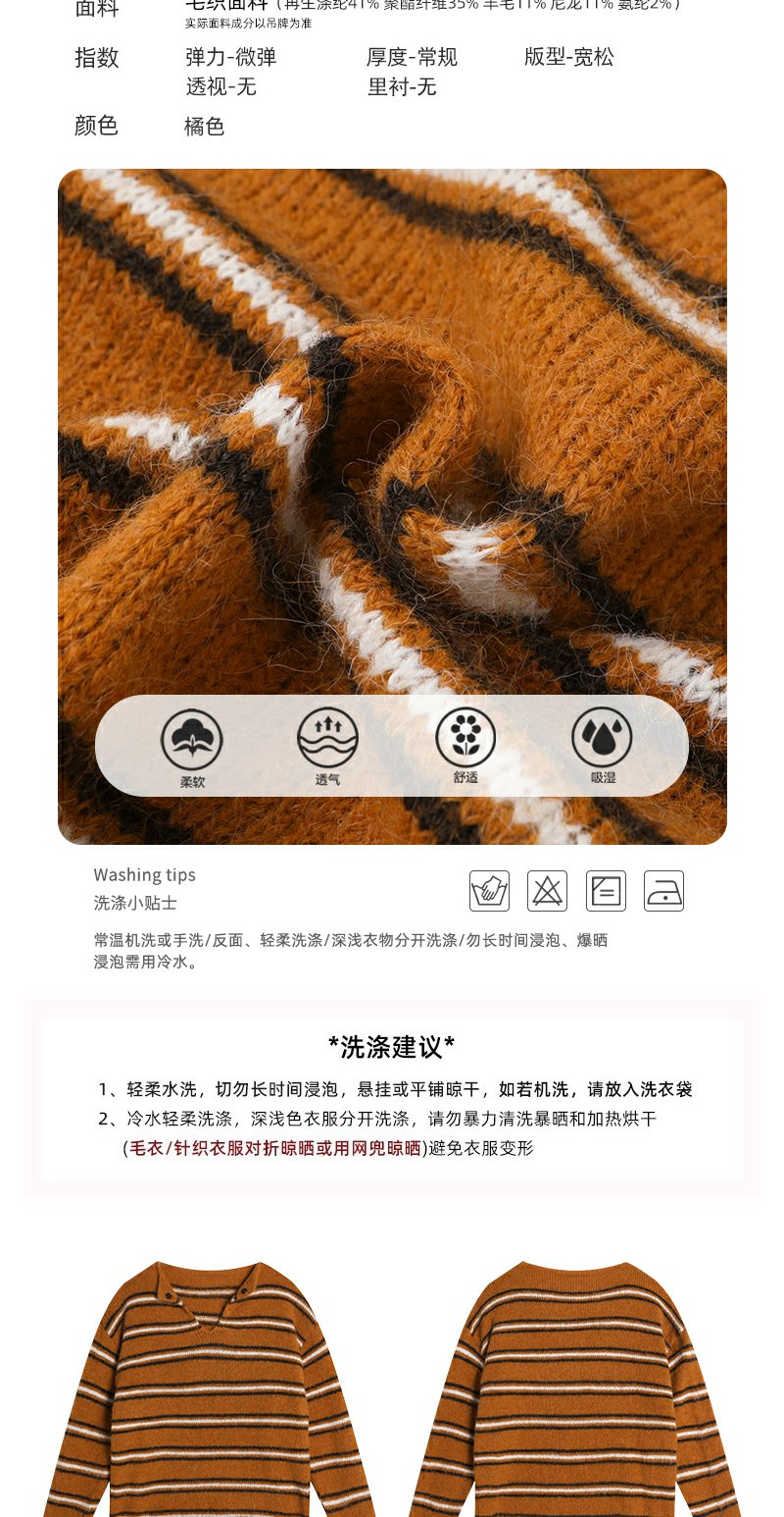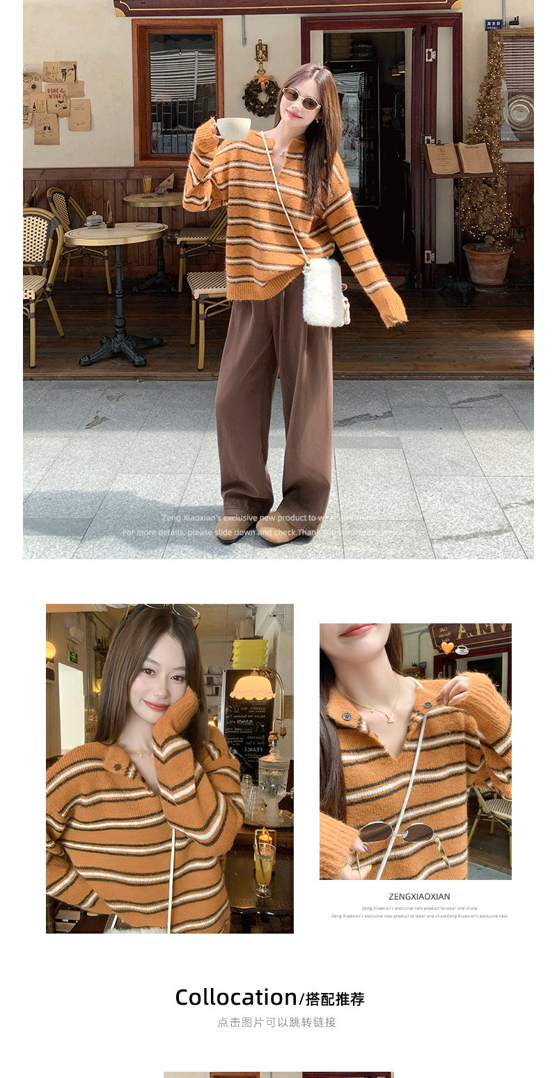 <曾小咸推荐> 现货秒杀!微信超特价!橘色条纹v领毛针织衫 日常179.99 立减100 秒杀79.99!